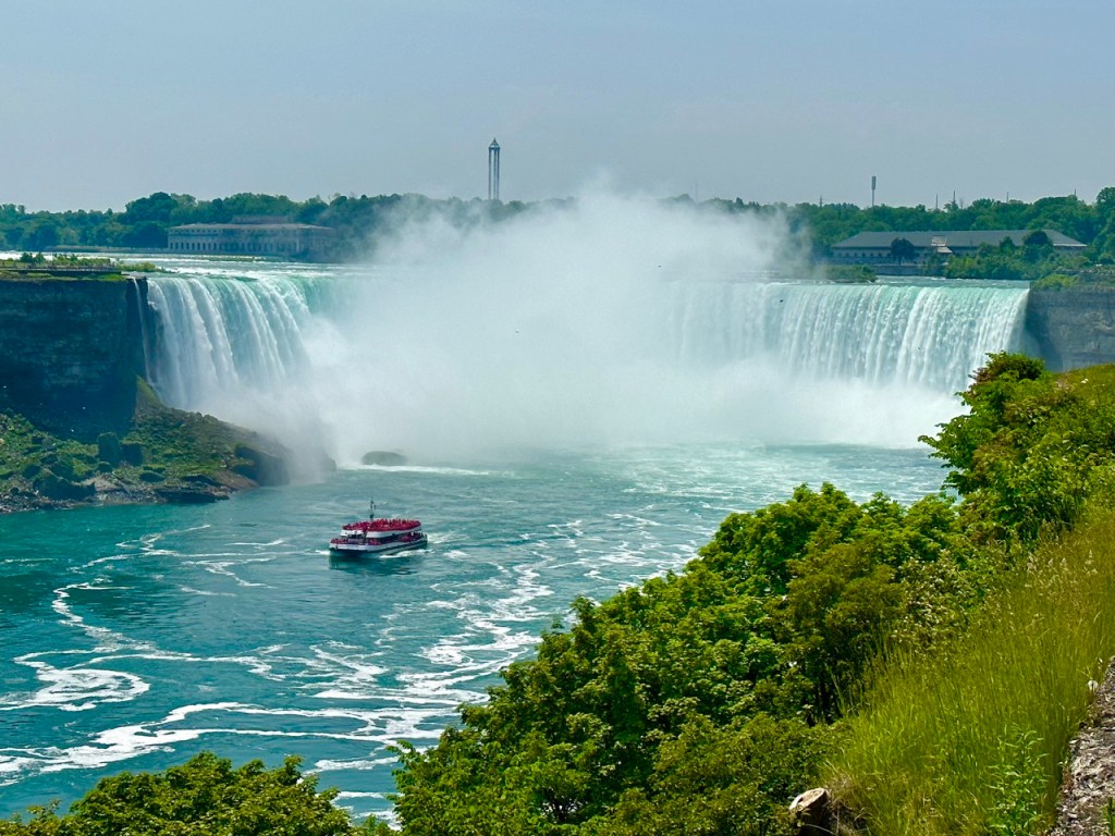 Největším zážitkem prvních dní byly Niagárské vodopády. Velké, hlučné, mokré a naprosto dech beroucí. Z Kanadské strany jsou vodopády mnohem lépe vidět, ku škodolibé potěše Kanaďanů. Zdá se, že řevnivost mezi Kanaďany a Spojenými státy je podobná asi jako mezi Pražáky a Brňáky :-). V Torontu panovaly tropy a tak jsme se při jízdě pod vodopády, i přes parádní křiklavě růžovou pláštěnku, pěkně osvěžili.