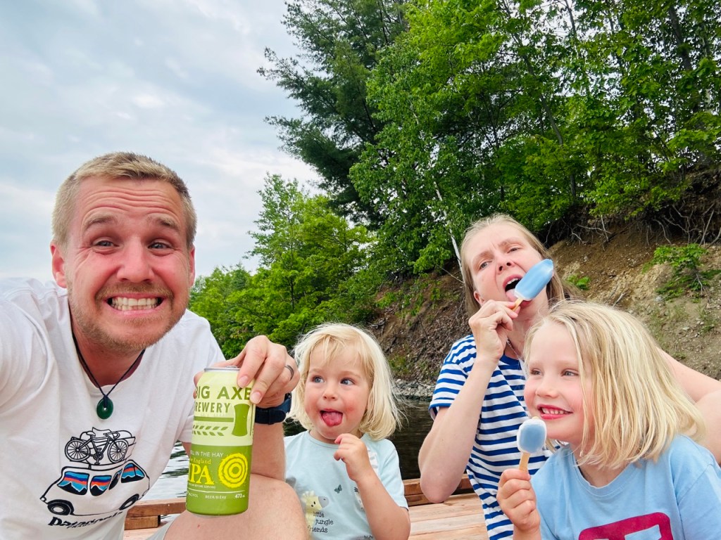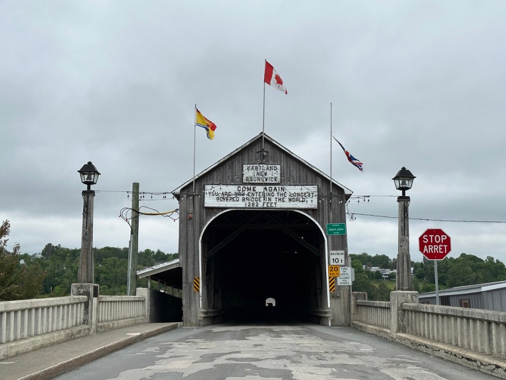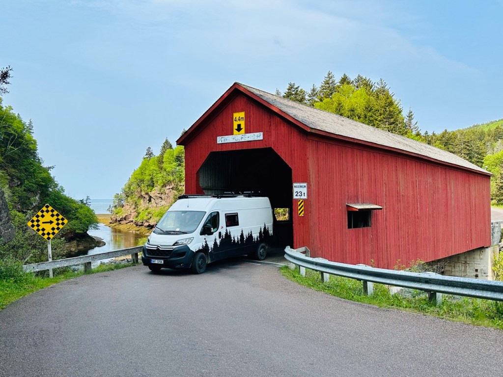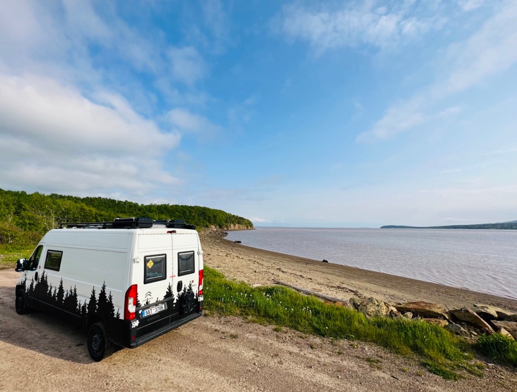 V Novém Brunšvíku jsme ještě zvládli výlet do národního parku Fundy na pobřeží této stejnojmenné zátoky a večer si za odměnu opéct náš první maršmeloun. Zažít jeden s novodobých divů světa v podobě magnetického kopce, který dokáže působením magnetického pole Země vytáhnout auto při vypnutém motoru do kopce, což se následně ukázalo jako velký podvod, respektive prezentováno jako „unikátní optický klam“, když jsme se začali podivovat nad tím, že se naše auto po zabrzdění v půlce toho kopce již znovu nerozjelo. A vstupné nám nikdo vrátit nechtěl. Navštívili jsme městečko Nackawic, které se pyšní absurdním monumentem v podobě největší sekyrky na světě, avšak zároveň hostí chutný řemeslný pivovar, kde nás nechali přespat hezky u řeky zadarmo a navštívili jiné městečko (Hartland), kde pro změnu mají nejdelší zastřešený most a zároveň továrnu na slané brambůrky, kam si můžete zaskočit na ochutnávku (což naše dětičky kvitovali s povděkem a my si tak elegantně odbyli přípravu oběda) a nakonec zvládli přejet do provincie Quebec.