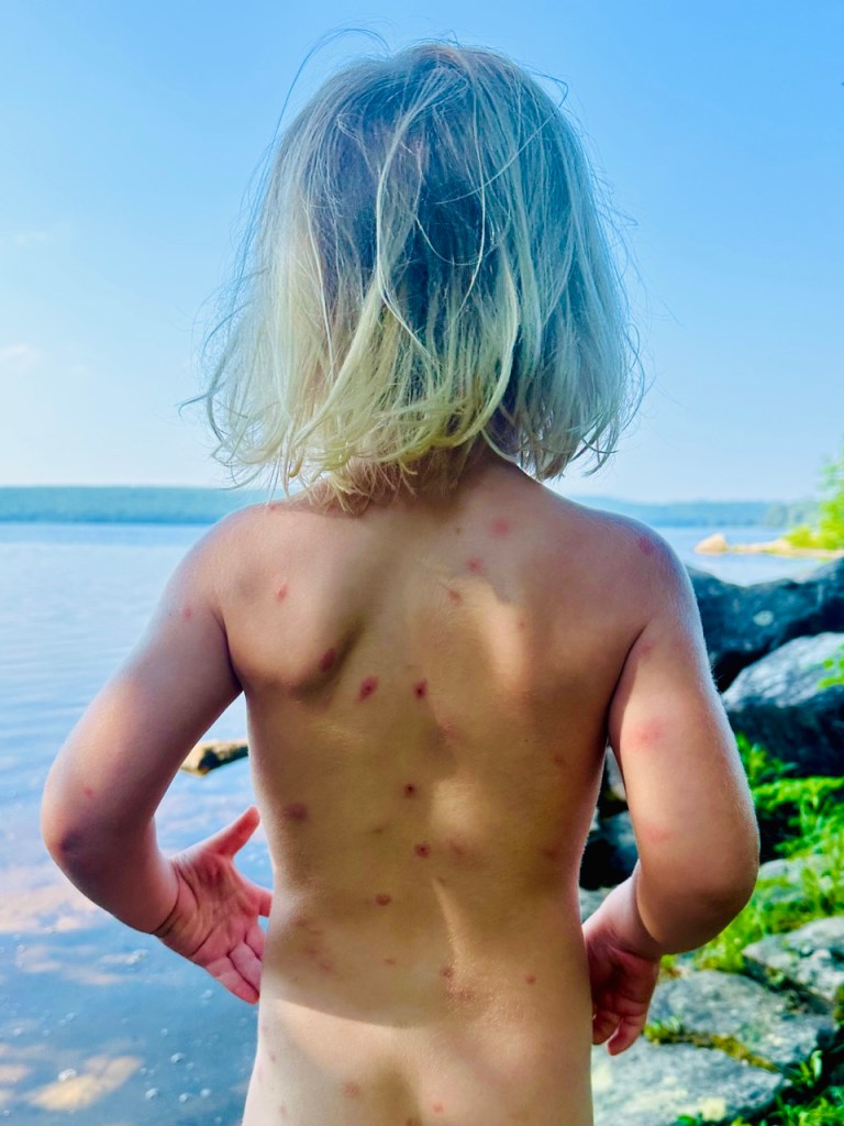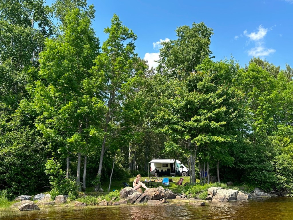 V Algonquinu jsme takto strávili tři líné dny v malém kempu přímo u jezera a bylo to poprvé od té doby co jsme vyjeli, kdy jsme na jednom místě strávili víc než jednu noc. Byla to popravdě úleva, neb jsme za sebou měli již celkem dost kilometrů a taková malá dovolená se nám všem i našim otlačeným zadkům moc zamlouvala. O trochu méně se nám zamlouvalo to, že celá oblast je nejen populárním místem pro odpočinek, ale také snad největší kanadskou líhní krvelačných komárů, kterým byly nám dostupné repelenty jen pro smích. V celém Ontáriu byl také zákaz rozdělávání ohňů (to je zde přes léto skoro všude), takže jsme je nemohli ani vykouřit, ani vyslat kouřovými signály žádost o pomoc.