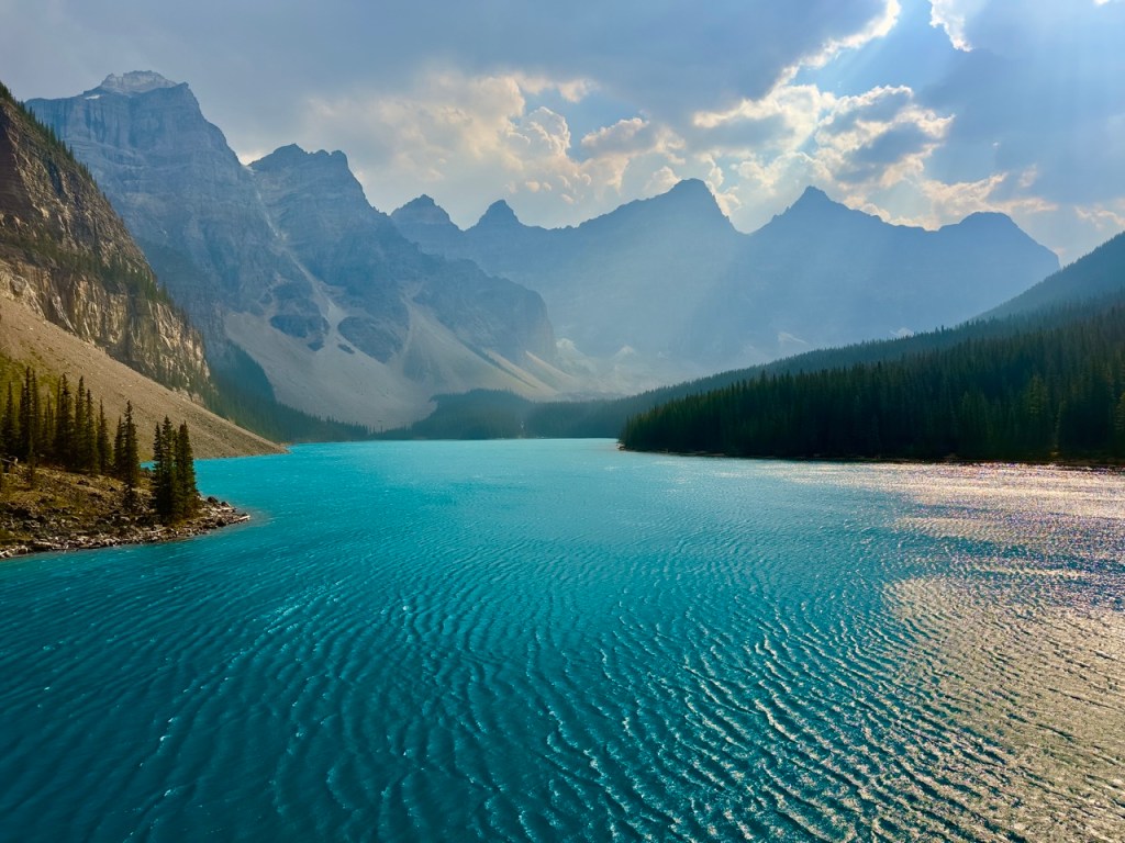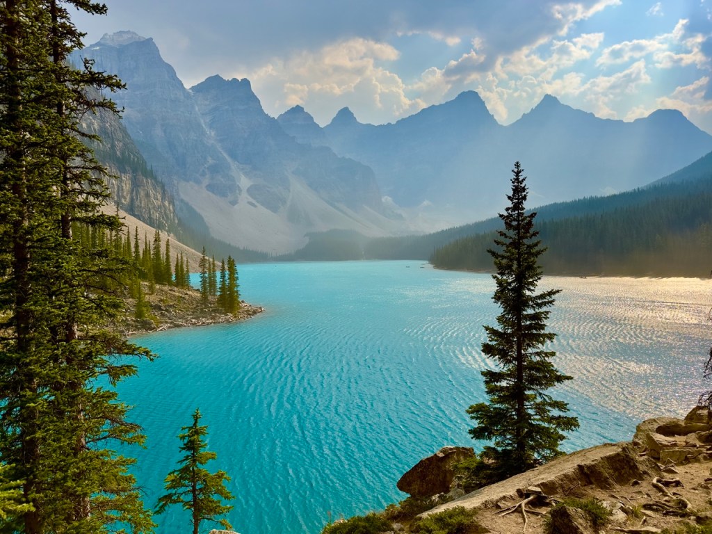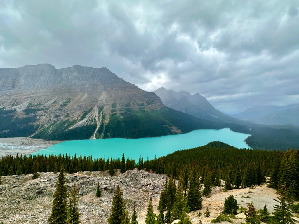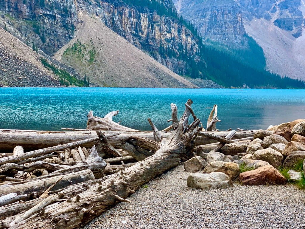 Pak už ale stáčíme kormidlo a vyrážíme do hor, ochladit se, poškádlit pár mědvědů a provětrat pohorky. Míříme do národních parků Banff a Jaspers. Brzy zjišťujeme, že je zde lidí snad ještě více než v parcích na druhé straně hranice a že i zde nebude jen tak prorvat se davy. Jak už ale víme, ty se zdržují v naprosté většině v bezpečné blízkosti restaurací, obchodů se suvenýry a v každém případě na dosah od svých vozů, a tak je na našich výšlapech do kopců necháváme rychle za sebou. Ledovců je tu pořád ještě o něco víc než na americké straně a tak neváháme a míříme k nim. Jinak parádní výhledy nám tentokráte trochu kazí všudypřítomný kouř z lesních požárů, které tu někde stále hoří. Toto léto je Kanada celá v plamenech a je to znát.