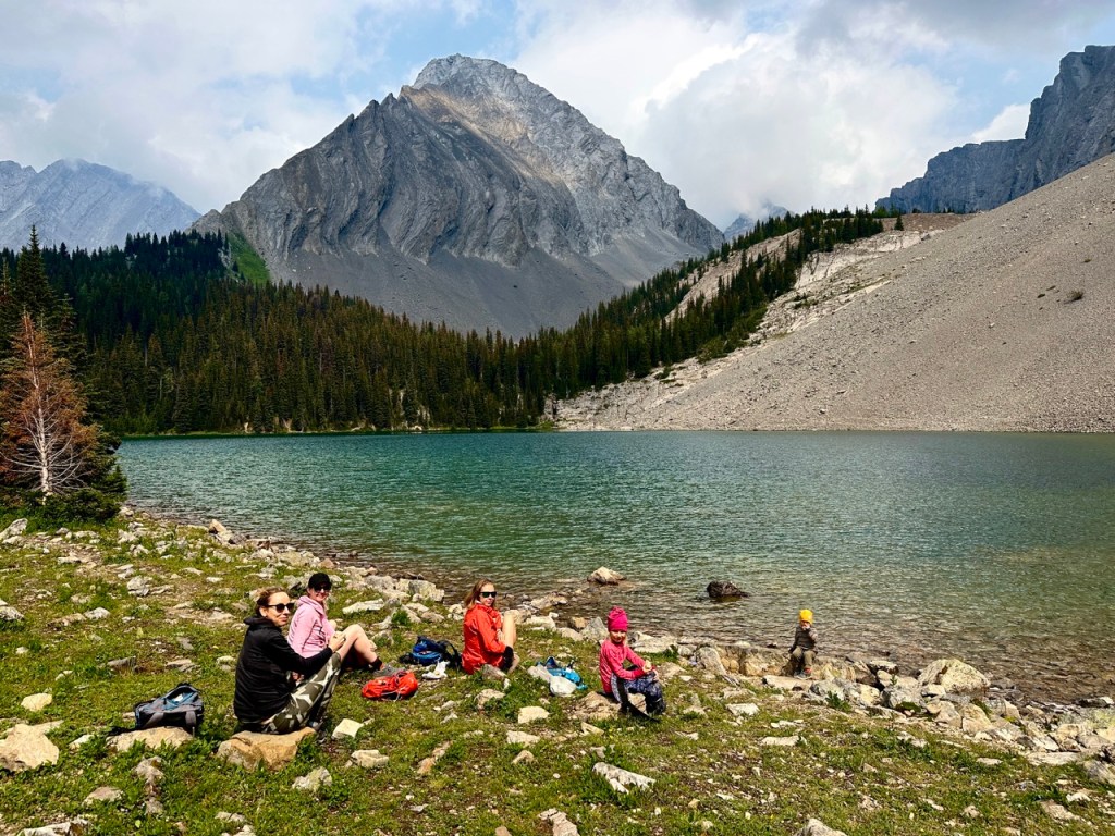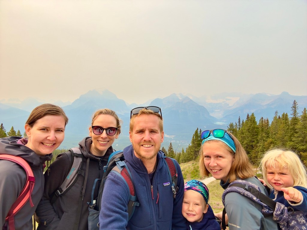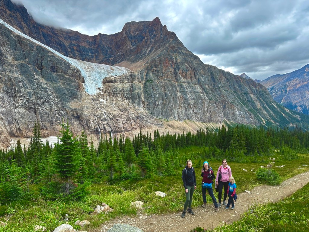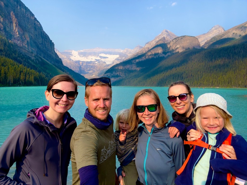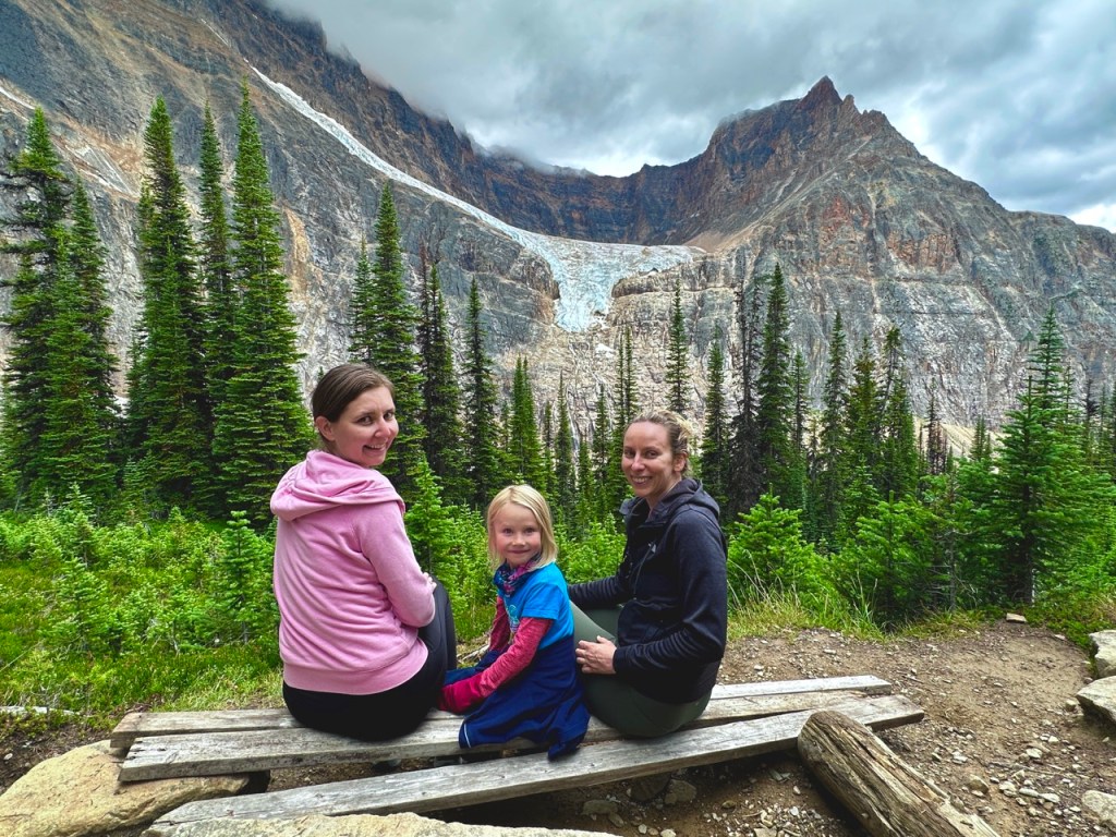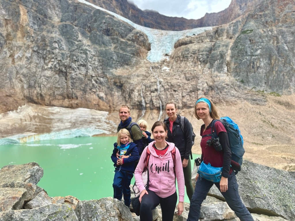 Krom lovení fotografií, které ve vás musí jednoznačně budit hroznou chuť vyhodit pracovní počítač z okna, šéfovi dát vale a vydat se také do světa, se po cestě vydáváme na rozličné túry, tu k vodopádu, tu na vršek s výhledy na ledovce. Různými trasami jsou místní národní parky protkané jako dečky po babičce a tak je z čeho vybírat. Co ale našince trochu zamrzí je, že Američané neznají koncept horských chat, kde by se dalo občerstvit, děti uplatit limonádou a dospělé pivem. O párku ani nemluvě. Člověk tak musí tahat veškeré zásoby sebou a děti přemlouvat, že výhled je přeci také odměnou. Naše děti na to naštěstí (zatím) docela slyší. A co jsou tu s námi holky, tak také při výletech Petra učí Emmu lidové písně, což je překvapivě funkční model, jak odvézt Emminu pozornost od faktu, že je před ní ještě 15 kilometrů a 800 metrů převýšení. Škoda, že ani já, ani Kika zpívat opravdu neumíme. Na plašení medvědů to ale funguje zaručeně.