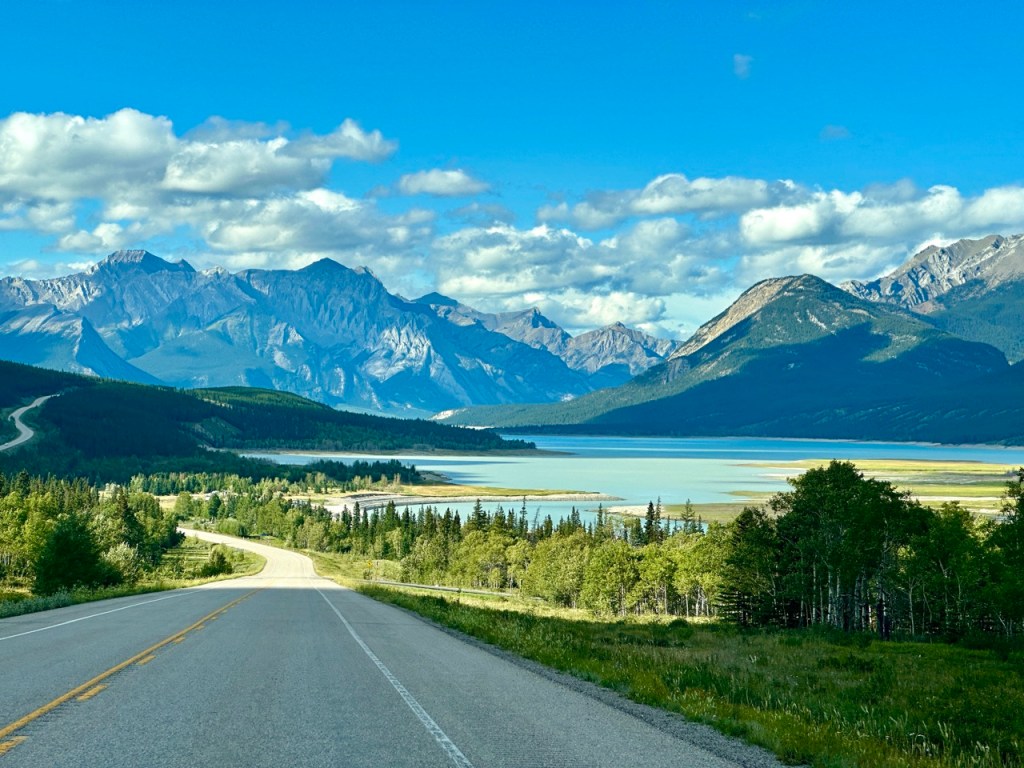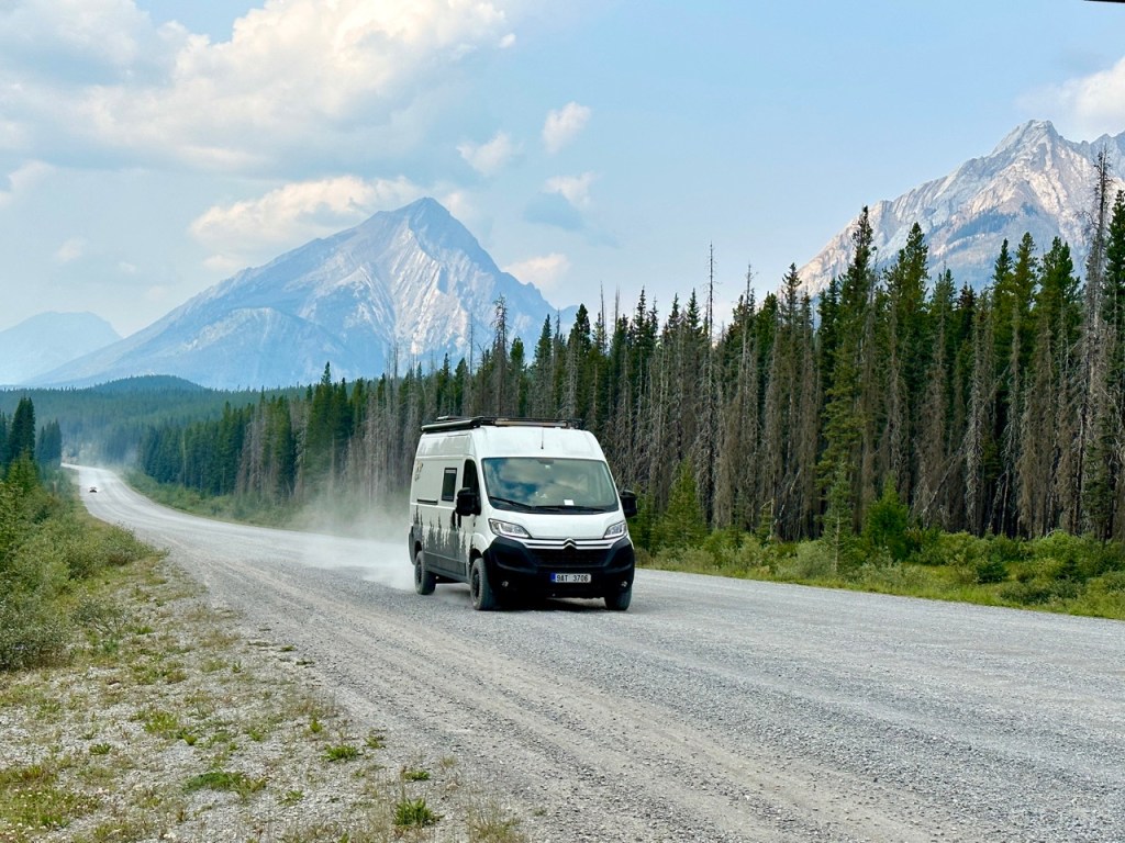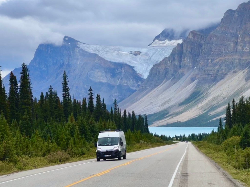 Mezi národními parky Banff a Jaspers vede proslulá Icefiled Parkway. Ta se klikatí podél divokých horských řek a ledovcových jezer, mezi vysokými štíty a ledovci a je údajně jednou z nejfotogeničtějších v celé severní Americe. Asi na tom něco bude, neb naše frekvence zastávek, abychom něco fotili se výrazně zvýší a naše průměrná rychlost se povážlivě sníží. Nás to ale baví, děti o trochu méně. Jeden ledovec by jim stačil, teď by zas mohla přijít na řadu třeba zmrzlinka. Večer nacházíme parádní místo u jezera, kousek za hranicí národního parku, my s Kikou se smočíme v místním jezeře, holky stále odolávají. Následuje obří oheň, abychom s Kikou alespoň trochu rozmrzli.