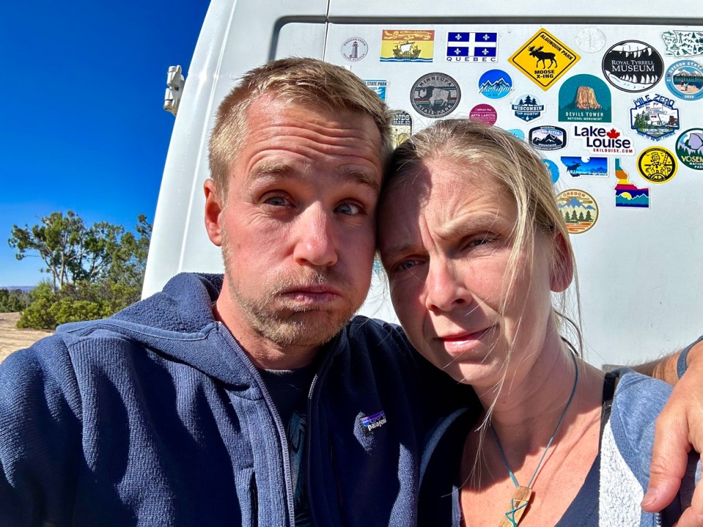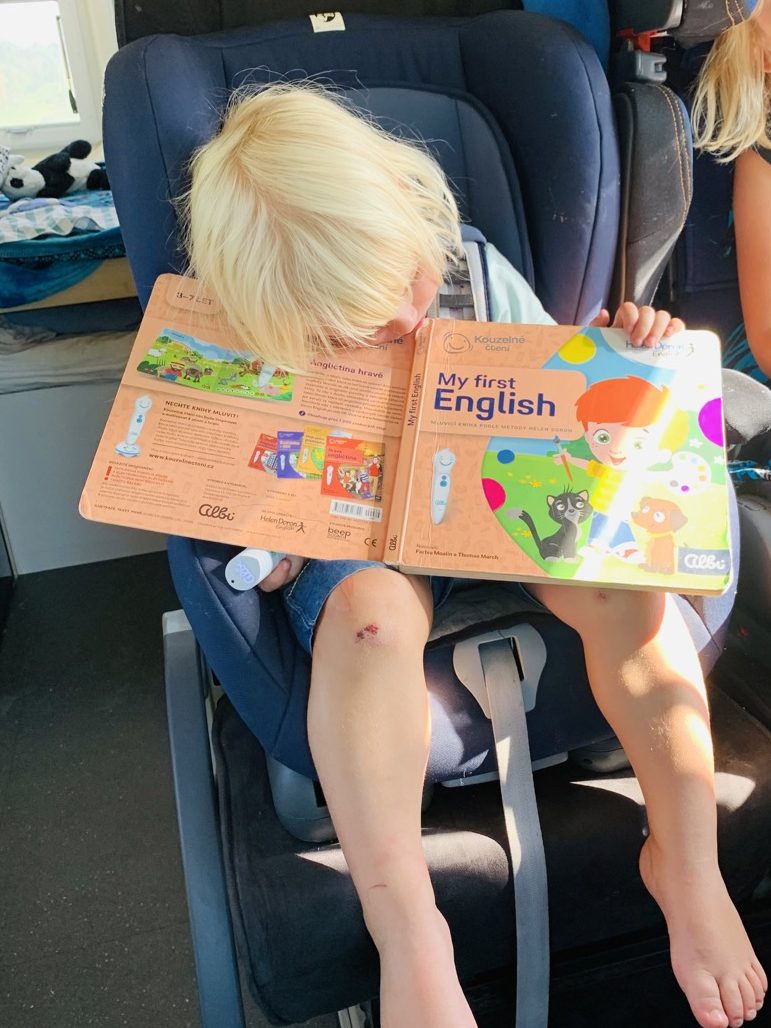 V kolech máme již přes 16 17 tisíc kilometrů, ohromnou kupu skvělých zážitků, jen pár těch méně hezkých, pár boulí a několik (opravených) závad. Emma už umí sčítat a odčítat do pěti, napsat většinu dvouslabičných slov a domluví se anglicky (obzvlášť jde-li o objednání zmrzliny nebo lívanců). Vilém pořád odmítá chodit na nočník, ale za to umí hezky zanotovat „holka modloholká“ nebo „čobogaj nebogaj“ (díky Petro 😅), když vidí na obrázku třeba medvěda říká „tam byli“, umí poděkovat hezky pomístním „tenk jů mač“ a z auta už umí vystoupit, aniž by přistál hlavou napřed. Kika už řídí jako Niki Lauda, peče chleba stejně dobrý jako doma, naviguje lépe než Marco Polo a zjišťuje, že naučit se učit (Emmu) není žádná legrace. Já se učím krotit svou oddanost naplánovaným plánům, občas se nořím do tajů automechaniky či mezinárodní námořní přepravy, a především se snažím naučit se žít tím, co je teď a ne tím, co bude. Zní to možná banálně, ale není.