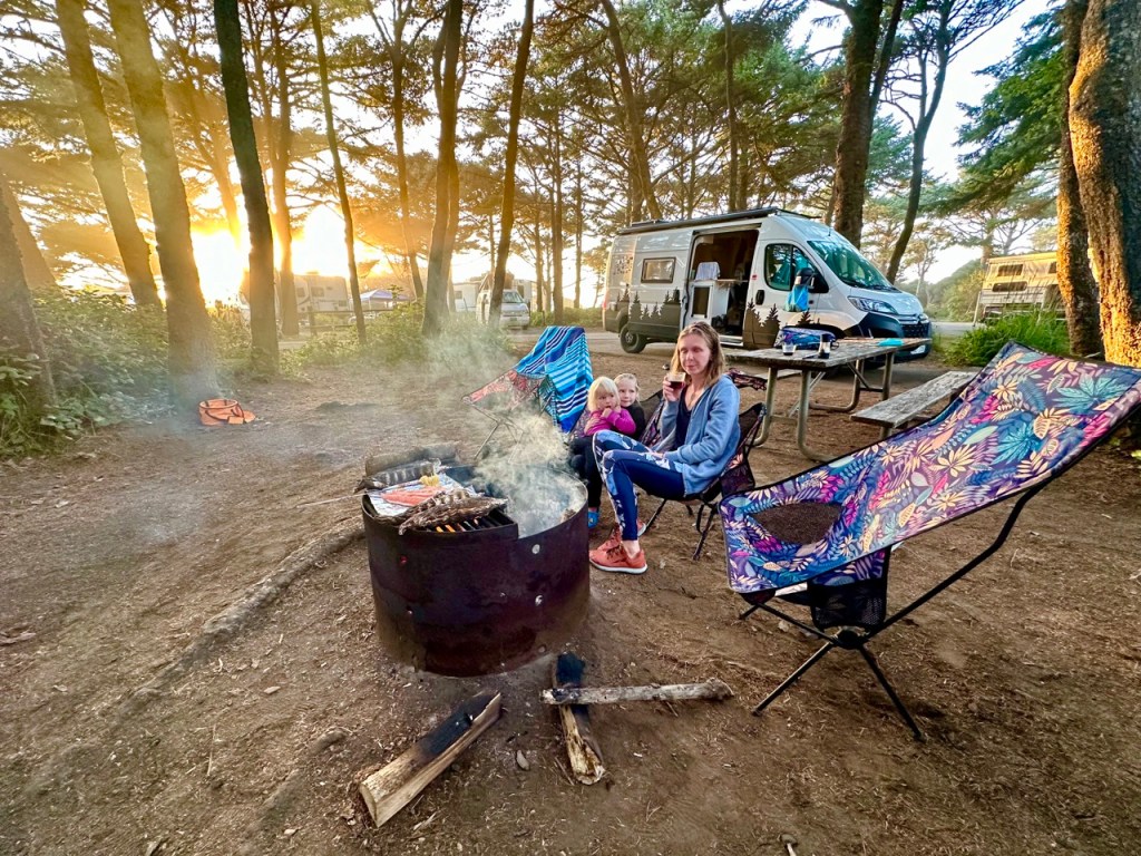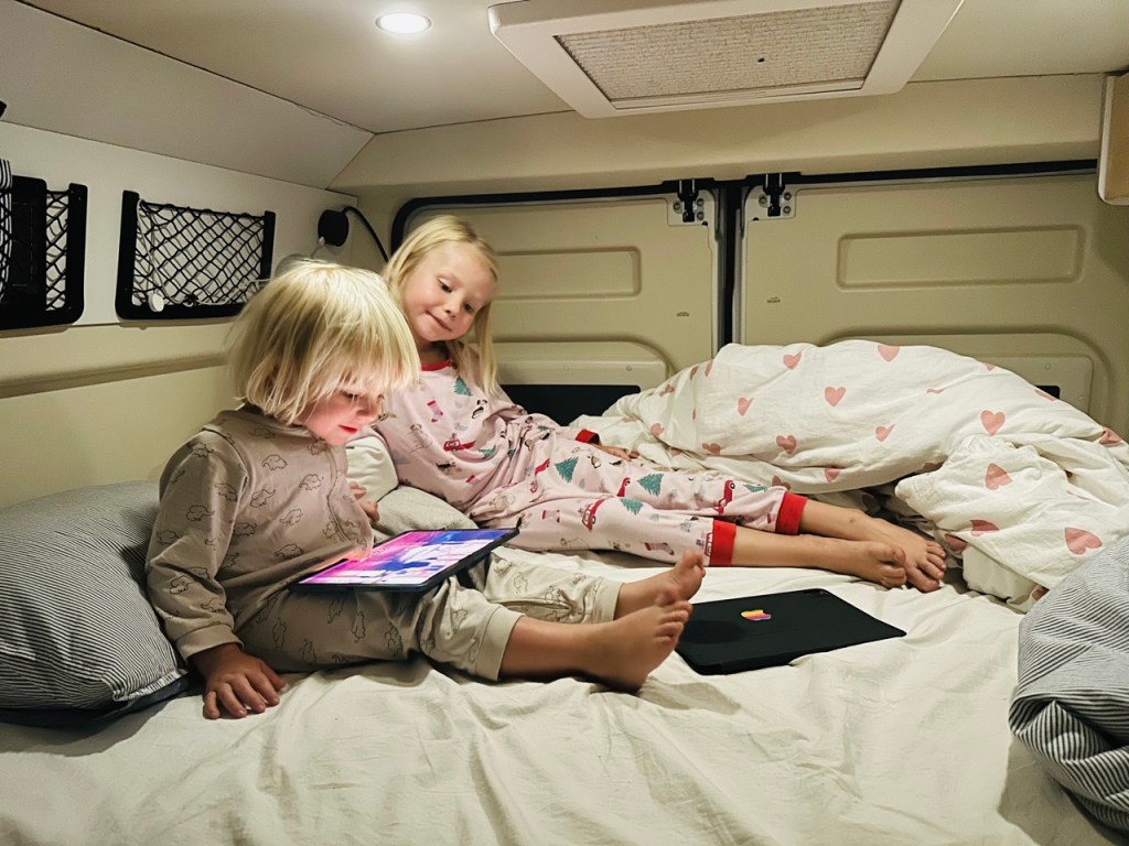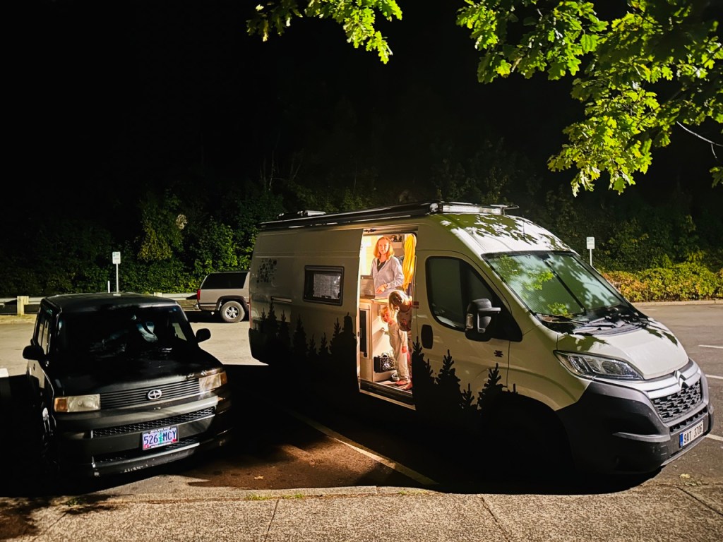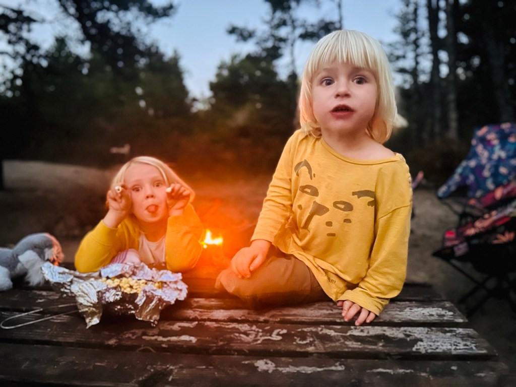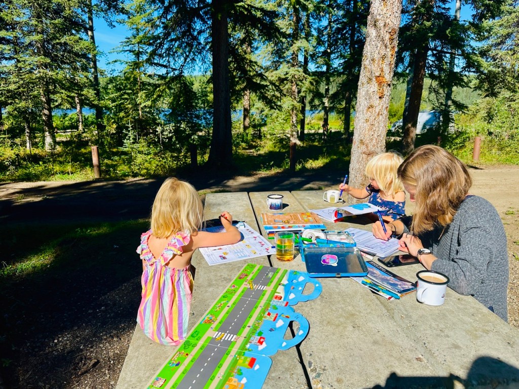 Jak název článku napovídá, už se na cestě a našem malém domově na kolech začínáme cítit jako doma. Když míříme z výletu, tak jdeme domů, když (velmi výjimečně) spíme někde jinde, těšíme se zpátky do naší postele. Kika zvládá péct chleby i koláče a zavařuje marmelády, děti si našli roztodivné způsoby jak si i z tří a půl metrů čtverečních udělat obří hernu a já zrovna tento příspěvek píšu na naší pěkné dočasné zahradě (máme tu les, vodopád i borůvky). Úložnému prostoru pod postelí říkáme sklep, tomu u zadních dveří garáž a bednám na střeše půda. Hnedle máme v autě mnohem víc místa 😃.