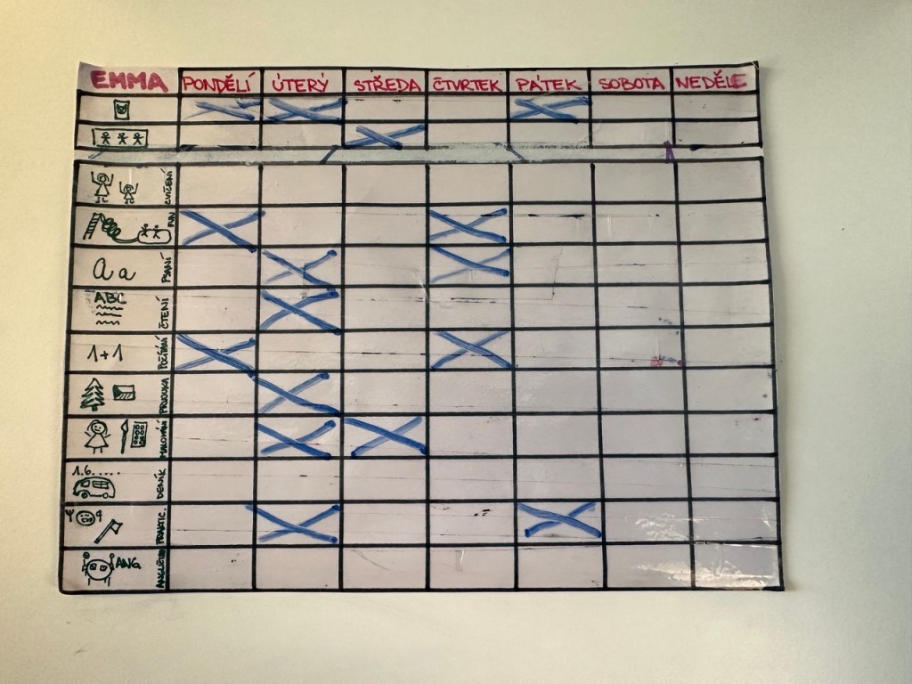 Velkou výhodou je, že stále nemá v podstatě žádnou představu o čase a tak, když se občas zeptá, za jak dlouho se vrátíme domů, můžeme jí odpovědět v podstatě cokoliv 😉. Osvojila si také jednu klasickou „trosečnickou“ kratochvíli a občas plánuje, co všechno si pořídíme až zase budeme bydlet „doma“. Seznam už je to pravda dlouhý. Je na něm krom panenek a nových knížek třeba taky poník, kabriolet, hvězdářský dalekohled nebo lama. S kamarádkami si pořád ještě posílá krátká videa nebo si občas zavoláme přes skype a tak s nimi má kontakt alespoň takto zprostředkovaně.