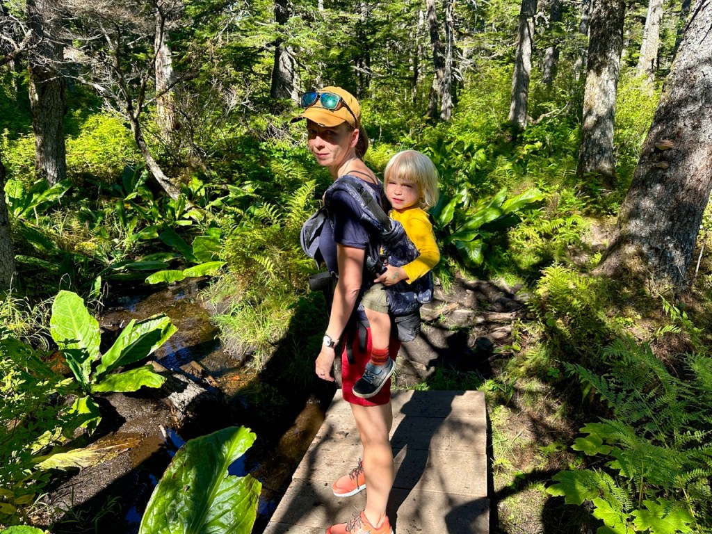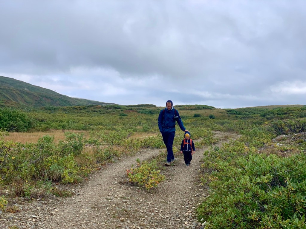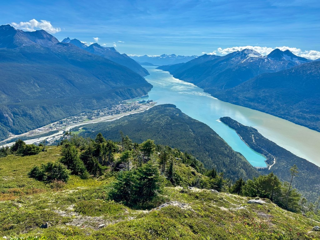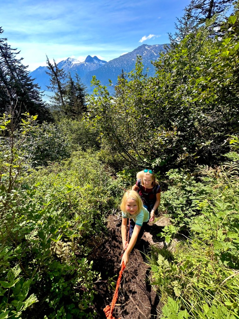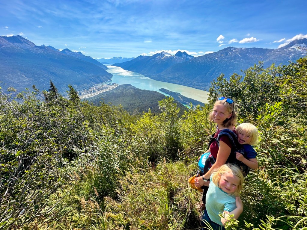 Ve Skagway, které jse ze všech výše uvedených měst asi nejturističtější, se vydáváme na výlet, který slibuje ty nejlepší výhledy na všechny přilehlé fjordy a ledovce. To je však vykoupeno tak strmým převýšením, že nohy začínají bolet i Viléma, který se po většinu cesty nese. Druhý den nevytáhneme paty z auta. Otoky léčíme zmrzlinou. Ostatně byl to první výlet, u kterého se nám nepodařilo Emmu přesvědčit, že stojí za to ho dokončit. Někdy snad mají ty děti víc rozumu než my…