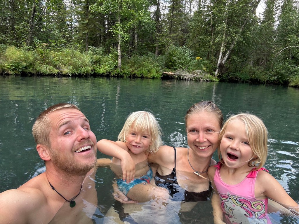 Téměř přesně v polovině Alaska Highway, na 760. kilometru, se nachází horké prameny Liard Hot Springs, kde většina poutníků přibrzdí a smáčí prach z cest. Ani my neodoláme a rozbíjíme tábor. A jelikož až na pár výjimek podél aljašské dálnice nechytnete signál telefonu, fungují tyto horké lázně také trochu jako off-line verze Googlu a vzpomínka na dobu analogovou. A tak jakmile smočíte ve vodě palec, už se vás někdo vyptává odkud a kam máte namířeno, rád nasdílí aktuální ceny benzínu na pumpách po cestě, přihodí že na kilometru 1097 je obrovská díra, které je lepší se vyhnout nebo že směrem na Yukon se pase velké stádo bizonů. Nemohl jsem nevzpomenout na podobné lázně v Japonsku, kde je naopak ticho asi jako v krematoriu. My jsme se zde louhovali pro jistotu dva dny a čerpali síly na zbývajících 650 kilometrů, které nás dělily od města Whitehorse, hlavního města Yukonu.