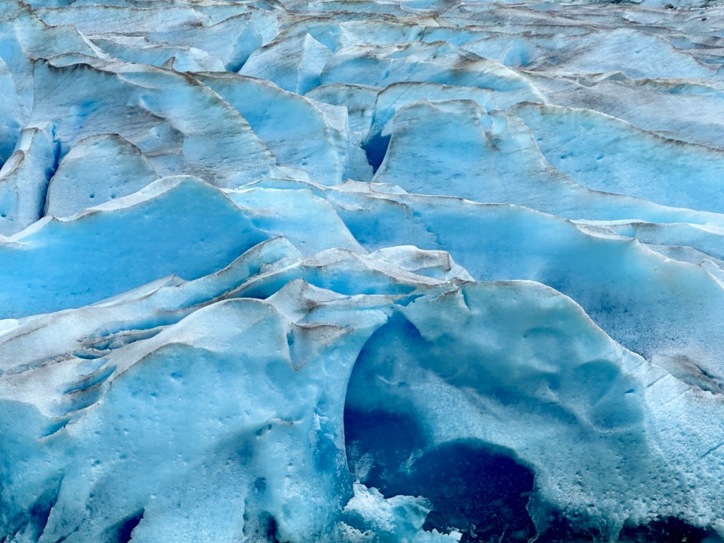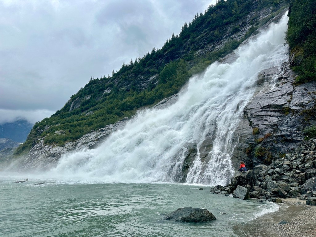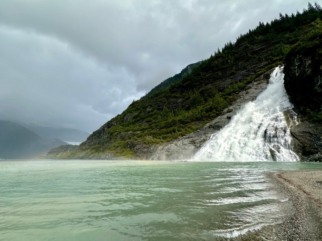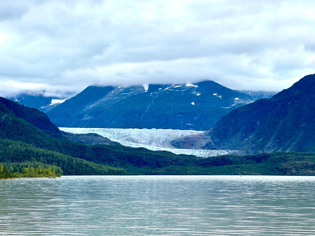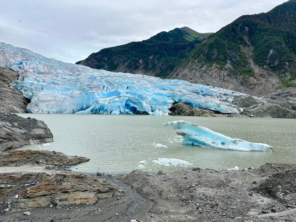 Juneau je specifické také tím, že má velmi dostupné ledovce, které jsou na mnoha místech vidět od silnice (pokud zrovna nejsou schovány za záclonou deště). Nejznámější z nich je asi Mendahállský ledovec, který se ještě před pár lety málem plazil Juneauskou hlavní třídou. K němu také podnikáme celkem náročný, ale parádní výlet. Pokochat se krajinou, nechat se pořádně zmáčet deštěm, nasbírat pár hub (je sezóna) a zjistit proč je ten led tak zatraceně modrý (podle Emmy jde o šmoulí zmrzlinu, podle vědců o lom světla. resp. o to, že led pohlcuje všechny barvy spektra krom modré).