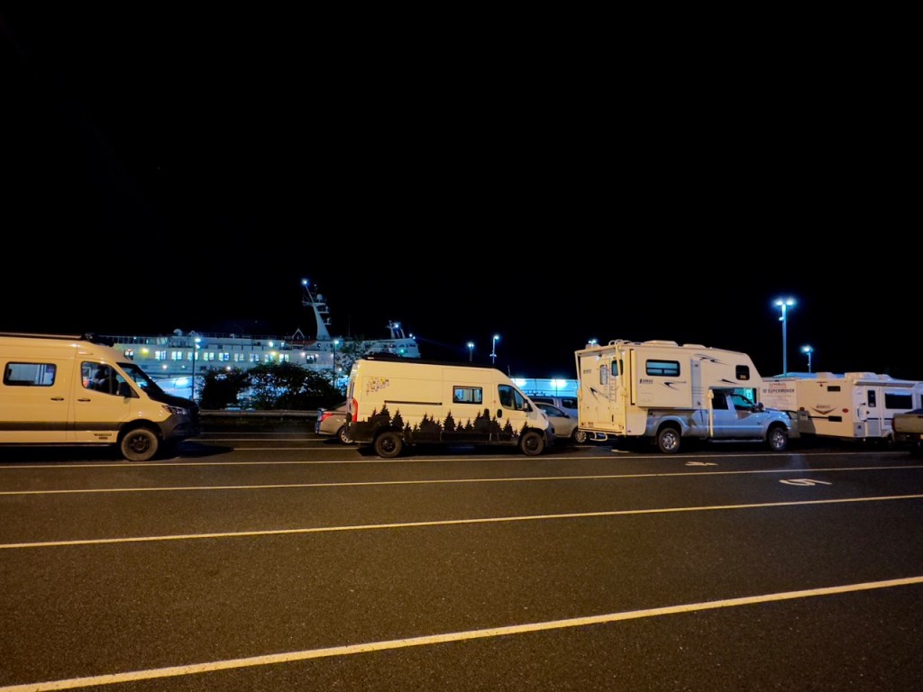 Je to poprvé od doby, co jsme vyjeli, kdy máme opravdu nepěkné počasí. Je to také naše první menší energetická krize, neb nám chybí slunce na dobíjení solárních panelů. Střídáme proto promrzlé výlety s vyhřátým bazénem a dětskou hernou, projíždíme asi všech třicet mil místních silnic (jediný způsob, jak dobít baterii obytné vestavby bez slunce) a čekáme až dorazí loď, která nás odveze zpátky na jih. Ta nás po čtyři dny a čtyři noci bude unášet až k Seattlu a západnímu pobřeží USA.