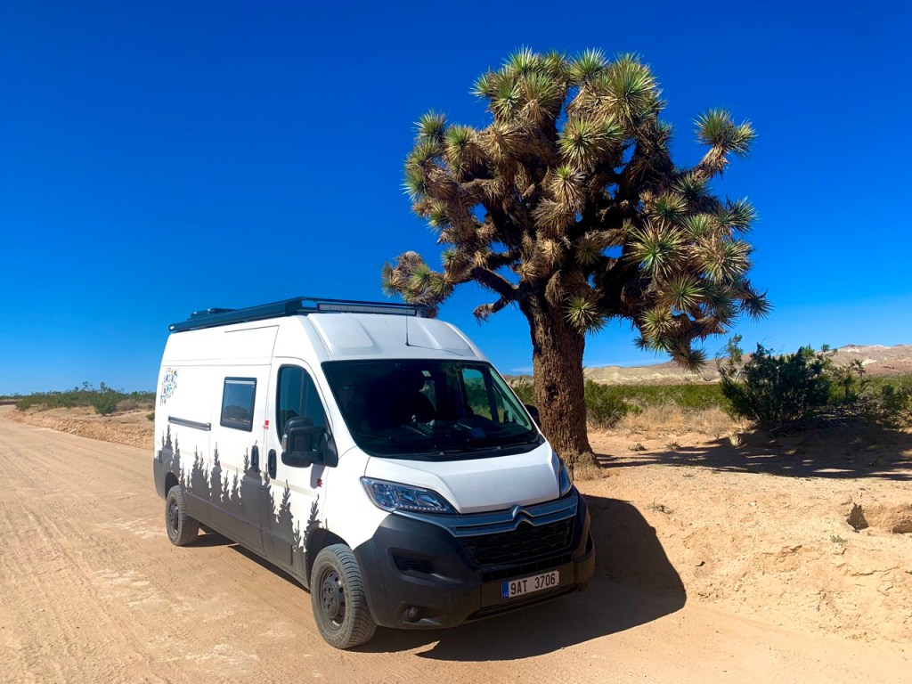 Krajina, kterou projíždíme je pozoruhodně krásná. Úplně jiná, mimozemská (otherwordly, jak by řekli místní). Hodně nás baví, máme dojem, že jsme spíš na Marsu, než na Zemi. Jedinou výraznější zelení jsou tu Joshua trees – něco mezi stromem a kaktusem (česky juka krátkolistá).