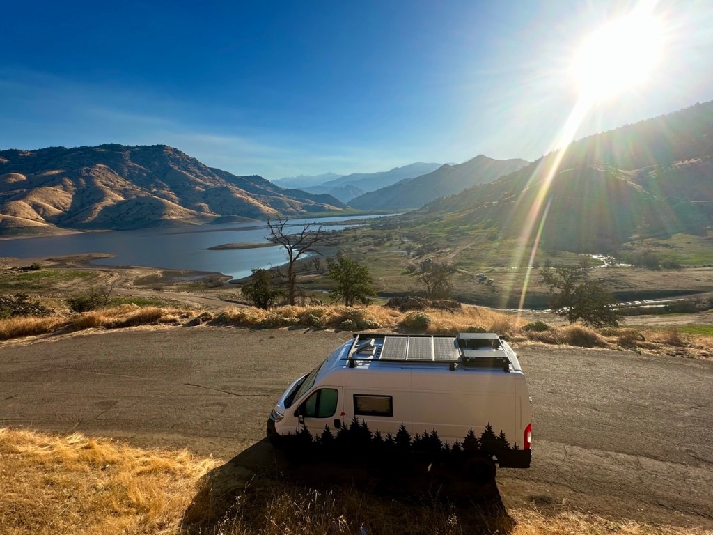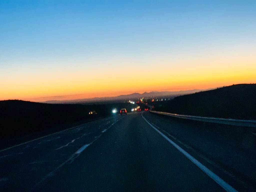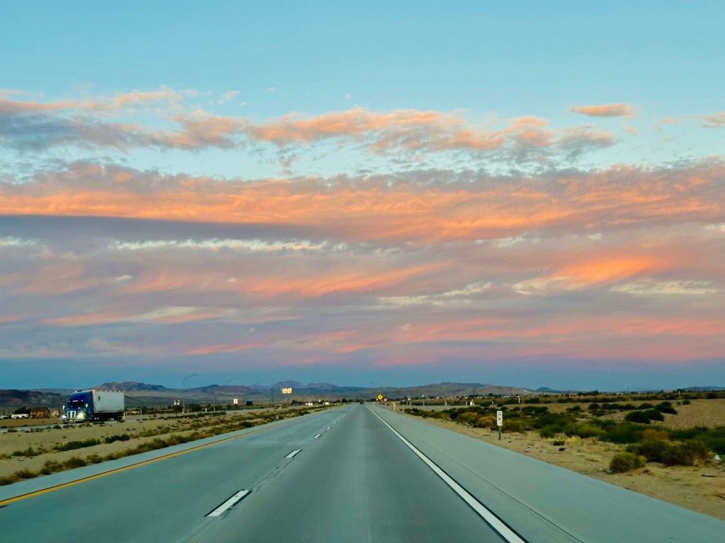 Že máme namířeno do té části Spojených států, kde je i v zimě jak v rozpálené peci, a kde se daří přežívat převážně neživé hmotě v podobě sluncem sežehlých hornin, písku a suti nám začne docházet, když po třech hodinách neustálého brždění (jedeme skoro zadarmo 😄) začne ručička teploměru ukazovat směšně vysoké hodnoty. Je sedm večer, venku je 36 stupňů a v té velké přehradě, u které jsme chtěli přespat a vykoupat se není téměř žádná voda. Všechna asi zmizla do pomerančů a mandlového mléka. Na dlouho tak vjíždíme do pouští a polopouští, kde na vodu a zeleň narazíme jen velmi vzácně.
