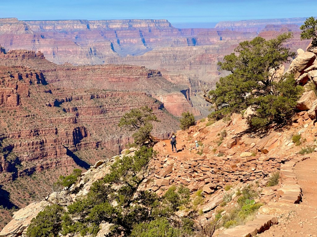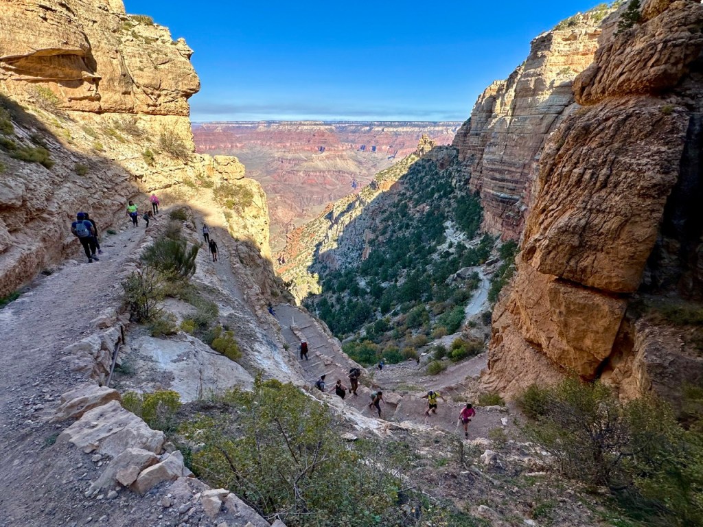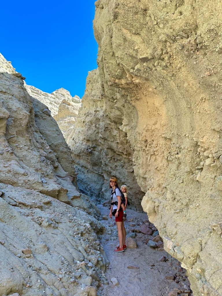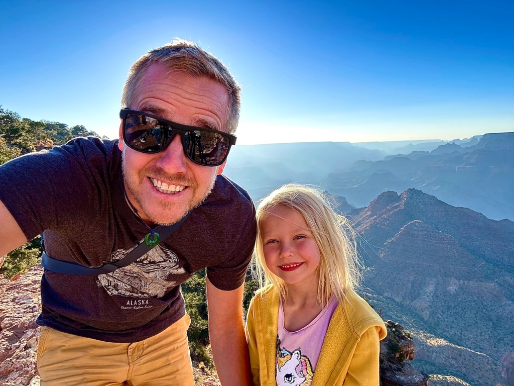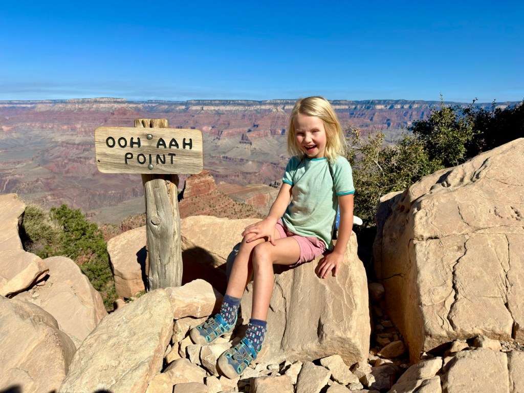 Nespokojíme se však jen s koukáním do této obří jámy jako velká většina ostatních návštěvníků a rozhodujeme se pro alespoň částečný sestup do této rozšklebené tlamy Země. Dolu to jde celkem snadno. Vilém se pro jistotu nese a Emmě se šlape jedna radost. Když jí po zhruba 450 výškových metrech oznamujeme, že to co jsme sešli dolu, musíme zase vyjít nahoru, stávají se z nás málem úhlavní nepřátelé. Zachrání nás příručka mladého strážce, díky které se nám daří odvádět Emminu pozornost od úmorného výšlapu až do okamžiku, kde zase stojíme nahoře.