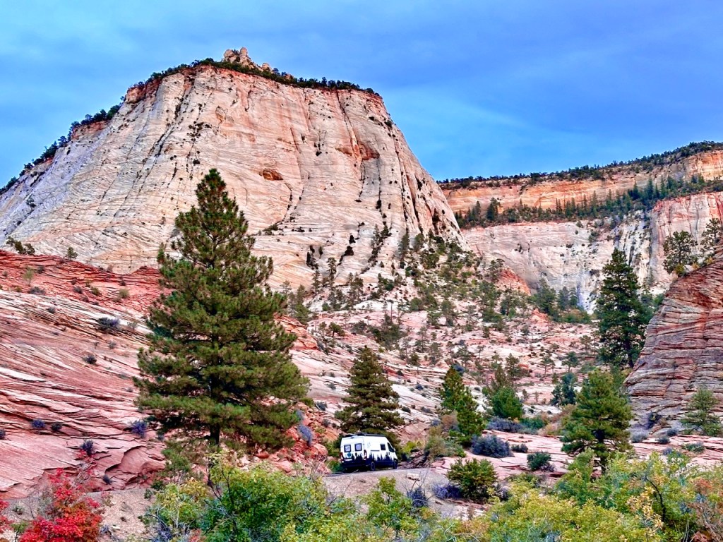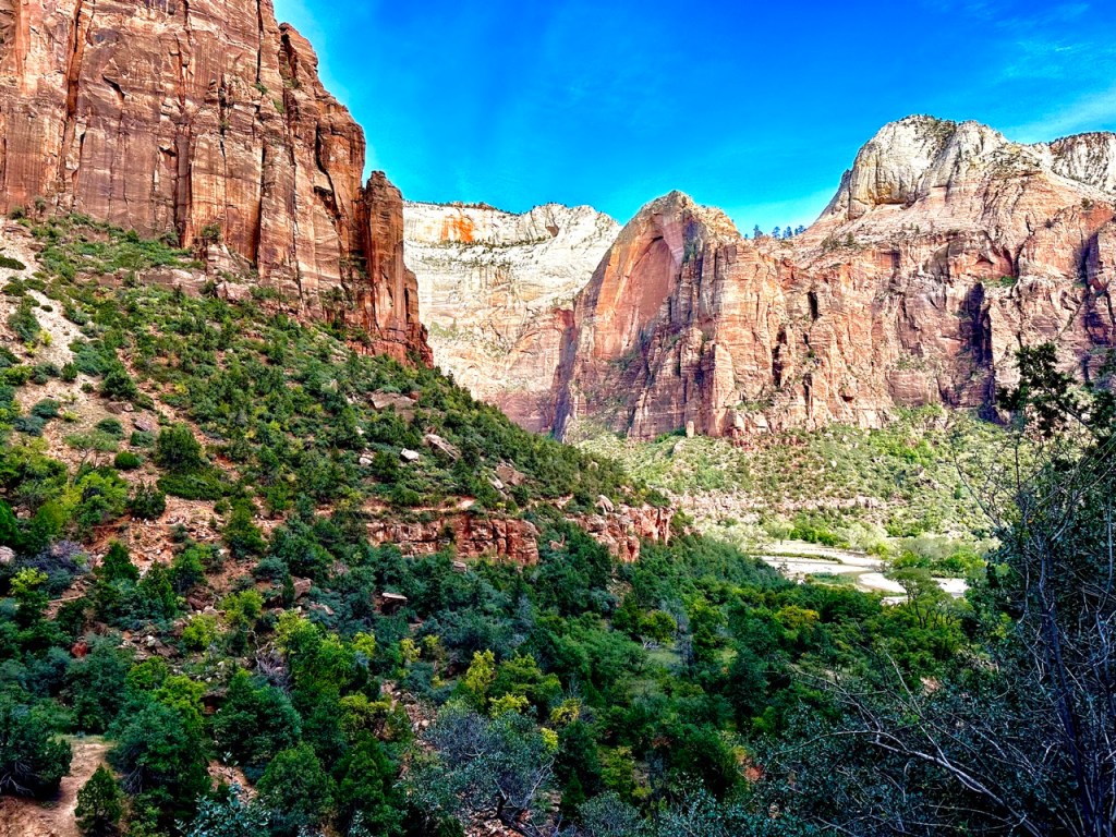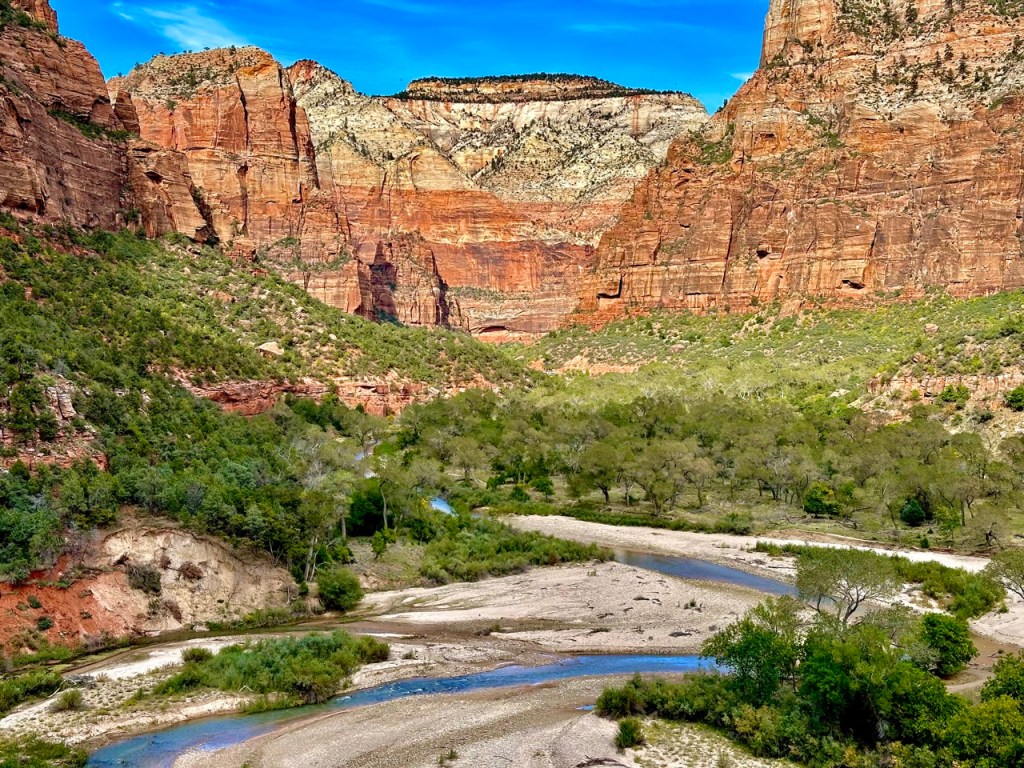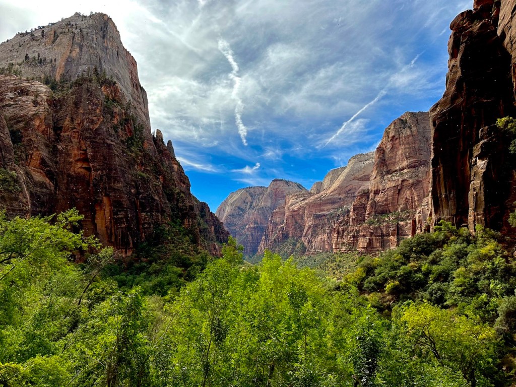 A když se ráno vyspíme z téhle navýsost světské krásy, vydáváme se s mírným pocitem kocoviny (ačkoliv jsme té vkusně servírované margaritě opravdu odolali) zase dál. Jako vhodný detox nám připadá národní park Zion. Přestože jsme ho původně neměli vůbec v plánu, příjemně nás překvapí. Méně už davy lidí, kteří jej evidentně v plánu měli. Po dlouhé době zase stojíme fronty na autobus, abychom se dostali k některému z treků, kterými je celý park protkaný. Park je vlastně jeden velmi (700 metrů) hluboký kaňon, který během několika málo milionů let vybrázdila poměrně nenápadná říčka, která jím protéká. Inu tichá voda břehy mele… O tom se konečně přesvědčujeme i na dalších zastávkách naší pouti po jihozápadě USA.