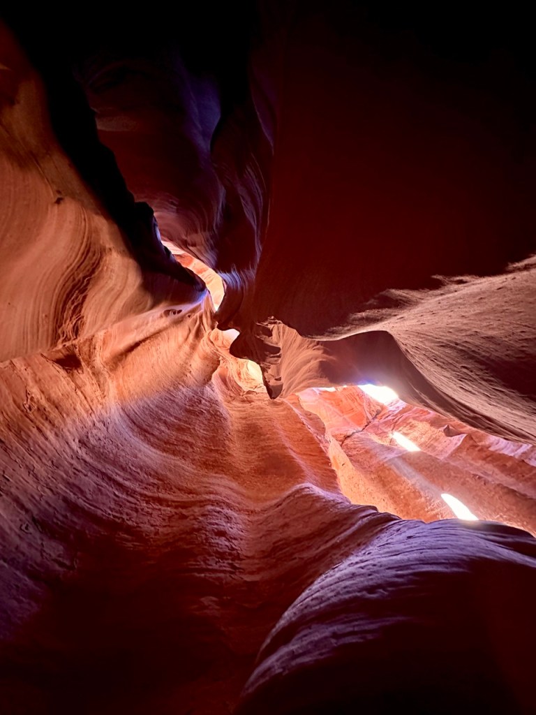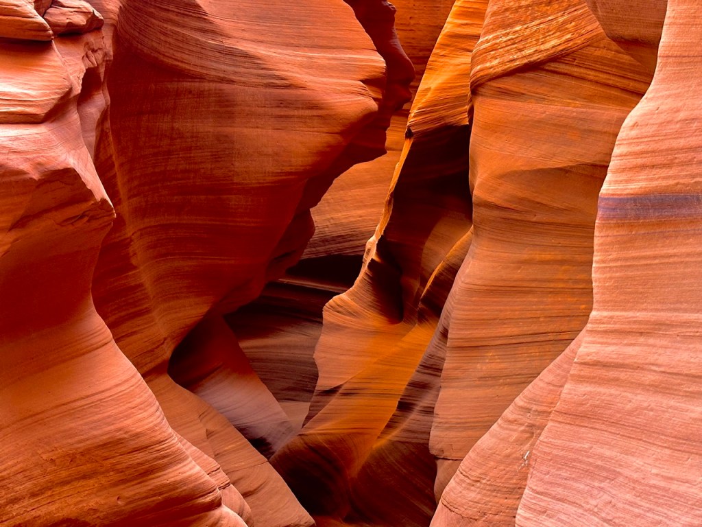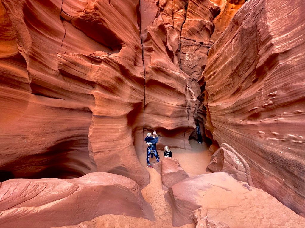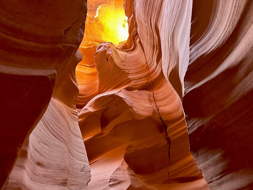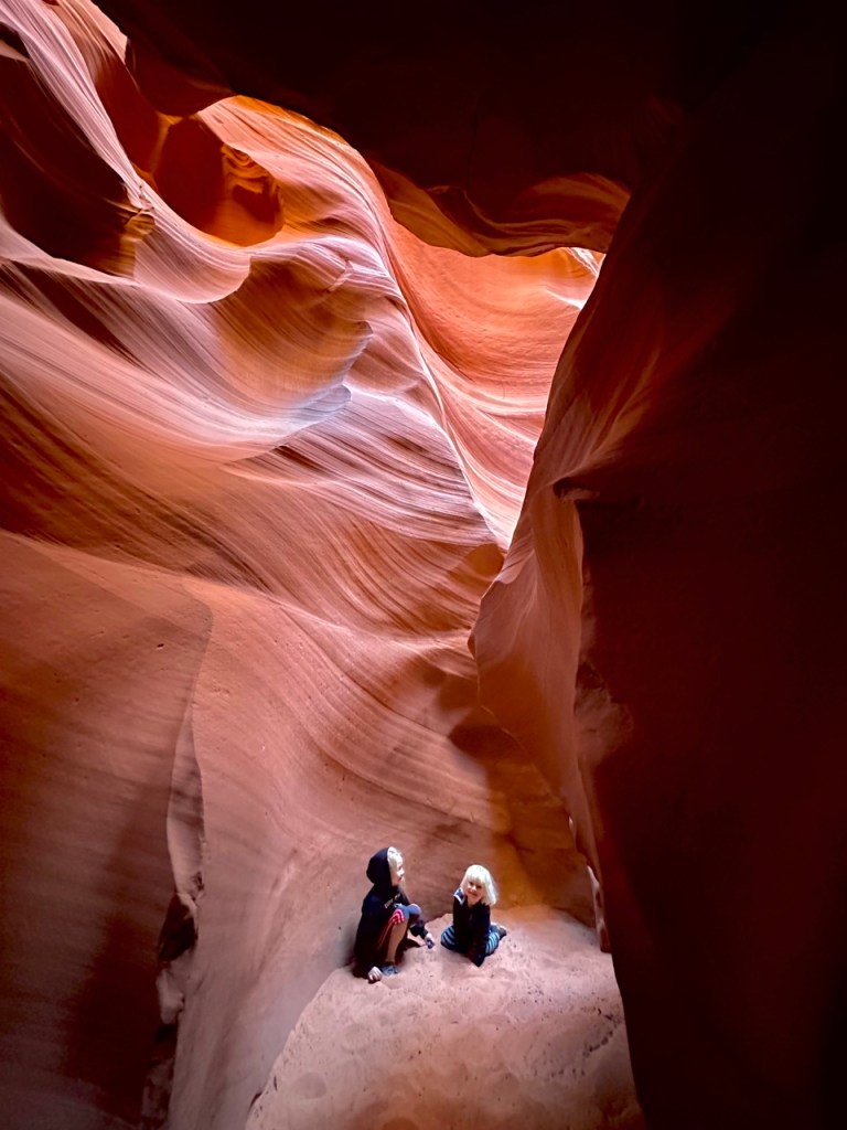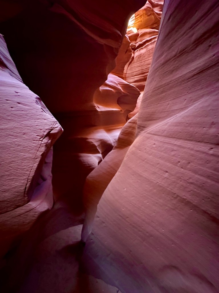 U města Page vám místní indiáni za nemalý peníz rádi umožní vstup do jednoho z mnoha úzkých kaňonů, kterými je místní jinak zcela nezajímavá krajina provrtaná. Ani mi neodoláváme a po dlouhé době se účastníme placené „tour“. Sice ji málem zmeškáme, neb zpětně zjišťujeme, že jeden ze způsobu místního indiánského odboje proti koloniální nadvládě USA je to, že na svém nemalém území neuznávají letní čas. A tak, podle toho v jaké části pouště zrovna jste, vám ručička na hodinách přeskakuje jako splašená. Naše původní obava, že jsme vjeli do nějaké poťouchlé časoprostorové smyčky se tím naštěstí vysvětluje a my nakonec dorazíme „včas“.