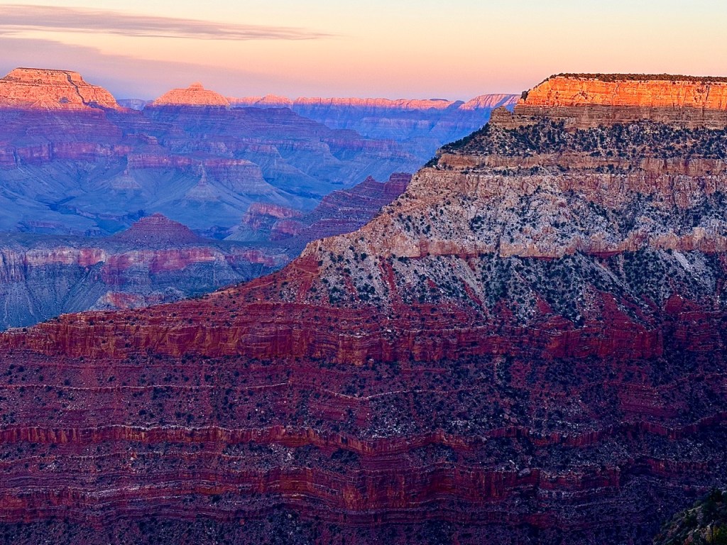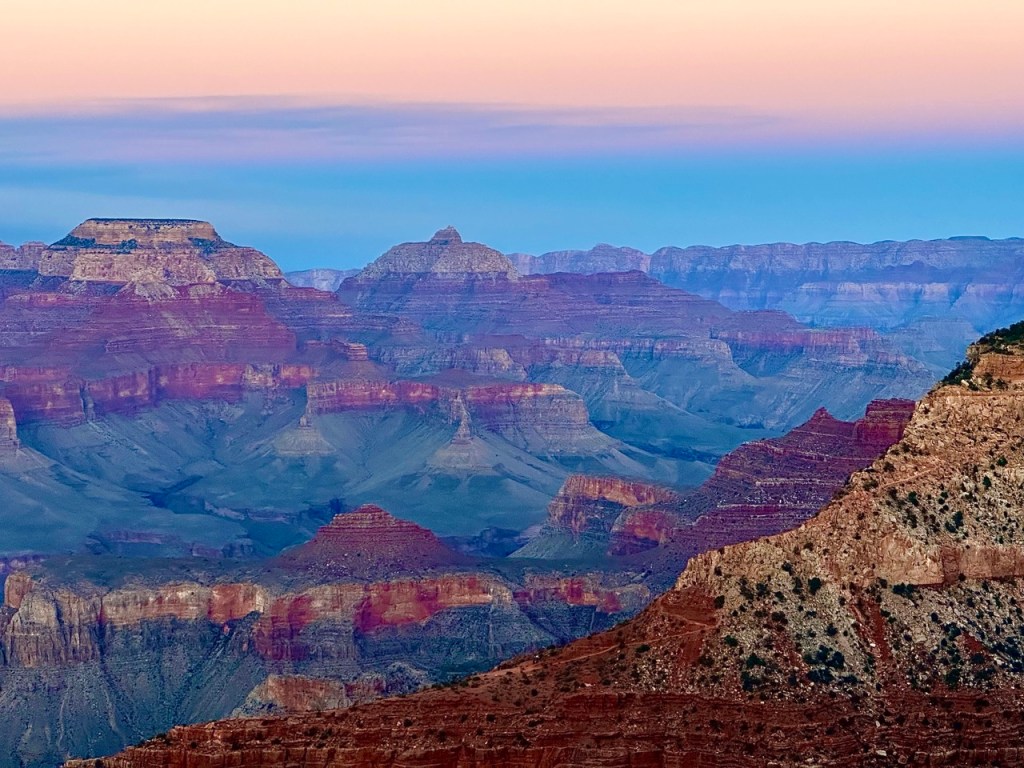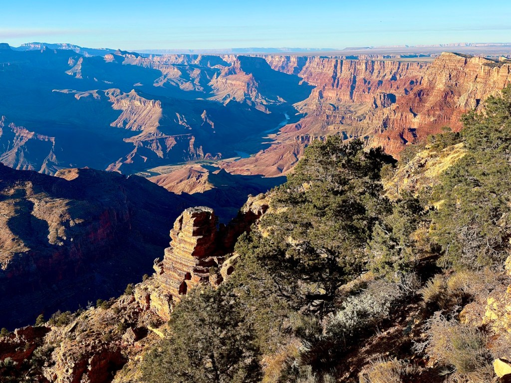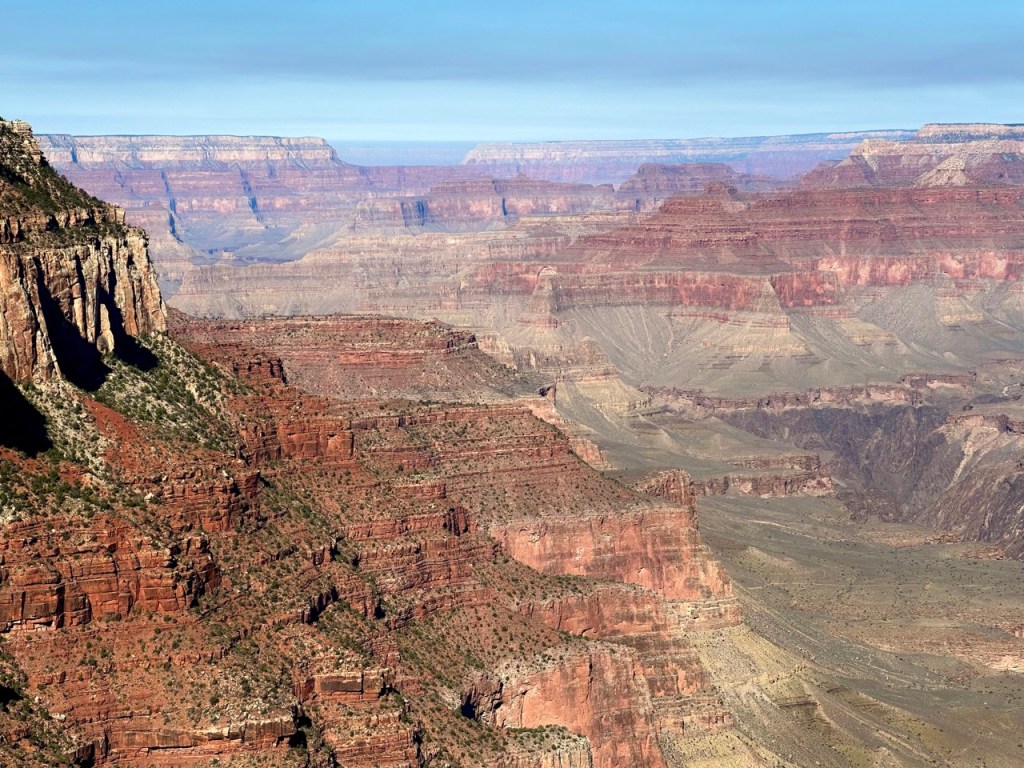 Bystrý čtenář jistě správně odtuší, že nemám na mysli nic jiného než slavný Grand Canyon. Že se jedná o opravdu velkou díru jsme věděli, že bude až tak velká nás však i tak překvapí. Člověk má téměř dojem, že kouká na nějaký plakát. Že dorazil kamsi na konec světa, kde už není nic než tenhle kaňon.
