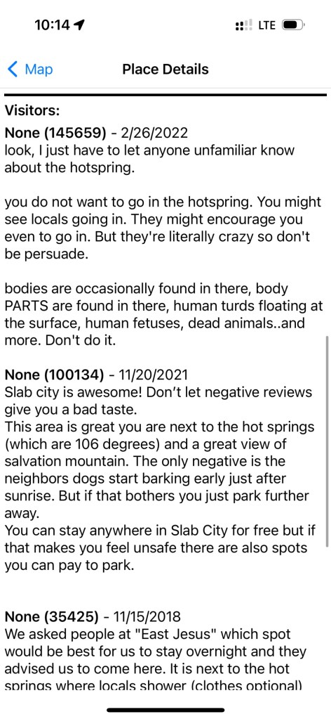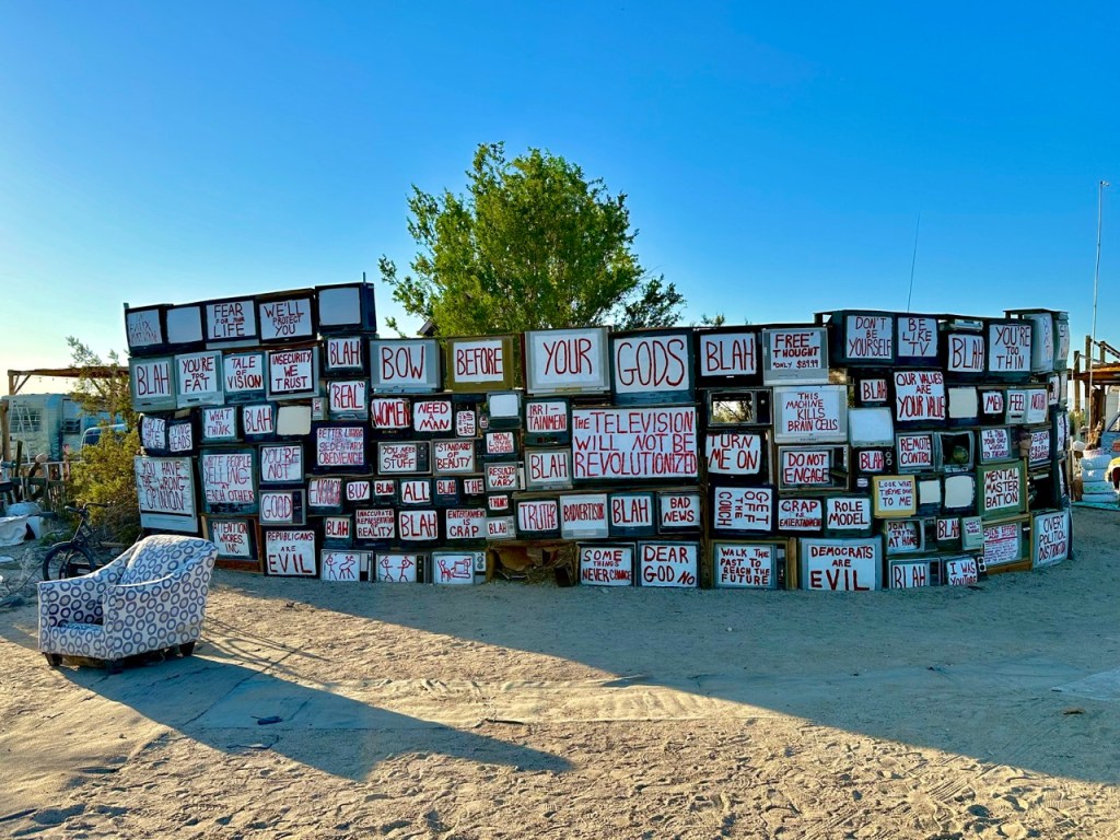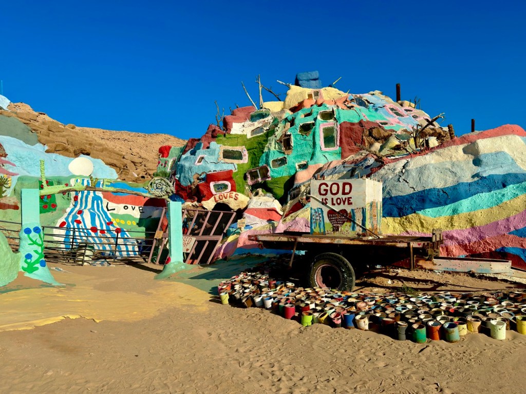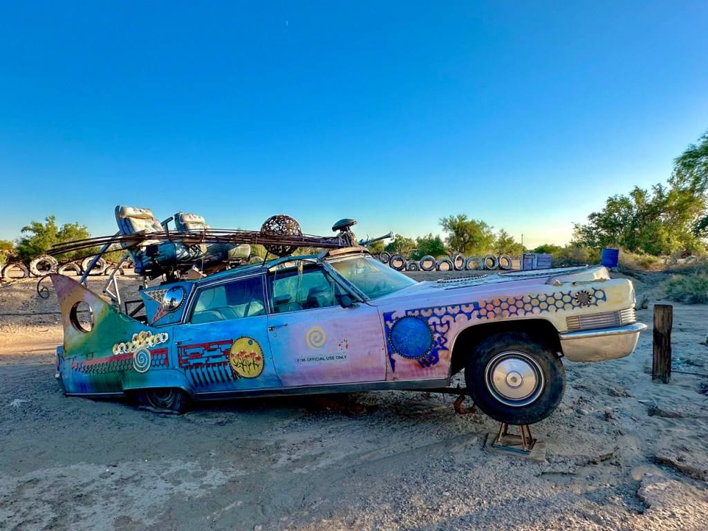 Poslední den v USA tak trávíme mírně omámení tím neskutečným vedrem. Pro návštěvu mírně psychedelické hippie kolonie Slab City se to nakonec celkem hodí. Když ani večer neklesá teplota pod 37 stupňů, kapitulujeme a poslední noc v USA trávíme celkem stylově, v zaprášeném motelu s hlučnou, ale funkční klimatizací.