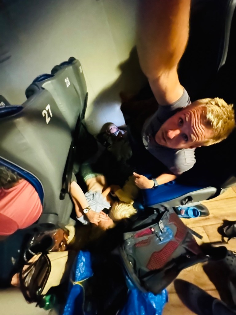 Loď jede z Baja California přes noc, vyrazíte okolo páté odpoledne a ke břehům pevninského Mexika (jakkoliv jde o zeměpisně nepřesné označení) dorazíte v devět ráno na druhý den, tedy za zhruba 16 hodin. Jak ale každý ví, čas dokáže být vskutku relativní. A tedy, když nás zhruba po týdnu z lodě vypustí, máme otlačeny snad všechny části těla, z nosů nám visí rampouchy a děti mají do šedé kůry mozkové bezpečně vtisknuty snad všechny béčkové filmy za poslední dekádu (ty totiž pouští non-stop v každé místnosti).