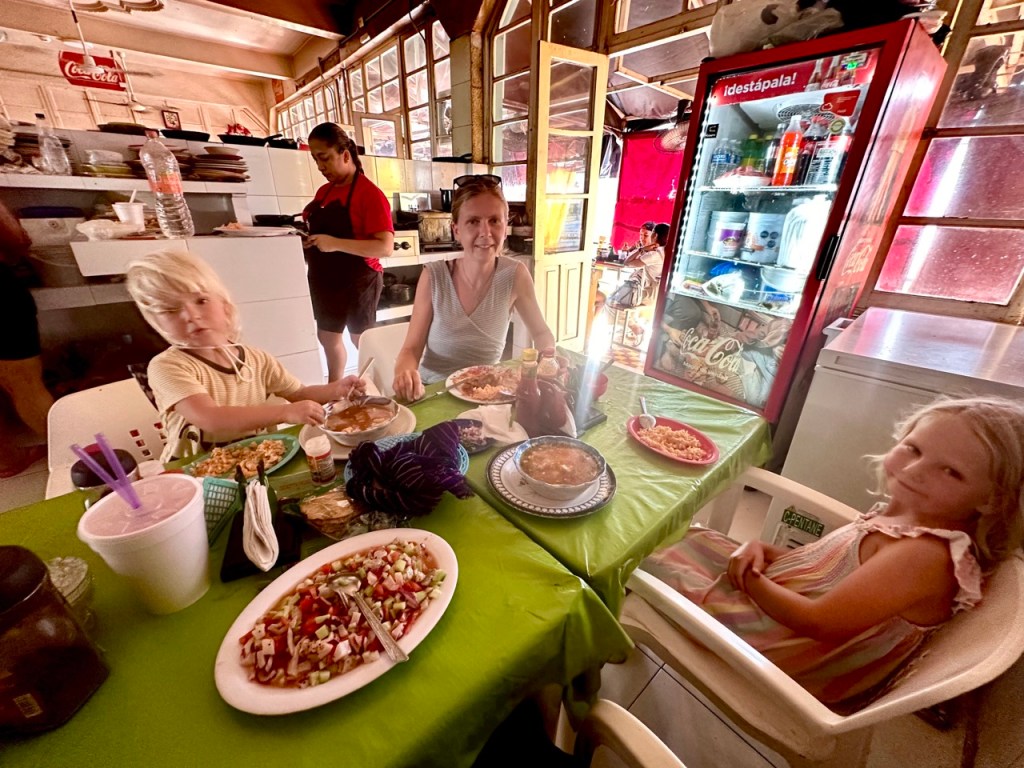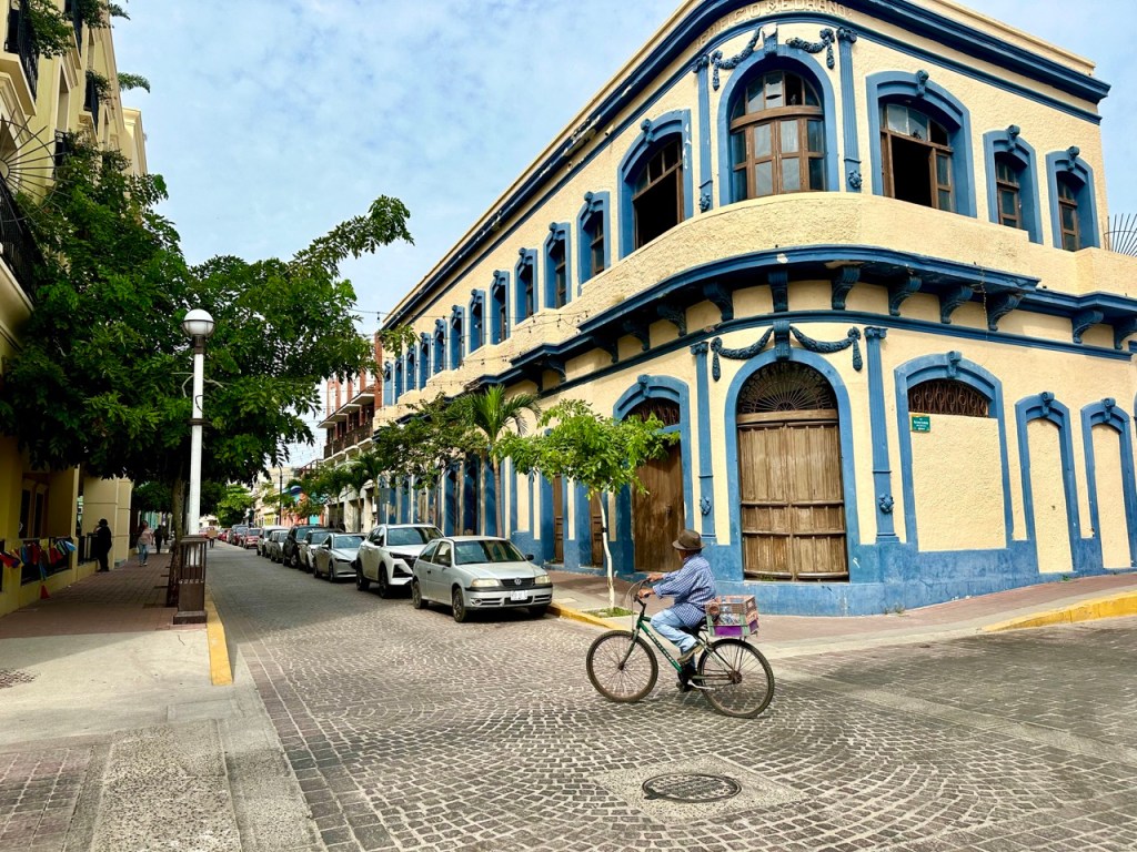 Přistáváme v městečku Mazatlán, kde je pro změnu zhruba 35 stupňů a vlhkost vzduchu taková, že by se dal rovnou pít. My jsme nicméně spokojení. Za odměnu se uchylujeme do jednoho z mnoha hotýlků, kterým je městečko Mazatlán poseto a jsme rádi, že nás podobný zážitek na dlouhou dobu nečeká. Dopoledne se poflakujeme po městě a shledáváme, že je to tu skutečně mnohem mexičtější než na Baja. V nonšalantně zpustlých koloniálních ulicích líně polehávají kočky, hlavní náměstí je poseto stánky s pochoutkami všeho druhu a konečně narážíme na normální trh plný ovoce, zeleniny a vůbec všeho.
