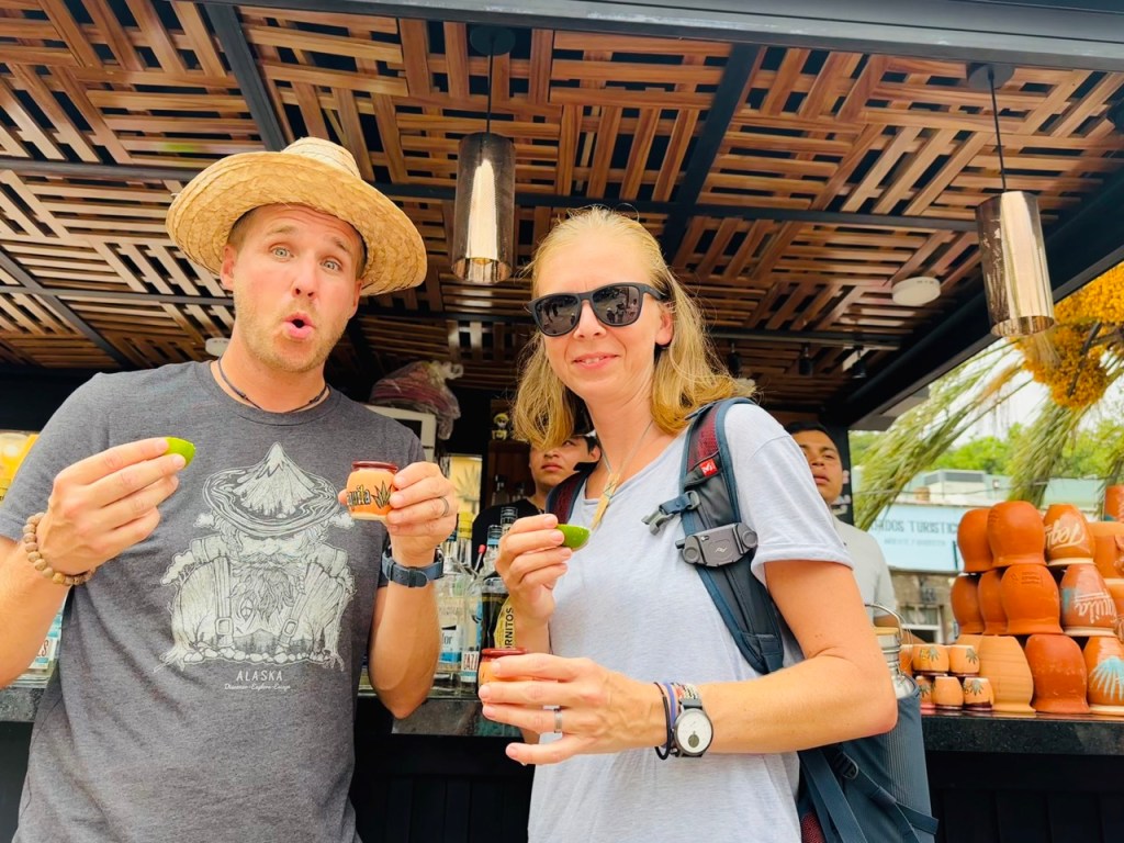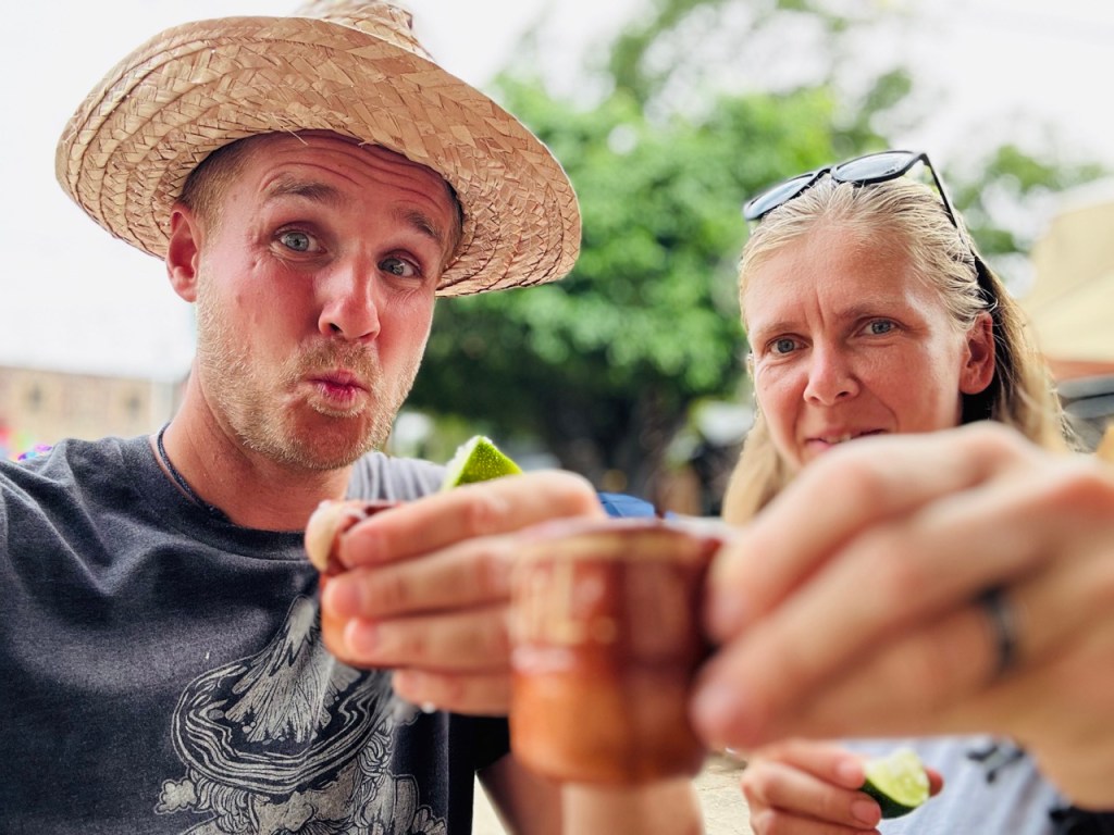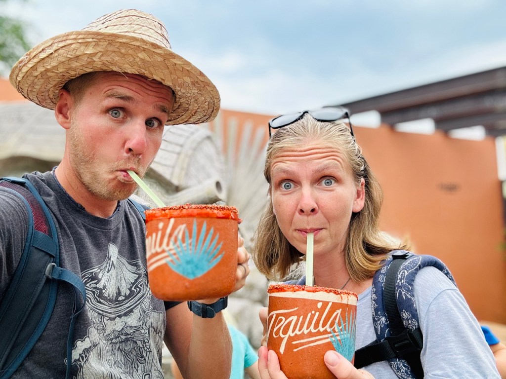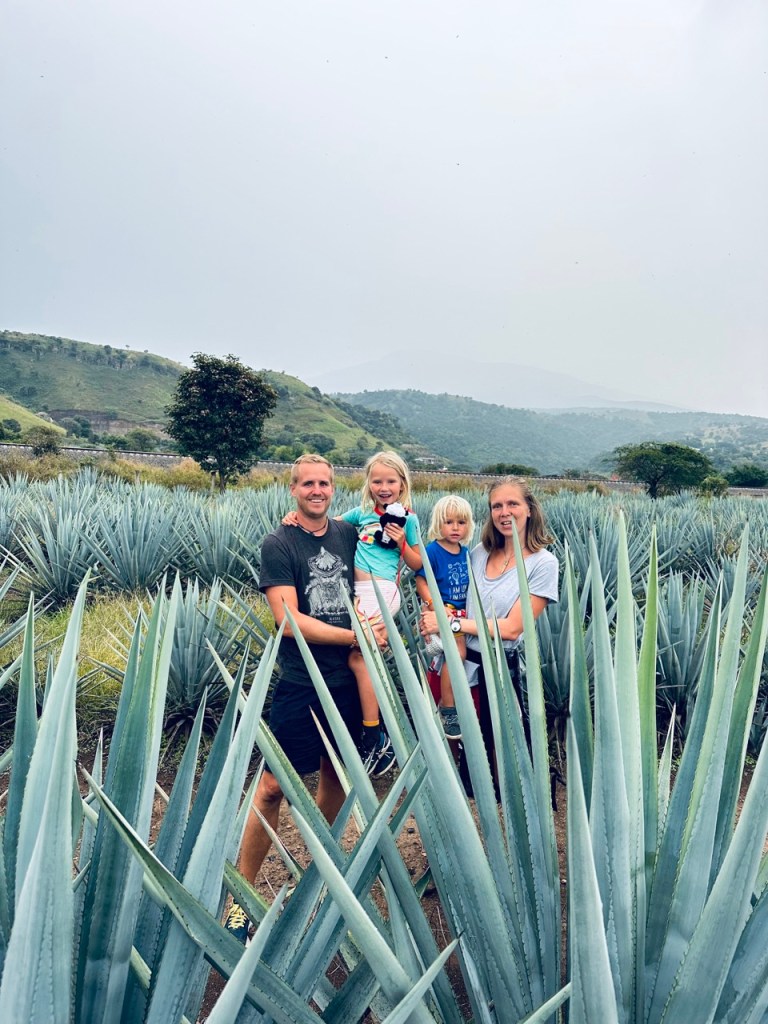 Skoro jako za mlada vyrážíme hned po obědě na tah městem, kde vám Tequilu nabízejí doslova na každém rohu, místní nás lákají na Tequila tours s deseti, patnácti nebo i dvaceti panáky v ceně a zdá se, že tato nabídka se neomezuje jen na dospělé. Městem se potácejí rozjařené skupinky Mexičanů na tahu, v ruce svírající obří koktejly, na hlavě bizardní čepice a klobouky všech možných tvarů a po silnicích se prohánějí autobusy ve tvaru chilli papriček, soudků s Tequilou nebo citrónu. Zprvu jsme z tohoto alkoholického ráje trochu nesví, ale to spraví hned první panáček Tequily. Hned nám to vše začíná připadat mnohem zábavnější a po druhém už také začínáme pokukovat po nějakém zábavném sombréru. Děti baví, jak jsou rodiče vtipní a především poddajní a když jim skoro bez reptání v rychlém sledu pořizujeme chodícího plyšového pandu, prehistorický tetris a dvě dřevěná autíčka, začínají mít o nás trochu strach. Ještě chvíli se motáme po městě, v rukou nám jakýmsi nedopatřením přistává jeden z těch obřích koktejlů (prodávají se totiž v takových pěkným hliněných škopcích a nás ovládne neodbytná potřeba si je z Tequily odvézt jako suvenýr). Pak už nás ale děti odvádějí k zaparkovanému autu a my přejíždíme na agávovou plantáž (jak jinak), přičemž shledávám, že s krajáčem Tequily se hrozně blbě řídí. Na večer se s místním plantážníkem Josém domlouváme na návštěvě agávových polí.