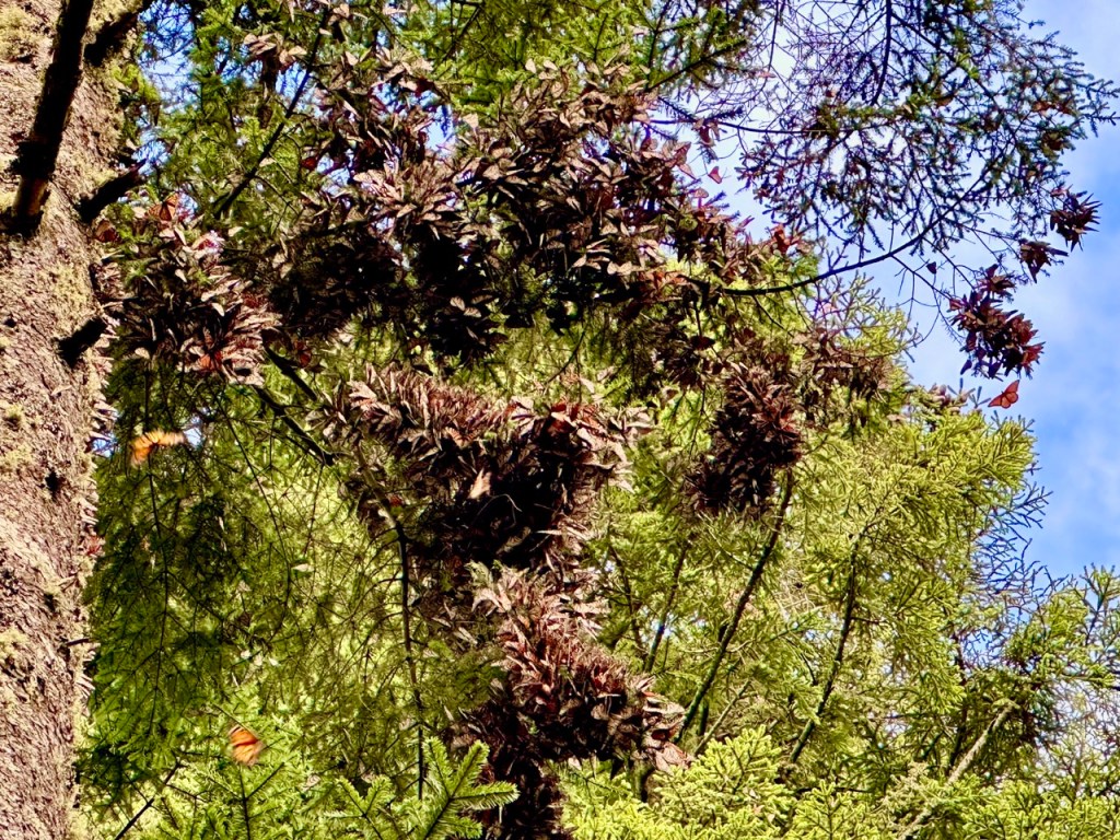 Než je ale najdeme trvá nám to dva dny. Jako Indiana Jones projíždíme horská údolí, prodíráme se horskými mlžnými pralesy a část absolvujeme na koni. Nakonec ale nalezneme to správné obří parkoviště, dvoukilometrovou uličku plnou stánků se suvenýry a nakonec i motýly. Ale stojí to za to. A to i přesto, že jich letos údajně přilétlo ještě méně než loni. Paradoxně nás tak dohání kanadské lesní požáry, ve kterých pravděpodobně hodně z těchto krásných tvorů uhořelo.