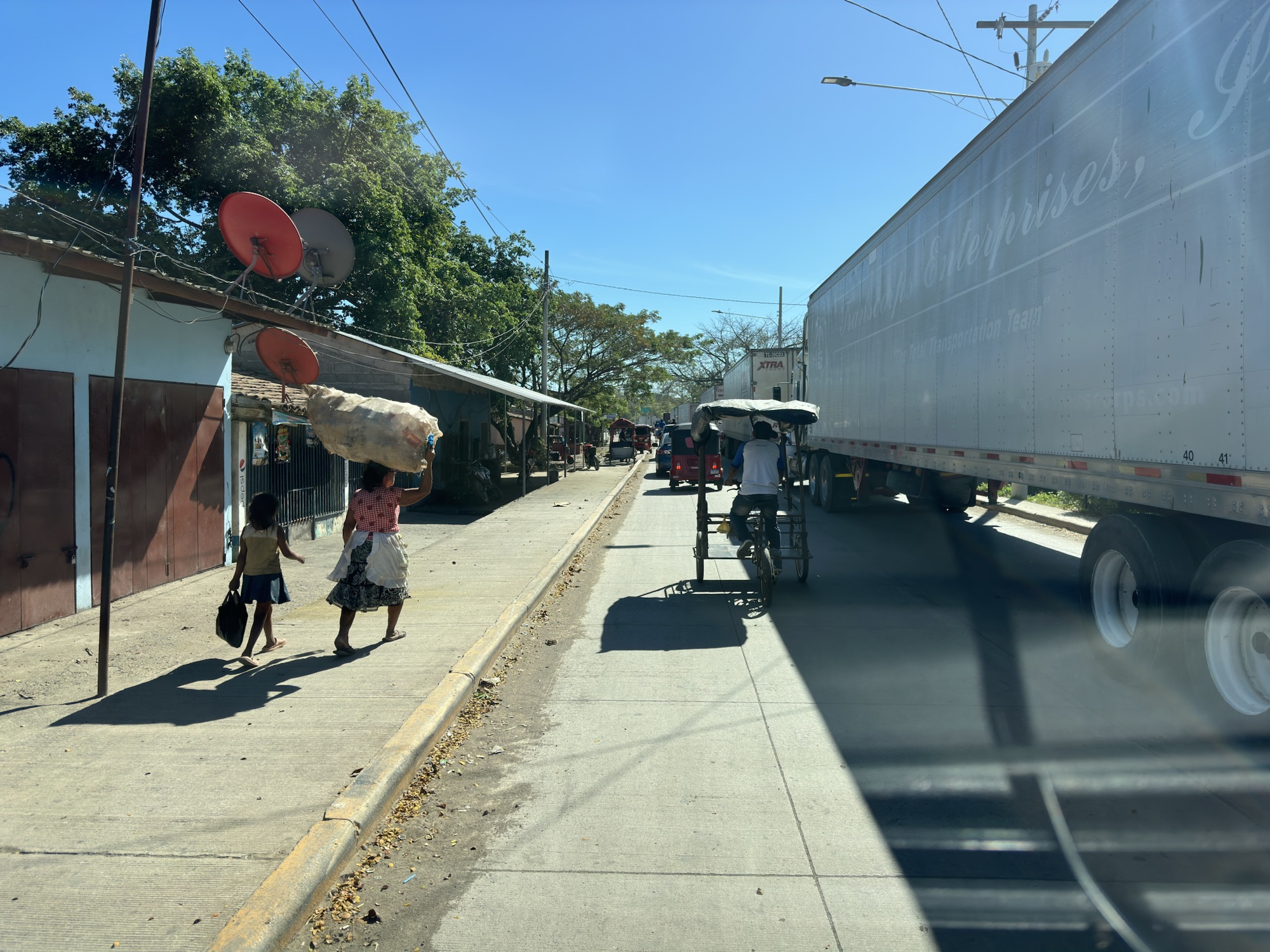 Následující den nás čeká zase další hranice. Začíná to být celkem rutina, jakkoliv jde o kratochvíli, kterou jsme si zatím neoblíbili, o dětech ani nemluvě. Přejezd hranice mezi Hondurasem a Nikaraguou se stane také naším historicky nejdelším. Po té, co drobně zaváhám při odpovědi na otázku jaké je moje povolání (na což není ostatně úplně jednoduchá odpověď) pozve si mě přičinlivý pohraničník do své (naštěstí vychlazené) kanceláře, kde mě dvě hodiny mučí u výslechu. Odpověděl jsem totiž (a popravdě), že jsem úředník, což se mu evidentně nezdálo (snad za to mohlo to tričko s jednorožcem) a tak si mě prolustroval na internetu, aby ke svému evidentnímu zděšení zjistil, že jsem léta pracoval “pro Evropskou Unii”. Ani nejvěrnějšího voliče SPD by nepřemohla větší hrůza. Totiž, Nikaragujský režim v čele s prezidentem Ortegou, který je tak trochu tyran a diktátor nemá s Evropskou unií příliš dobré vztahy a tak jsem asi i já “ten co pracoval v Evropské unii” potřeboval náležité přivítání.