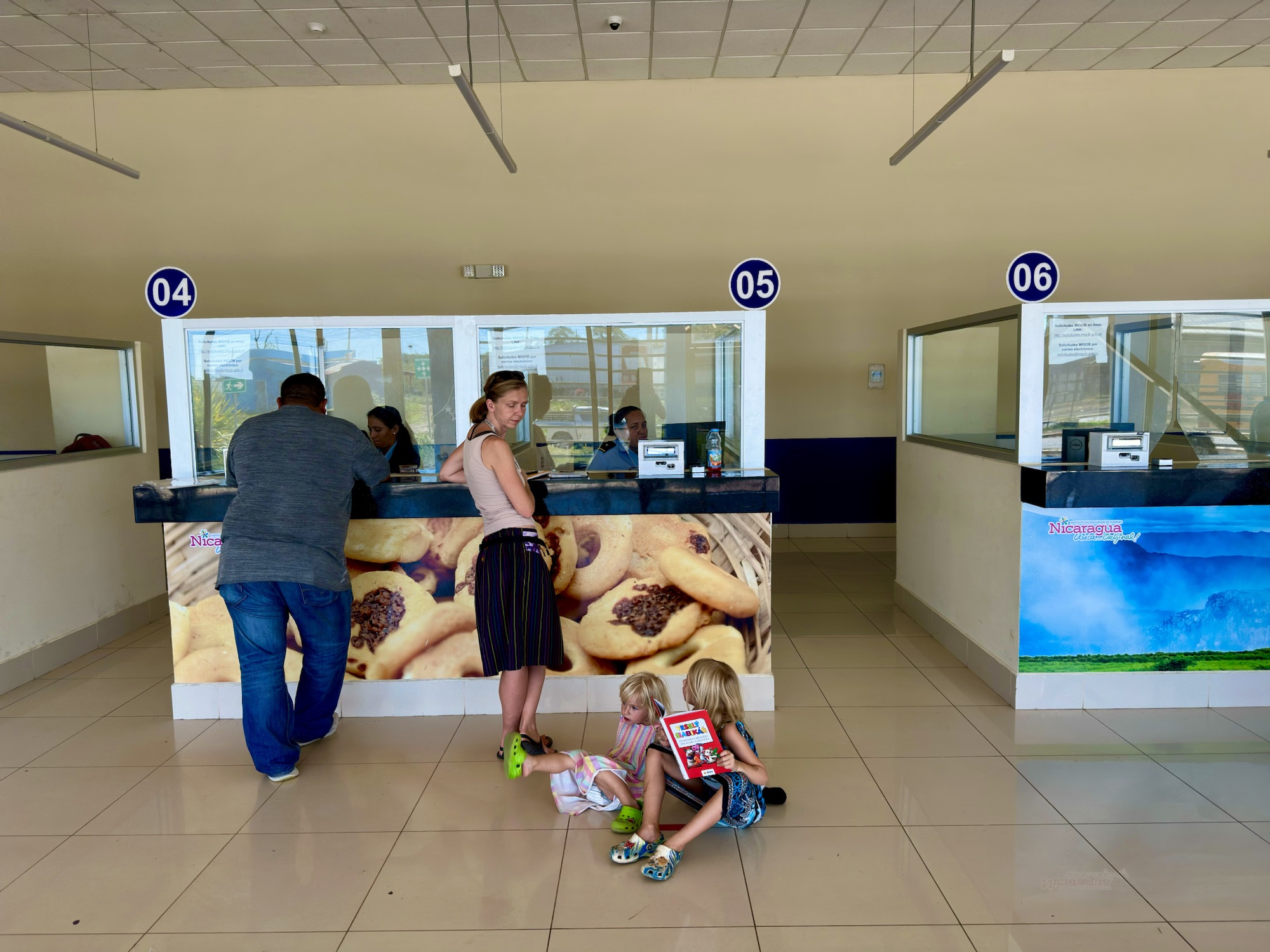 Komunikovali jsme převážně pomocí překladače Google v telefonu onoho aparátníka a občas docházelo k zábavným přeřeknutím našeho virtuálního tlumočníka. Třeba když se mě telefon zeptal, zda jsem v Evropské unii pracoval jako stůl a nebo jako tužka. Opět jsem bohužel zaváhal s odpovědí neb jsem se nesmyslně, avšak poctivě, nad vznesenou otázkou zamyslel. A chtěl jsem odpovědět, že jako židle. V jedem okamžik jsem měl zase dojem, že mě označil na šarlatána, proti čemu jsem se samozřejmě ohradil, aby pak vyšlo najevo, že si jen zcela mimo kontext vzpomněl na to, že viděl český film stejného jména. O dvě hodiny později jsme nicméně byli do Nikaragui vpuštěni (asi už je unavovalo běsnění našich unavených dětí v odbavovací hale – ta totiž klimatizovaná nebyla) a já si hlasitě oddechl. V Nikaragui míříme nejdříve do jednoho menšího bazénu, neb si to po tom grilování na hranicích (u mě obrazně, u dětí a Kiky doslovně) zasloužíme. Jde zde také zdarma na parkovišti přenocovat a tak se nám to jeví jako strategicky výhodná zastávka.