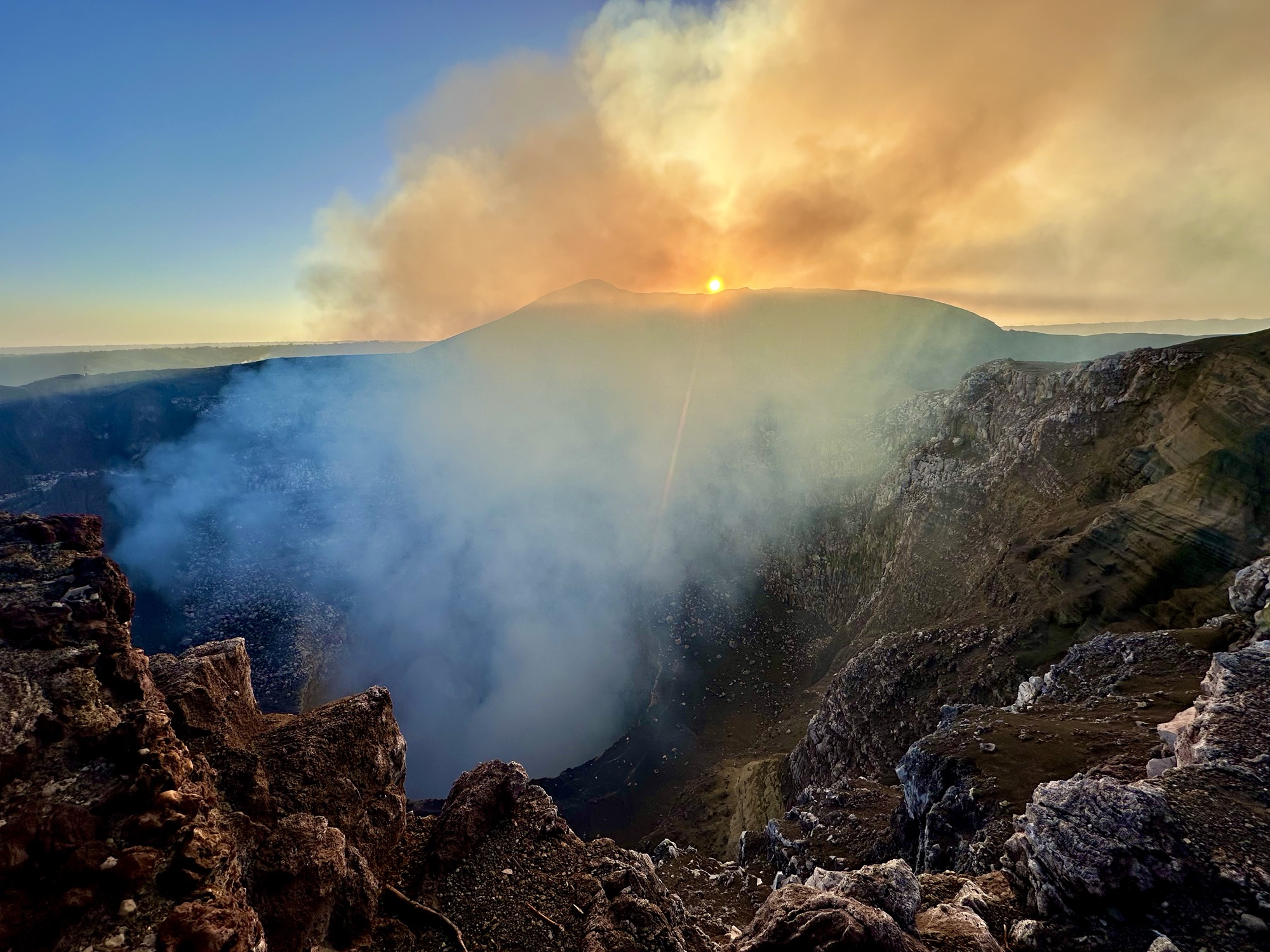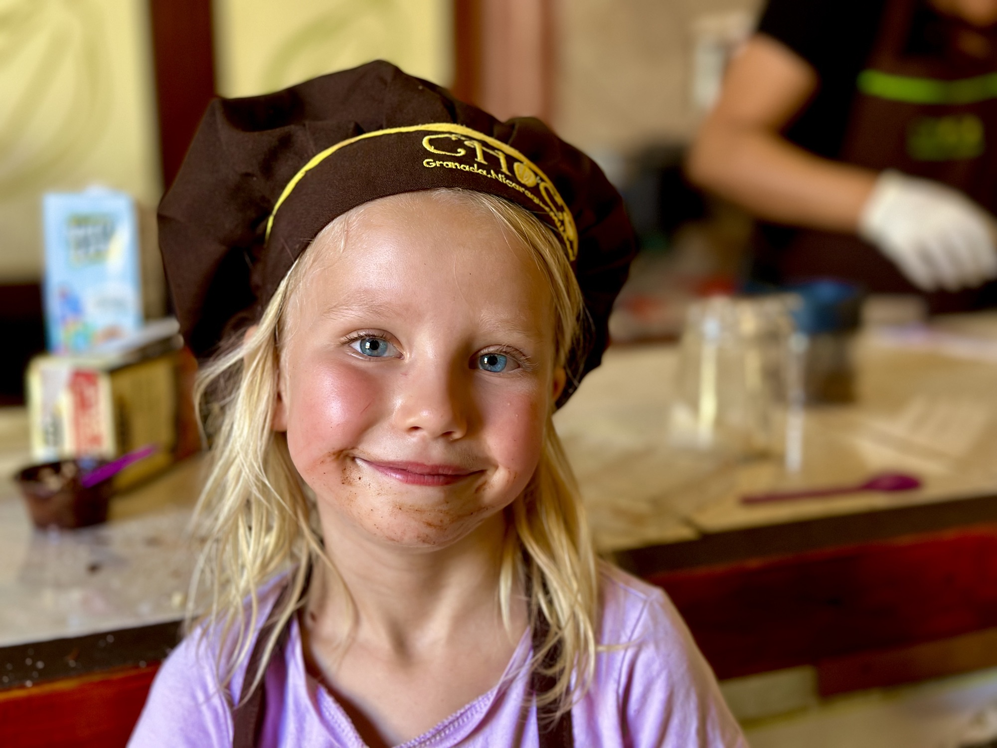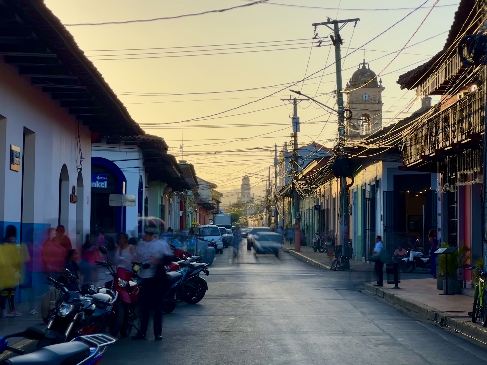 Pro projíždějícího cestovatele je to však destinace přívětivá a to nejen díky překvapivě dobrému stavu místních silnic. Je tu levně, příjemně tropicky, jídlo ucházející (člověka překvapí jak je kuchyně celé střední Ameriky, například v porovnání s Mexikem, nudná – rýže, fazole, juka a kuře, občas kolečko okurky) a lidé přívětiví. Krom revolučního Leonu navštěvujeme také koloniální Granadu, kde jsme se s Kiki už před mnoha lety také mihli a shledáme, že se tu nic moc nového za tu dobu neudálo. Zajdeme také na workshop výroby čokolády, který si Emma dlouho přála. Blažený výraz na její i Vilíkově čokoládou umazané tváři svědčí o tom, že to stálo za to. Cestou do Granady se také zastavujeme u sopky Masaya, kterážto umožňuje v podstatě přímo z parkoviště nahlédnout do svého rozžhaveného chřtánu. Výšlap na přilehlý vyhaslý sopouch na parádní západ slunce a následné čučení do bublající lávové polévky nás baví všechny. Vilík by si rád opekl maršmelouny, Emma vymýšlí jak na to. Nemá však bohužel dost špejlí, které by mohla pospojovat v jeden obří opékací klacík.