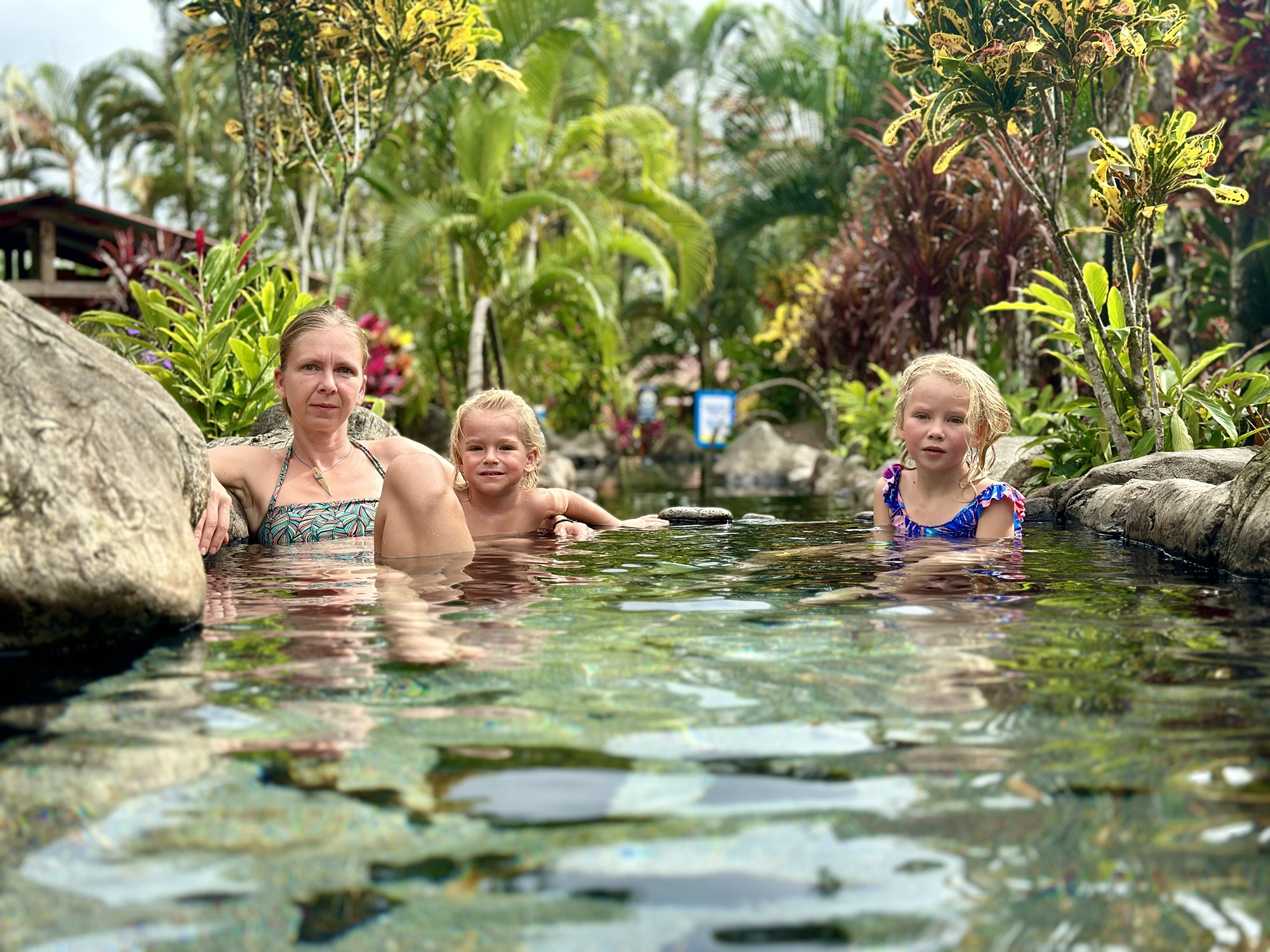 Na Kostariku, Švýcarsko latinské Ameriky, jak je jí přezdíváno, tak máme bohužel o něco méně času než jsme plánovali. Je tu ale, stejně jako ve Švýcarsku docela draho, a tak alespoň ušetříme rodinný rozpočet. Kostarika je velmi turistická, především Němci a Holanďany se to tu jen hemží. My se nakonec rozhodujeme, že zajedeme k sopce Arenal, kde jsme s Kris před těmi dávnými časy také byli a kde se nám líbilo. Jeden celý den trávíme výletem v národním parku okolo sopky (která se před námi bohužel většinou skrývá v oblačném závoji, takže si neužijeme pohled na aktivní vulkán) a druhý v horkých pramenech na jejím úpatí. Různých malých lázeňských rezortů je tu spousta, my vybíráme ten, kde lze i za rozumný peníz přenocovat. Ráno tak do vody skáčeme jako první a vyžene nás až noční hlídač. Důkladně smíváme prach z cest – takhle řádně odmočení už jsme tedy dlouho nebyli.