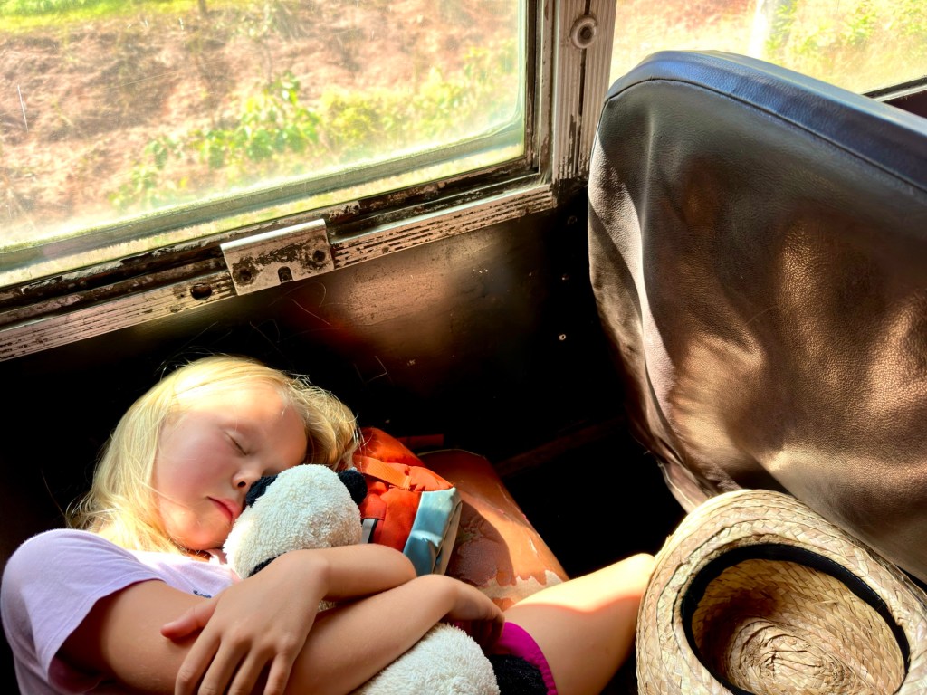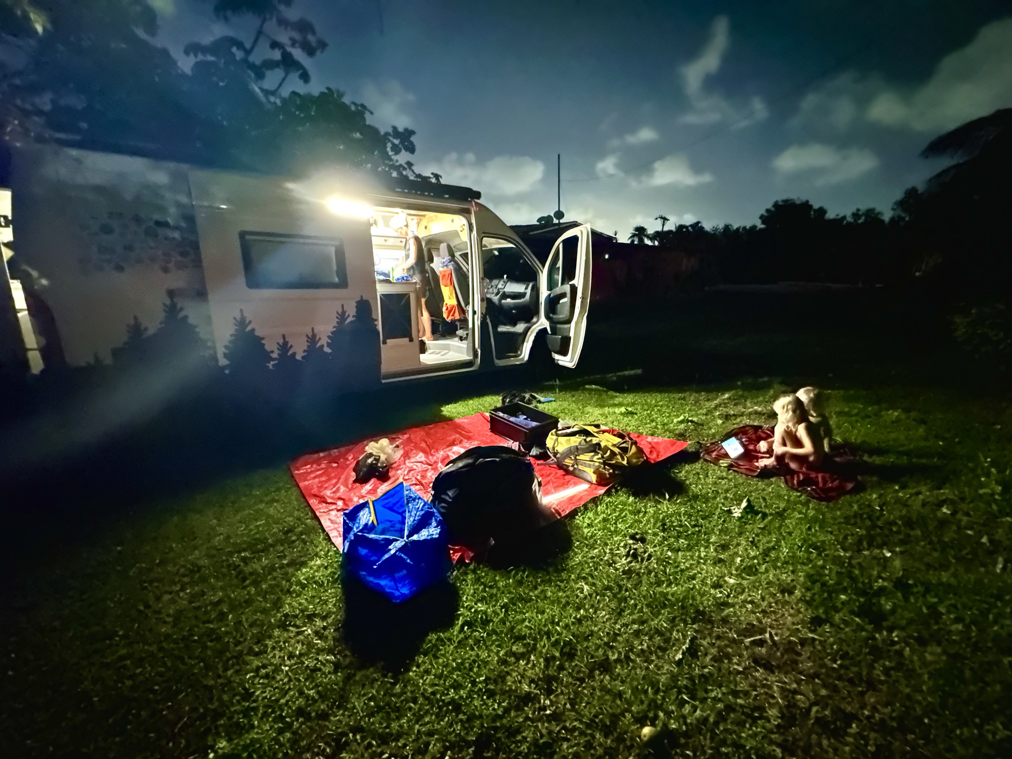 Pořizujeme dva velké cestovní vaky – které seženeme (divte se) v místním Decathlonu (celkem sentimentální shledání) a po osmi měsících na cestě zase balíme. Sbalit se na skoro dva měsíce do dvou tašek, se jeví takřka stejně nemožné jako když jsme v květnu redukovali naše živobytí do 3,5 metrů čtverečních naší dodávky. Děti opět procházejí nelehkou volbou ohledně plyšáků a hraček, které si mohou vzít s sebou. Zdánlivě konstruktivní návrh Emmy, že si tedy nebude brát slabikář, když máme tak málo místa, je zamítnut. Nestíháme, vše balíme pozdě do noci. Na druhý den se potřebujeme přesunout do malého domku u moře, který jsme si na následující dva týdny pronajali a já pak musím odvézt auto do přístavu. Je s podivem, jak moc málo toho vlastně nakonec potřebujeme. Ze 150 metrového bytu jsme přeskočili do dodávky a nyní, zdá se, si vlastně vystačíme jen s dvěma kufry a baťůžkem.