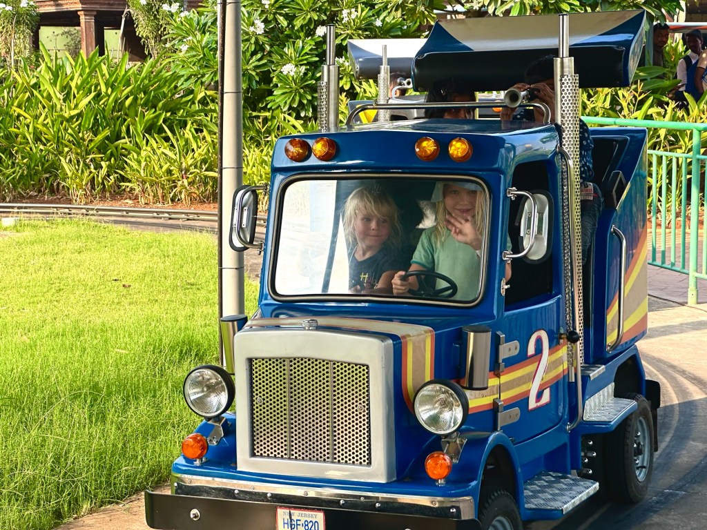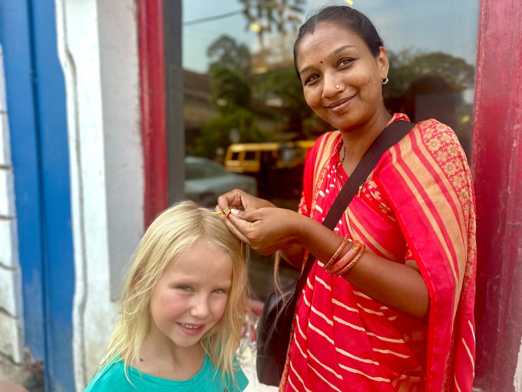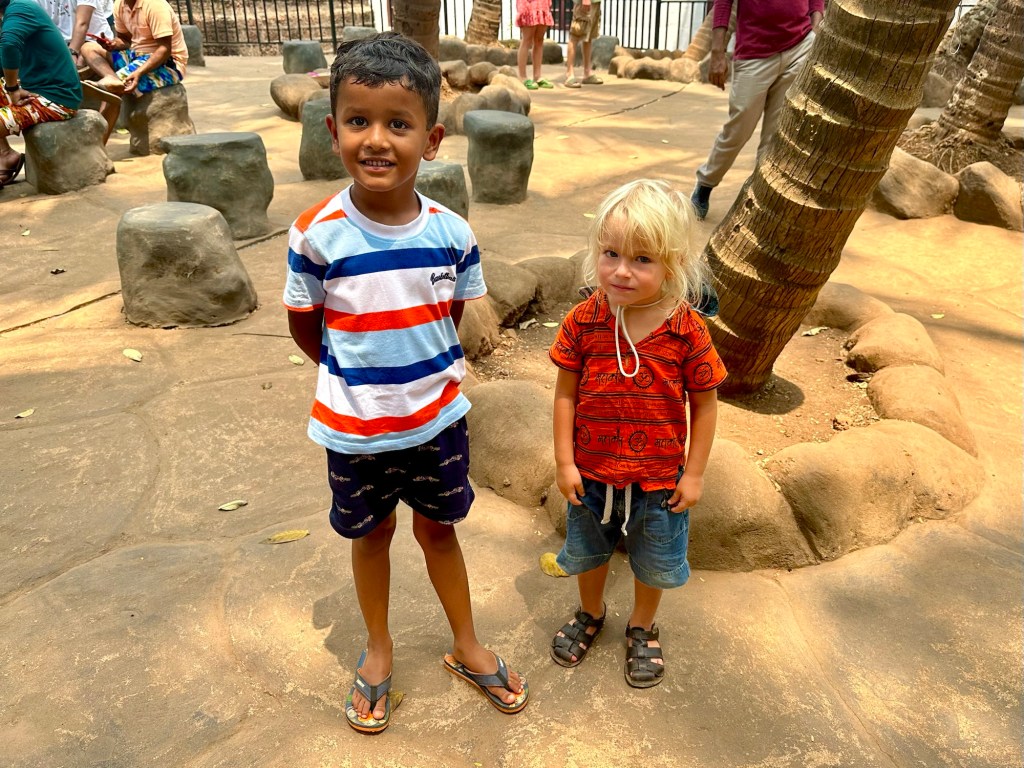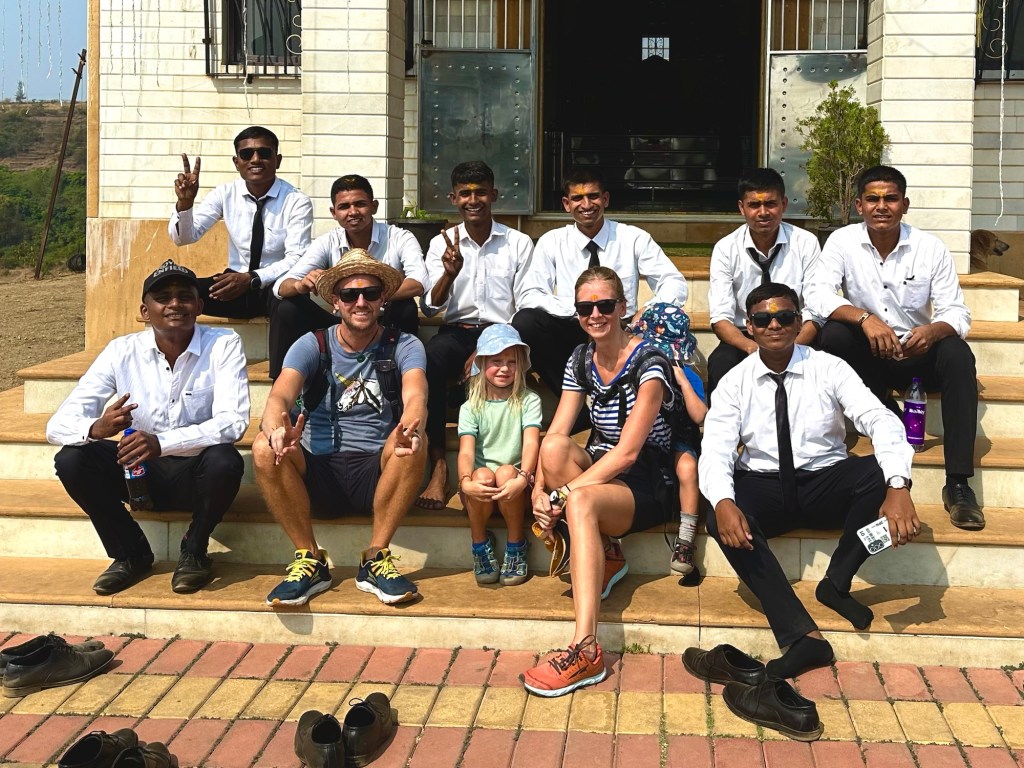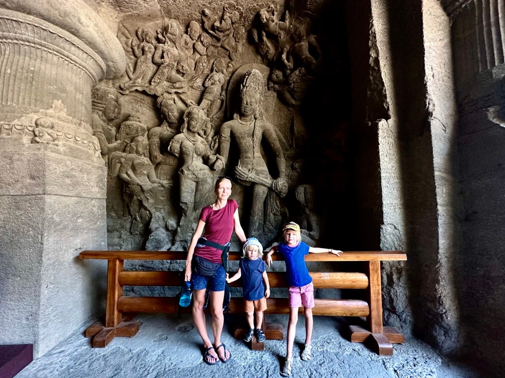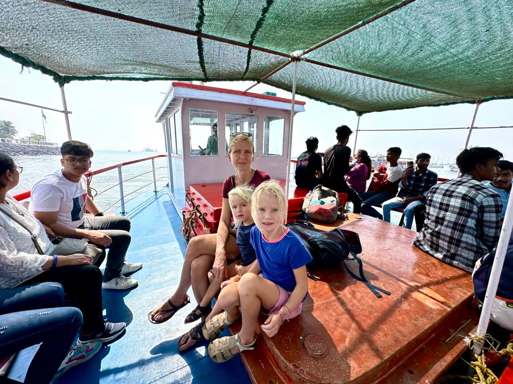My v Bombaji strávíme tři dny, které krom zařizování nutné a nekonečné byrokracie okolo příjezdu a proclení našeho auta zasvětíme také návštěvou některých z místních pamětihodností. Jako většina ostatních smrtelníků si prohlídneme slavný hotel Taj jen z venku, zajedeme si lodičkou na sloní ostrov (Elephanta Island) v bombajském zálivu, kde se nachází impozantní jeskyní hinduistické chrámy a od rána do večera se cpeme fantastickým indickým jídlem (děti jsou z něj nadšení o něco méně, neb i to nepálivé je hrozně pálí – a to včetně rajčatové polévky nebo toustu s jahodovou marmeládou). Jinak se ale oběma dětem v Indii moc líbí. Všechno je hrozně barevné a hlasité, po ulicích se toulají roztomilé krávy a ještě roztomilejší smečky divokých psů, pořád od někoho něco dostávají (se svými blonďatými hlavičkami tu jsou neskutečnou atrakcí) a během pár dní jsou na více fotografiích v cizích telefonech než v těch našich.