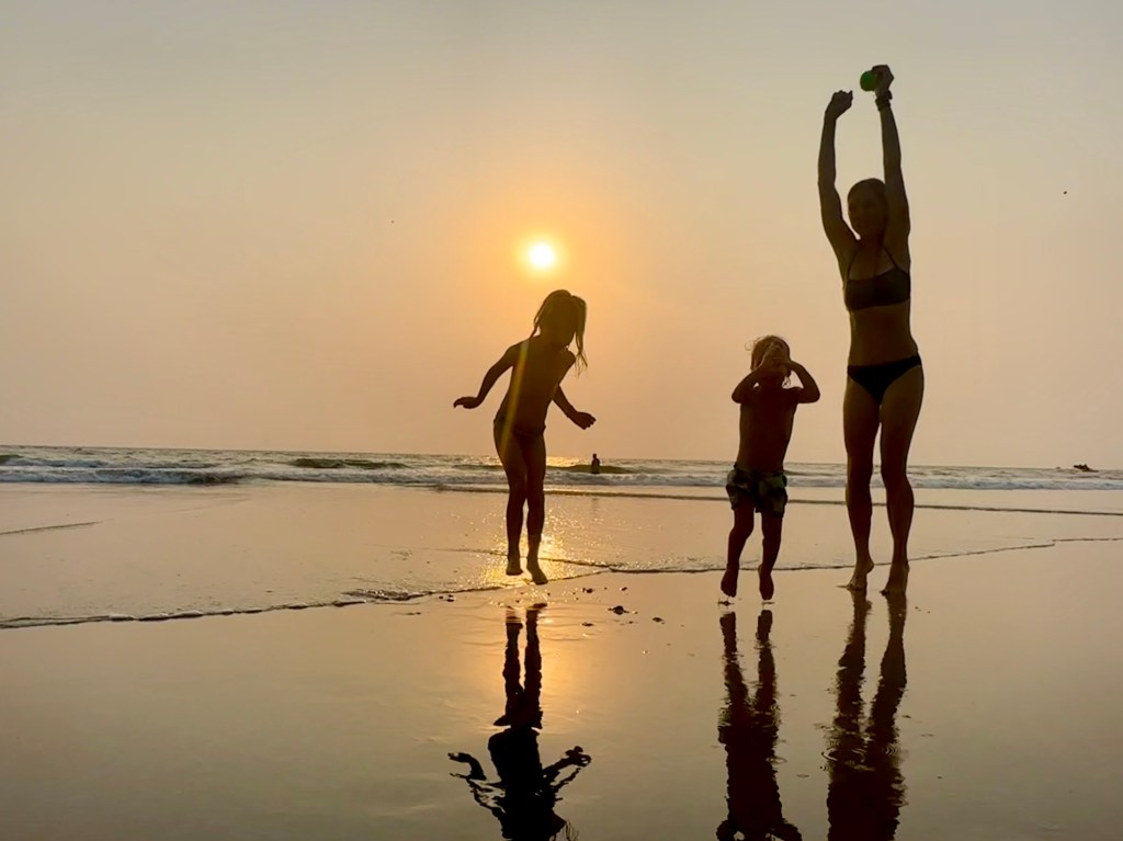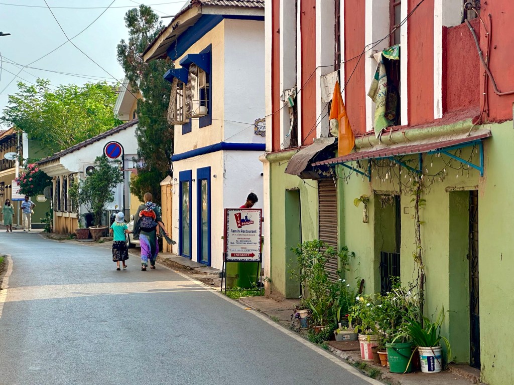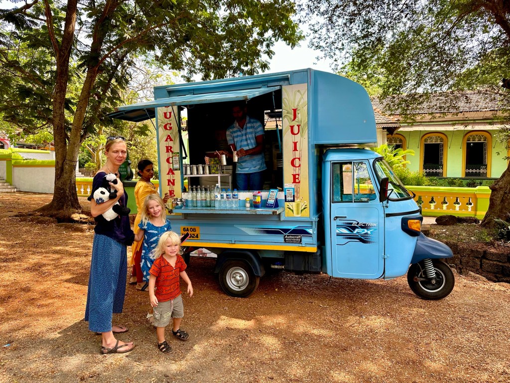 V Goa strávíme příjemné dva týdny v pronajatém bytě kousek od benaulimské pláže. Celá Goa, původně portugalská kolonie, je již od šedesátých let oblíbeným letoviskem pro hipíky a zatracence všeho druhu (jimiž jsou v současné geopolitické situaci, zdá se, především Rusové). Umí se tu proto o cizince postarat a tak tu k naší radosti (krom mnoha obchůdků s batikovanými oblečky všeho druhu, které evidentně stále frčí) narážíme také na německou pekárnu, kde si po dlouhé době kupujeme žitný chléb a obchod, kde mají sýry, které chutnají, jak sýr. Každý den vyrážíme na nedalekou pláž, která je pro změnu poseta malými bary, kde si necháváme namíchávat různobarevné koktejly, děti se vrtají v písku a my jen tak necháváme plynout čas. Když už máme pocit, že se toho na náš vkus děje přeci jen málo, půjčujeme si na dva dny auto a vyrážíme prozkoumat okolí – v Goa toho po Portugalcích celkem dost zbylo, ale jelikož jde povětšinou o křesťanské kostely, není pro to v Indii už příliš využití. Převážně indičtí turisté je však se zájmem navštěvují, podivují se, proč je jejich jedinou výzdobou (a nutno říct značně ponurou) jakýsi chlápek přibitý na kříž a marně hledají své mnohem zábavnější božstva, v čele s rozpustilým Ganéšou (věděli jste, že v Hinduismu mají prý přes 33 milionů bohů?).