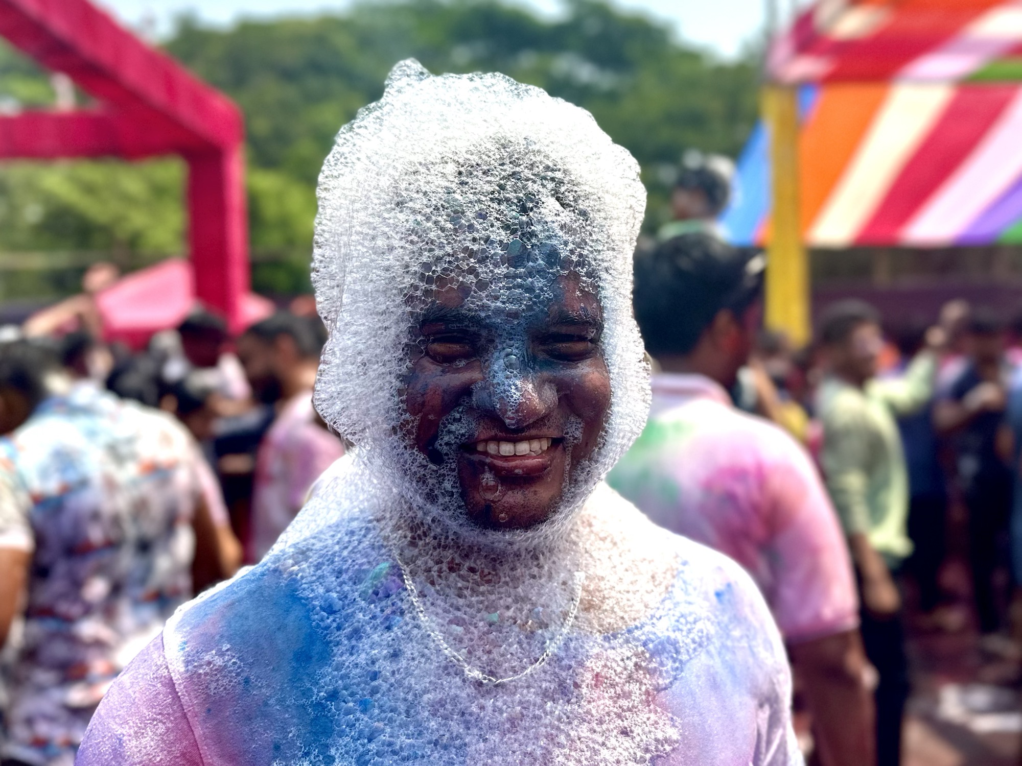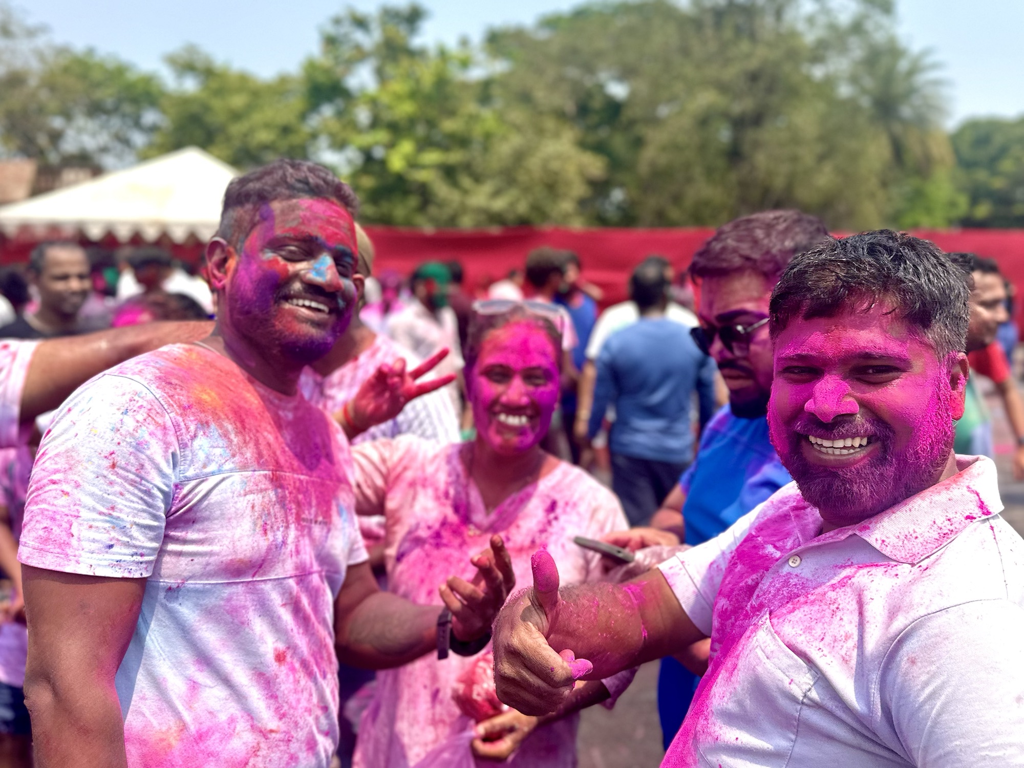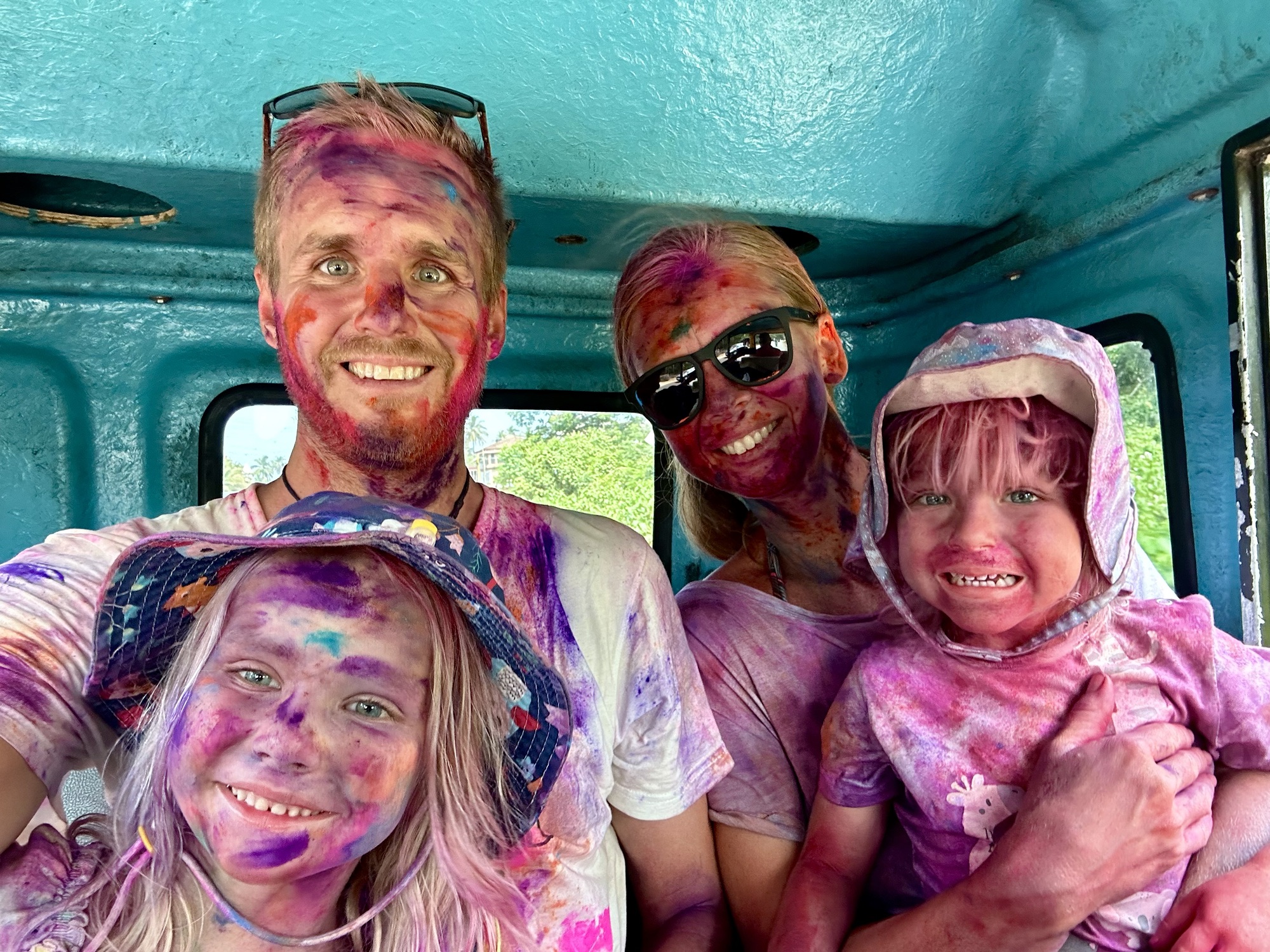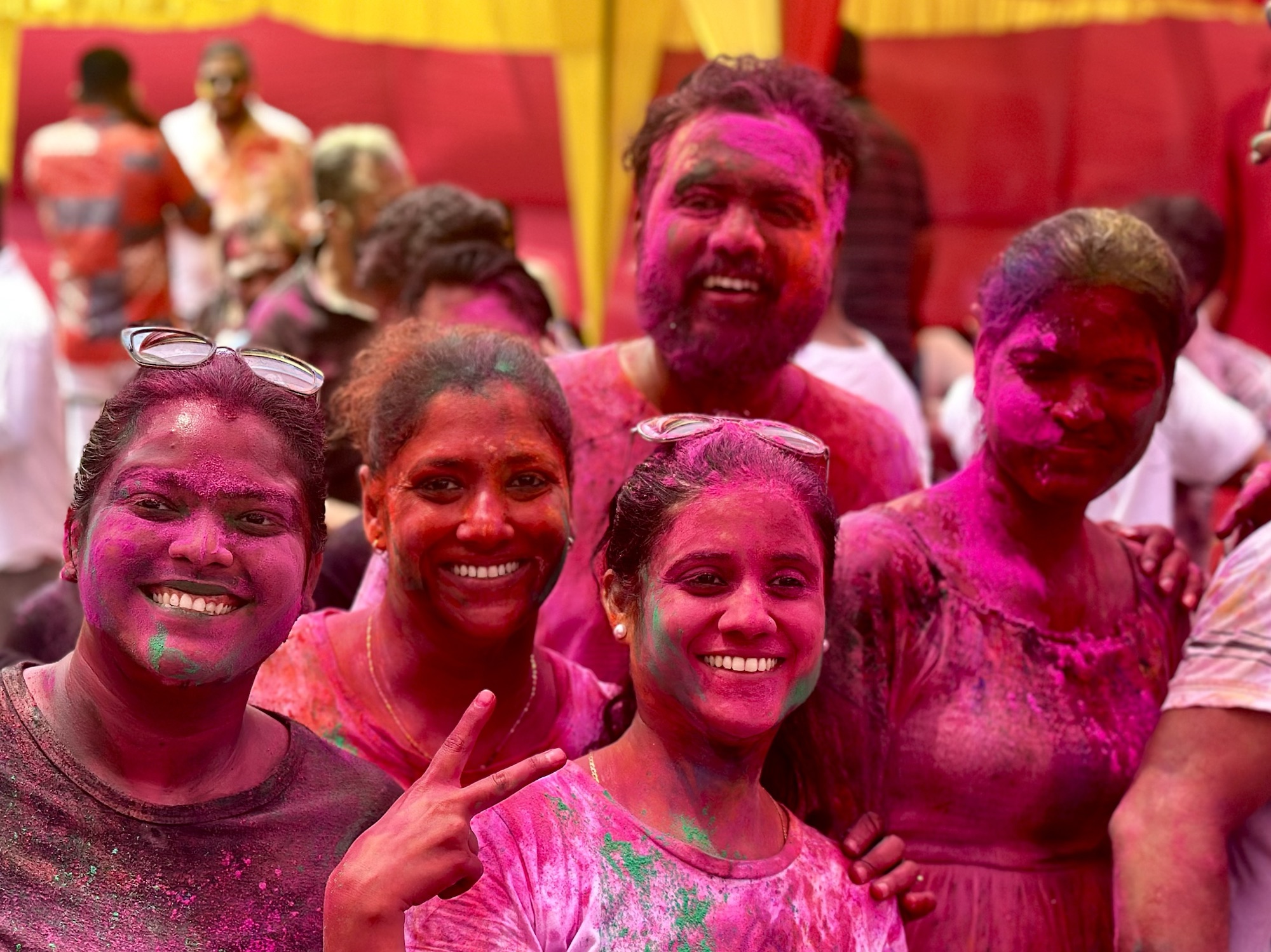 Necháme se také zlákat nabídkou našeho pana domácího a s jeho asistencí vyrážíme oslavit jeden z největších indických svátků – svátek barev Holi (oslavující příchod jara, takové naše Čarodějnice). A je to hodně bláznivá podívaná. V uzavřeném komplexu je namačkáno asi tisíc lidí, kteří posilněni alkoholem neúnavně tancují na zběsilou indickou disko hudbu, hází a mažou po sobě barevnými prášky, kterých mají plné kapsy a nechávají se smáčet z vodního děla s bublinkami. Jako u většiny jiných podobných zábav je zde více mužů než žen. Pro našince je to pořád zvláštní podívaná, vidět skupinky mladých Indů, jak spolu tančí, objímají se a cákají po sobě vodou a bublinama. Jelikož jde o čistě indickou kratochvíli, naše blonďaté hlavičky rychle vzbudí mnoho pozornosti. Náš pan domácí má samozřejmě potřebu se o nás patřičně postarat, takže nás pořád postrkuje, ať jdeme tančit, ať se jdeme napít a vůbec ať jsme nejvíc nejveselejší. Je také náležitě hrdý, že má s sebou takovou významnou atrakci, tedy chci říct návštěvu. Jako vždy se s námi chtějí všichni fotit, náš průvodce je ale odhání, respektive ne každému to dovolí. Máme podezření, že za to bokem vybírá nějaký poplatek. Možná ve formě piva, které pije rychlostí, za kterou by se nemusel stydět ani kdejaký Pepík z Horní Dolní. A jelikož je Holi jeden z mála svátků, kdy mají Indové pití alkoholu povoleno, netrvá to dlouho a náš hostitel (k naší radosti) již nezvládá plnit své průvodcovské povinnosti a ztrácí se někde mezi skákacím hradem a pupkem vesmíru. Když se po dvou hodinách znovu probere, zrovna v okamžiku, kdy se chystáme odejít, trvá na tom, že nás těch 15 kilometrů zpět domů musí odvézt. Námitky, že se všichni na jeho motorku nevejdeme nepřijímá, stejně jako fakt, že je stále zlitej jak slíva. Zdvořile proto raději bereme nohy na ramena a než se jeho zastřené oči rozkoukají, skáčeme do tuk tuku a zamazaní od barev od hlavy až k patě ujíždíme pryč.