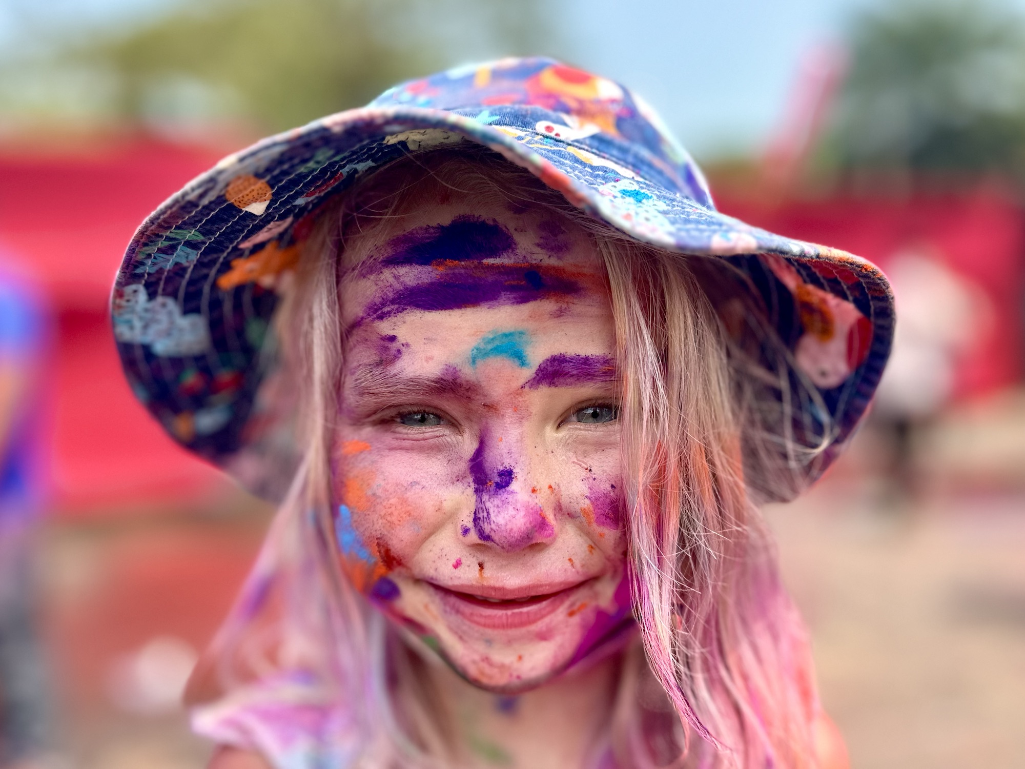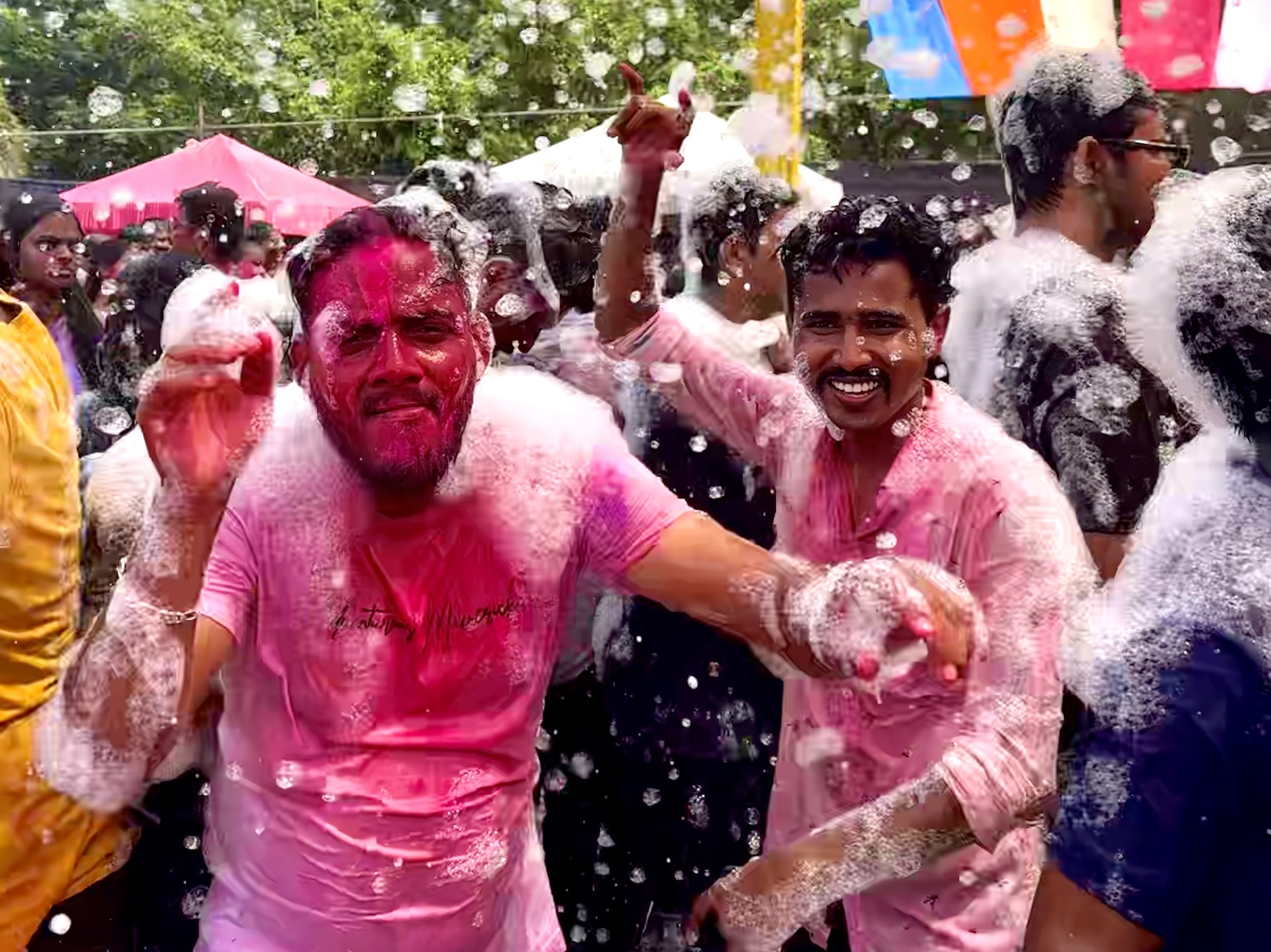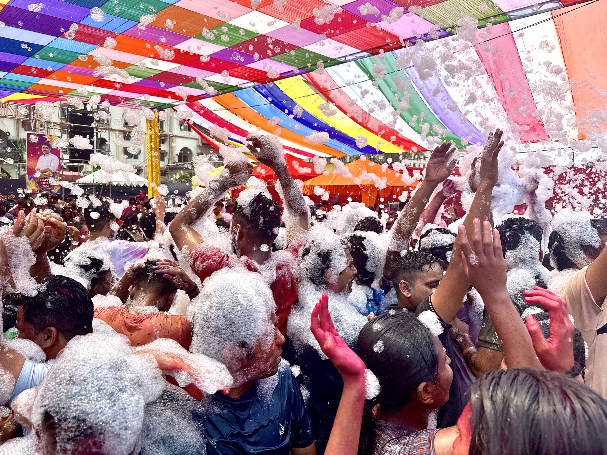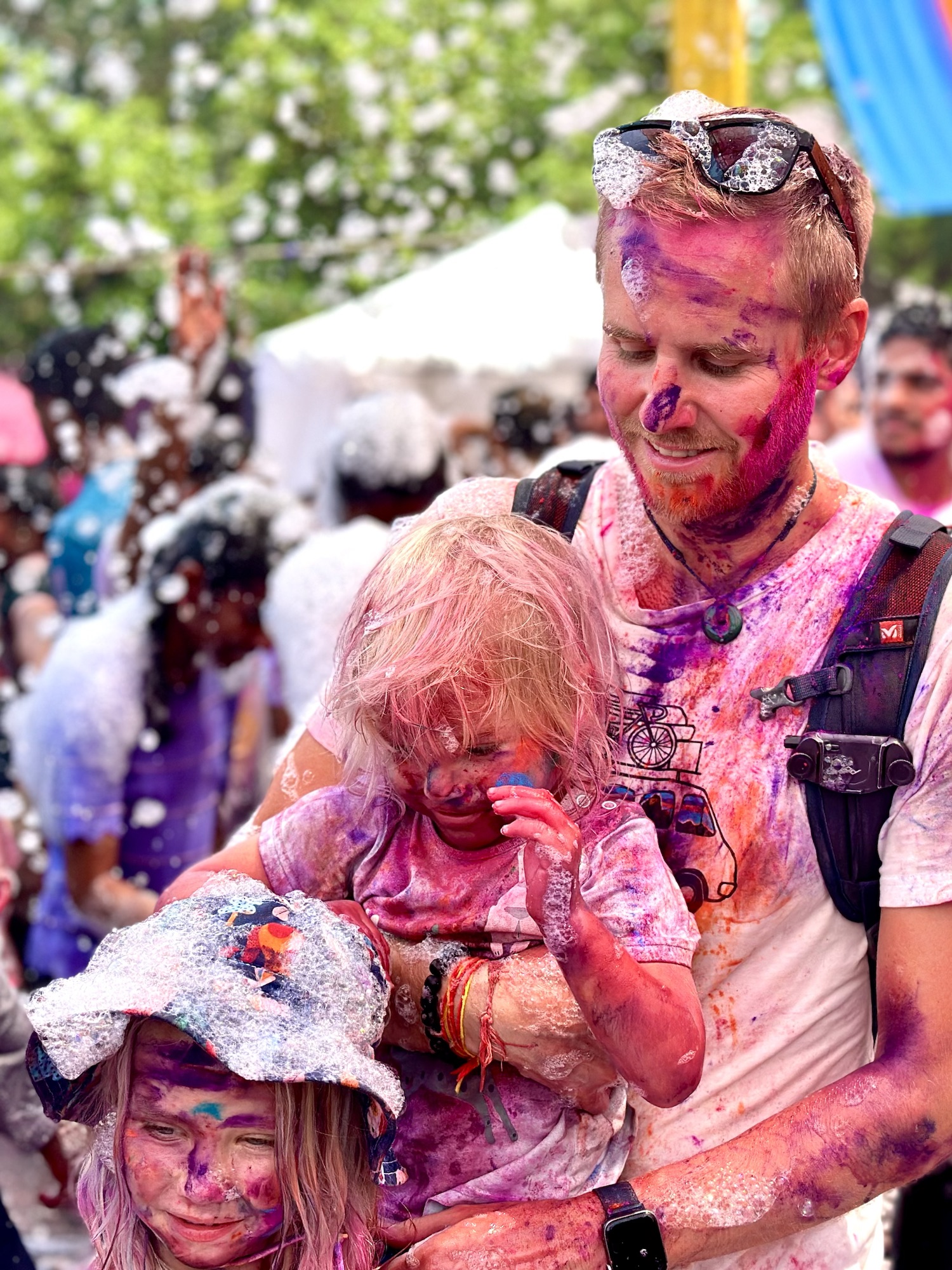 Necháme se také zlákat nabídkou našeho pana domácího a s jeho asistencí vyrážíme oslavit jeden z největších indických svátků – svátek barev Holi (oslavující příchod jara, takové naše Čarodějnice). A je to hodně bláznivá podívaná. V uzavřeném komplexu je namačkáno asi tisíc lidí, kteří posilněni alkoholem neúnavně tancují na zběsilou indickou disko hudbu, hází a mažou po sobě barevnými prášky, kterých mají plné kapsy a nechávají se smáčet z vodního děla s bublinkami. Jako u většiny jiných podobných zábav je zde více mužů než žen. Pro našince je to pořád zvláštní podívaná, vidět skupinky mladých Indů, jak spolu tančí, objímají se a cákají po sobě vodou a bublinama. Jelikož jde o čistě indickou kratochvíli, naše blonďaté hlavičky rychle vzbudí mnoho pozornosti. Náš pan domácí má samozřejmě potřebu se o nás patřičně postarat, takže nás pořád postrkuje, ať jdeme tančit, ať se jdeme napít a vůbec ať jsme nejvíc nejveselejší. Je také náležitě hrdý, že má s sebou takovou významnou atrakci, tedy chci říct návštěvu. Jako vždy se s námi chtějí všichni fotit, náš průvodce je ale odhání, respektive ne každému to dovolí. Máme podezření, že za to bokem vybírá nějaký poplatek. Možná ve formě piva, které pije rychlostí, za kterou by se nemusel stydět ani kdejaký Pepík z Horní Dolní. A jelikož je Holi jeden z mála svátků, kdy mají Indové pití alkoholu povoleno, netrvá to dlouho a náš hostitel (k naší radosti) již nezvládá plnit své průvodcovské povinnosti a ztrácí se někde mezi skákacím hradem a pupkem vesmíru. Když se po dvou hodinách znovu probere, zrovna v okamžiku, kdy se chystáme odejít, trvá na tom, že nás těch 15 kilometrů zpět domů musí odvézt. Námitky, že se všichni na jeho motorku nevejdeme nepřijímá, stejně jako fakt, že je stále zlitej jak slíva. Zdvořile proto raději bereme nohy na ramena a než se jeho zastřené oči rozkoukají, skáčeme do tuk tuku a zamazaní od barev od hlavy až k patě ujíždíme pryč.