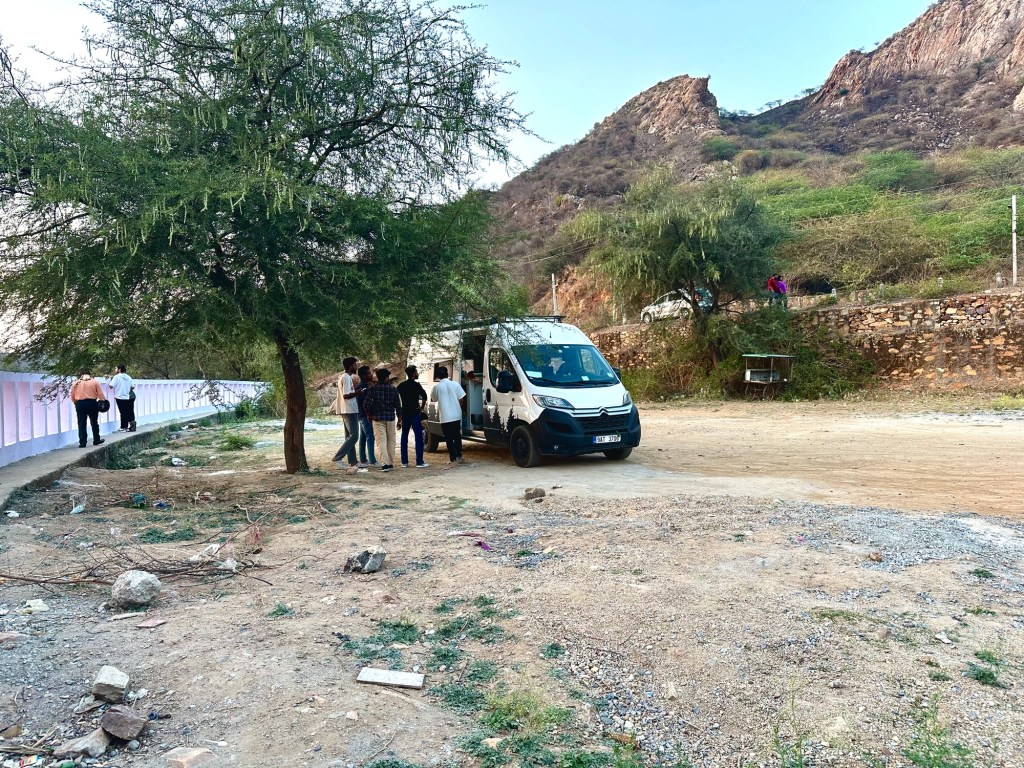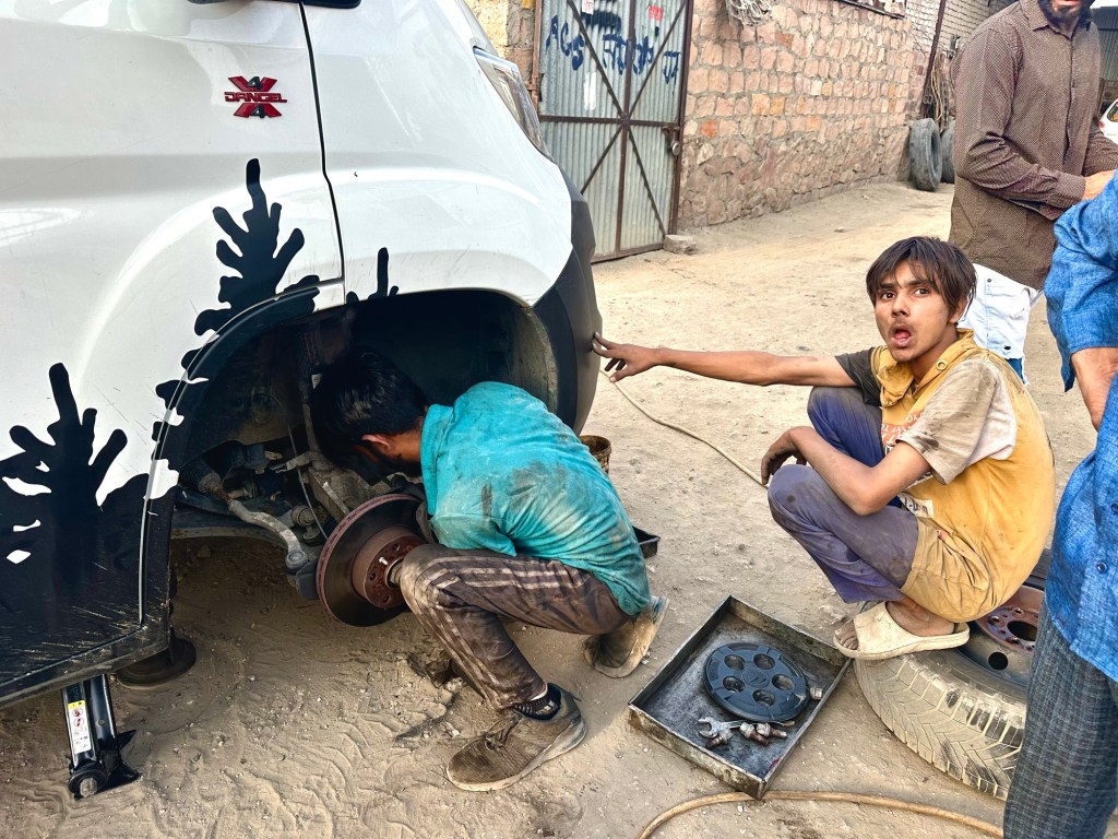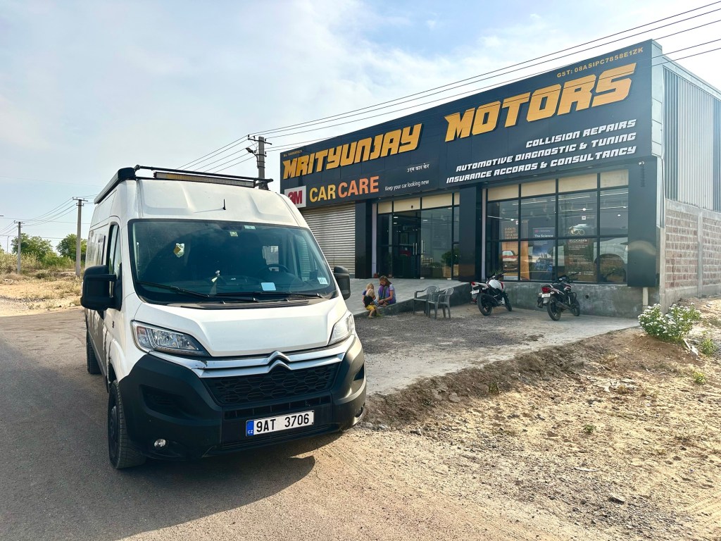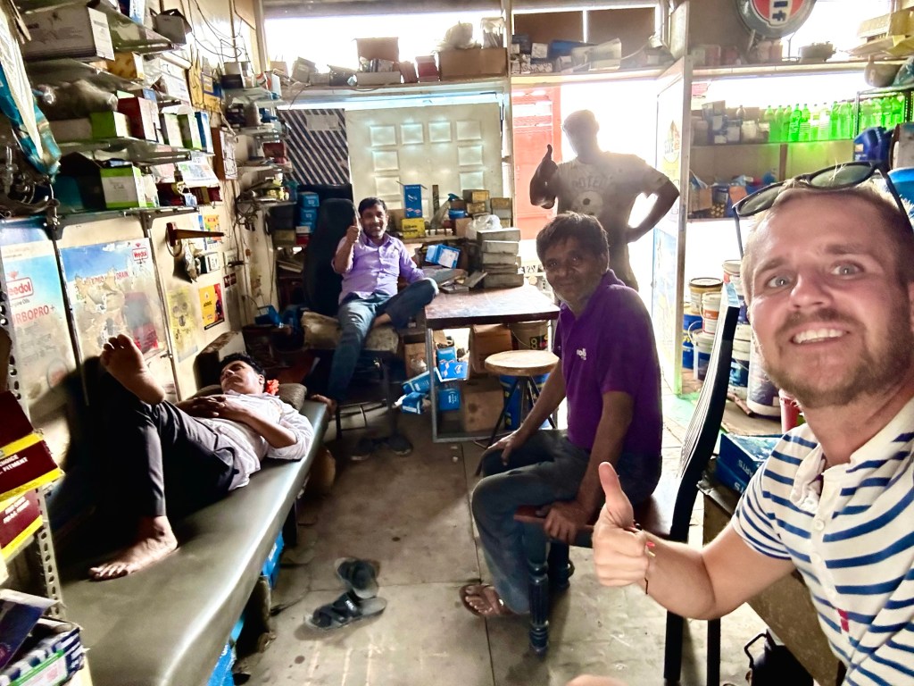 V Udajpuru strávíme příjemný turistický den, odpočineme si od řízení a pak zase vyrazíme o kus dál. O pár hodin jízdy dál je totiž jiné na historii bohaté město – Jodhpur. Cesta se klikatí skrze vyprahlé hory, všude je hodně prachu a zběsilé vedro. A aby snad nebyla ta cesta na zážitky příliš chudá, začnou nám podezřele vrzat přední brzdy. Volíme naší obvyklou strategii a snažíme se problém vyřešit tím, že jej ignorujeme a doufáme, že to přejde. Občas to funguje. Když přibrzďujeme na předměstí Jodhpuru, brzdy už rachotí tak, že by to nepřeslechl ani hluchý a my tušíme, že oprava ignorací tentokrát určitě nezabere a že zde asi strávíme více času než jsme měli v plánu. Jako zázrakem si všimneme podezřele moderně a nově vypadajícího servisu kousek od silnice a rozhodneme se zkusit štěstí tam. Kunal, velmi milý majitel, který naštěstí umí parádně anglicky, se nás hned ujme, potvrdí, že se jednoznačně jedná o sjeté brzdy a bez okolků se pustí do hledání řešení. A to i přesto, že se vlastně nejedná o servis, ale o luxusní myčku aut. Obvolá všechny své známé, sežene místní dílnu na opravu, spojí se dokonce s pobočkou Citroenu v Dillí, zajede s mechanikem na místní trh, kde asi tři hodiny hledají typově stejné brzdové destičky a potvrdí to, čeho jsme se opravdu báli – v celé Indii takové nenajdeme. Jsme zoufalí a představa, že tu nyní budeme muset čekat týden nebo dva, než připutují z Evropy nás pořádně děsí. Auto zůstává v dílně mezi obřími indickými náklaďáky s tím, že místní mechanikové zkusí něco vymyslet.