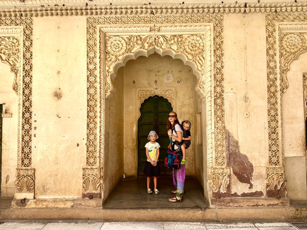 My v mezičase raději jedeme do města, navštívit místní impozantní pevnost a přijít na jiné myšlenky. Děti to v zaprášené dílně zas tak moc nebaví, a nás koneckonců také ne. Jodhpur a především jeho obří středověká pevnost jsou opravdu nádherné. Pevnost, která prý nebyla nikdy dobita, ční nad městem jak anděl strážný. Je ze stejného kamene jako okolní skály, a tak by ji zároveň mohl člověk snadno přehlédnout. Zbrojnice střídají bohatě zdobené komnaty místních rádžů a nádvoří zdobí fontány, do kterých museli (a možná stále musejí) poddaní vláčet vodu z řeky vzdálené stovky výškových metrů. Inu stačí se dobře narodit… Na chvíli tak zapomínáme na naše brzdové destičky a užíváme si téhle nádhery. Když odpoledne dorazíme zpět do garáže místní mechanik mi posunky nadšeně hlásí, že se mu podařilo vyrobit nové destičky z jiných, větších. Prý to vydrží na tisíce dalších kilometrů, přes hory, přes doly, do Evropy a klidně zase zpátky. Záruka zaručena. Sice tomu úplně nevěříme, ale jásáme nad pověstnou indickou lidovou tvořivostí a máme velkou radost, že je auto zase pojízdné a my se tu nebudeme muset bůh ví jak dlouho péct. Ani nevíme jak Kunalovi, našemu zachránci, který to pro nás vše zcela nezištně a obětavě zařídil, poděkovat. Bez něj bychom tam asi byli ještě teď. Destičky si necháme si vyrobit na obě přední kola, ať nám auto nekulhá, a nakonec téměř bez zpoždění pádíme dál. Pro jistotu také objednávám originální díly do Islámábádu, kde bychom se měli objevit zhruba za 14 dní a je tak velká šance, že tam dorazí dříve než my.