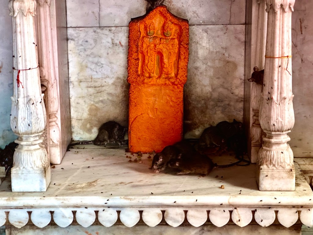 Původně jsme chtěli vzít děti cestou na sever do pouště na velbloudí safari, ale společně shledáváme, že pouště už máme jaksi plné zuby, a tak raději svištíme bez zastávky rovnou na horu, do Dharamsaly, za Dalajlámou a do chládku. Tedy až na jednu krátkou zastávku – v krysím chrámu. Po tom motorkovém, jsme nemohli odolat a museli si jej přidat do sbírky.