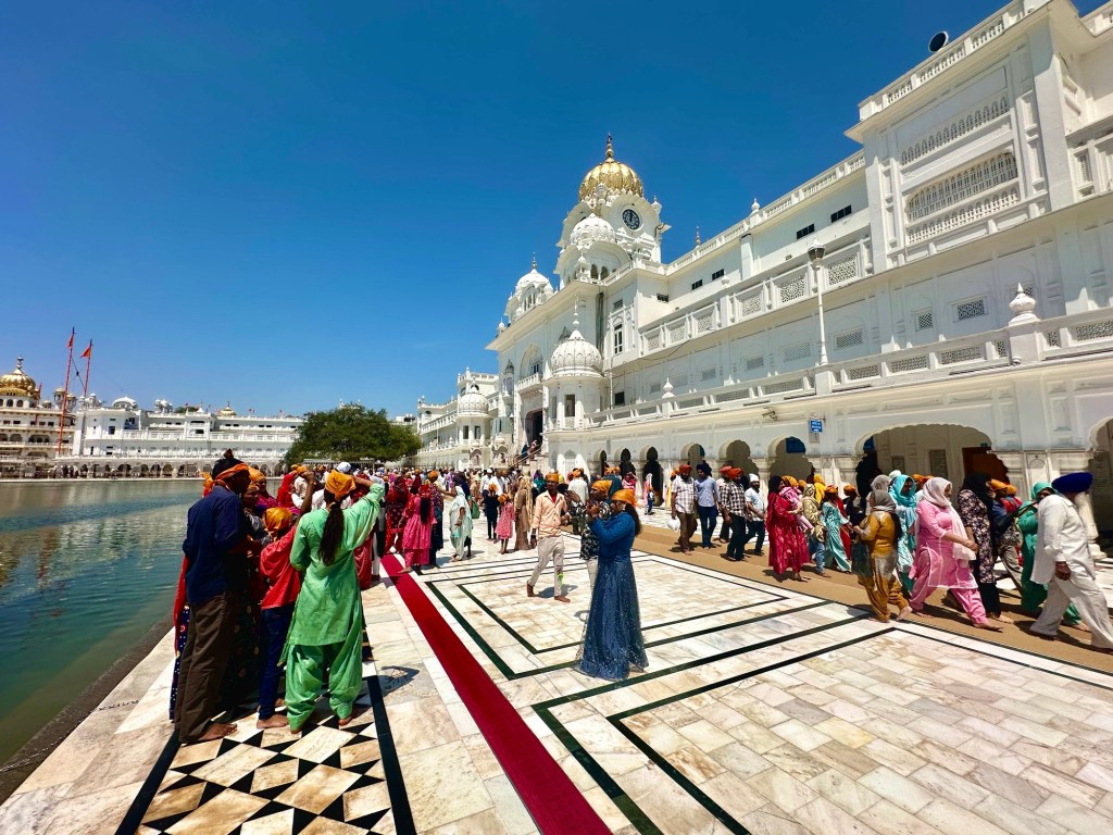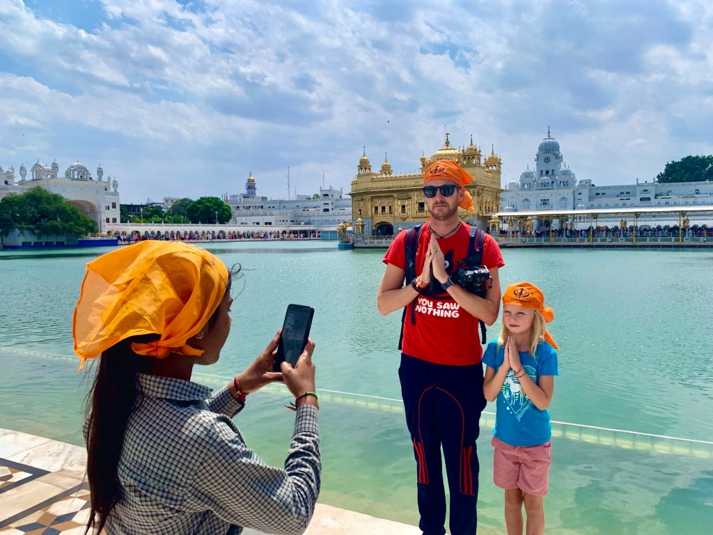 Jeden den zasvětíme návštěvě Zlatého chrámu, nejsvětějšímu poutnímu místu všech Sikhů. Je to náramná podívaná, až na to, že opět musíme asi stokrát pózovat pro místní Indy. Člověk chce být, slušný a všem vyhovět, ale když vás někdo po desáté v jedné minutě zastaví a vyhrkne You from? I take selfie? Začne vám to lézt trochu na nervy. Krom toho, kdykoliv odpovíme, že jsme z „Czech Republic“ naprostá většina tazatelů nemá vůbec páru, kde to je. Jejich typickou reakcí tak je „ohh from Public“ nebo „hmm from Čublik“… Indové mají také pro našince celkem nemístný zlozvyk ohmatávat (z lásky, jistě) obě naše děti. A to především tak, že je bez varování a za pokřiku „such a cute baby“ chytají za bradičky a popleskávají po tvářích. Emma si z toho vypěstovala tik, a tak se k ní nyní můžeme přibližovat výhradně zepředu, za dobrého osvětlení a s rukama tak, aby na ně dobře viděla.