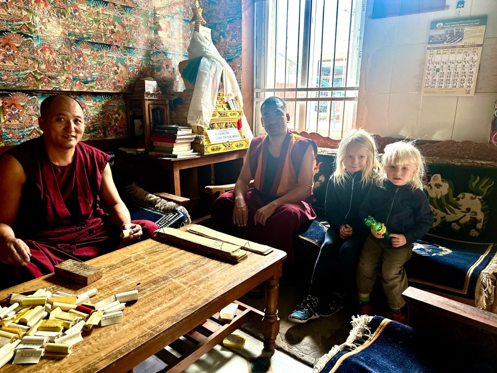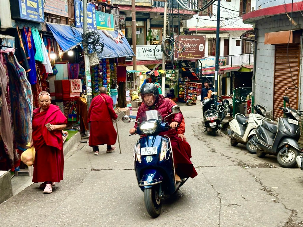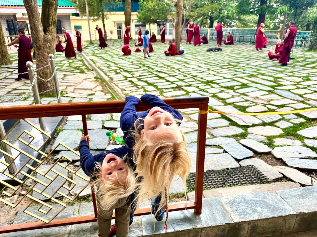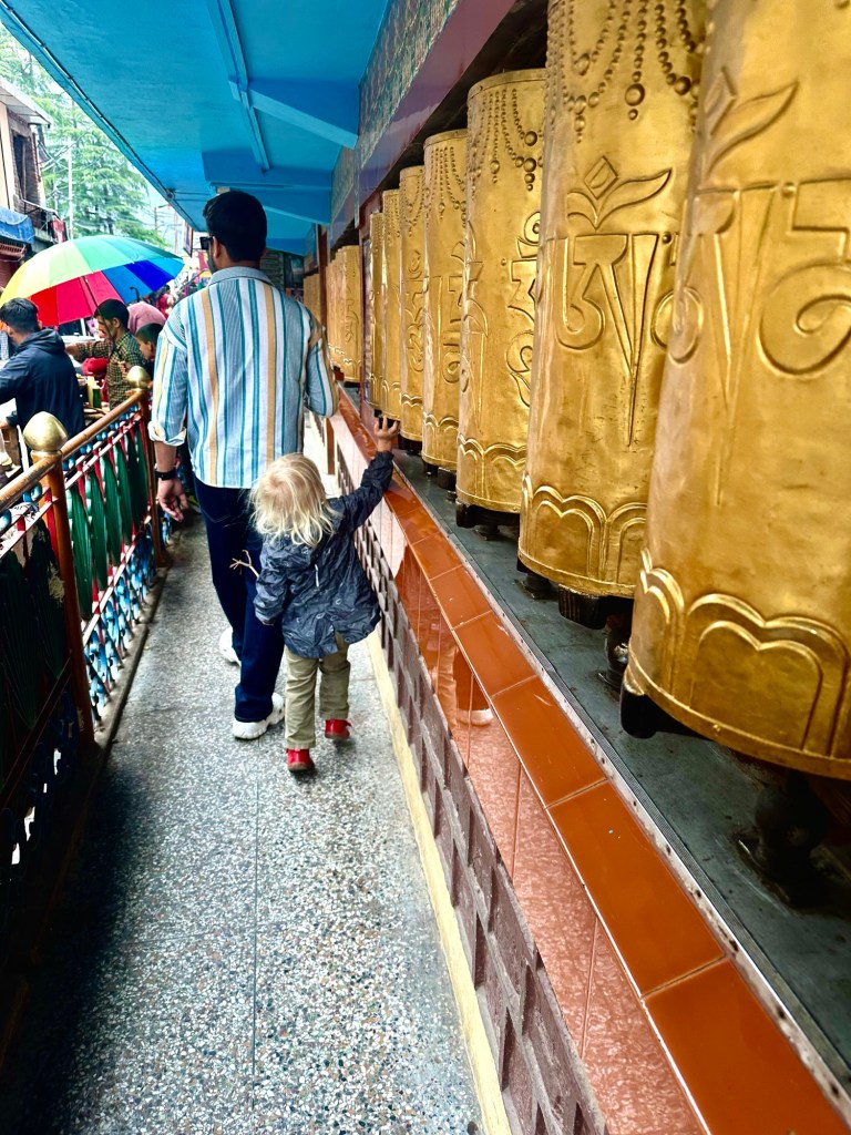 Cesta nám zabere dva dlouhé dny, kdy v podstatě jen jedeme, ale odměnou nám je po dlouhé době zase jednou příjemné klima, tibetské kláštery, mniši, momo knedlíčky a parádní tibetská kuchyně (od té indické velmi odlišná). Moc se nám tu líbí, a tak tu nakonec zůstáváme o den déle, než jsme původně plánovali. V Dharmsale strávíme parádní čtyři dny. Výletování a okukování zasněžených horských štítů, které se tutam vyloupnou z mraků, střídáme s okukováním tibetských mnichů, roztáčením tibetských modlitebních mlýnků (což mělo velký úspěch u dětí) a návštěvou sídla Dalajlámy. Bohužel je zrovna zaneprázdněn, asi mu zapomněli dát do kalendáře, že přijedeme.