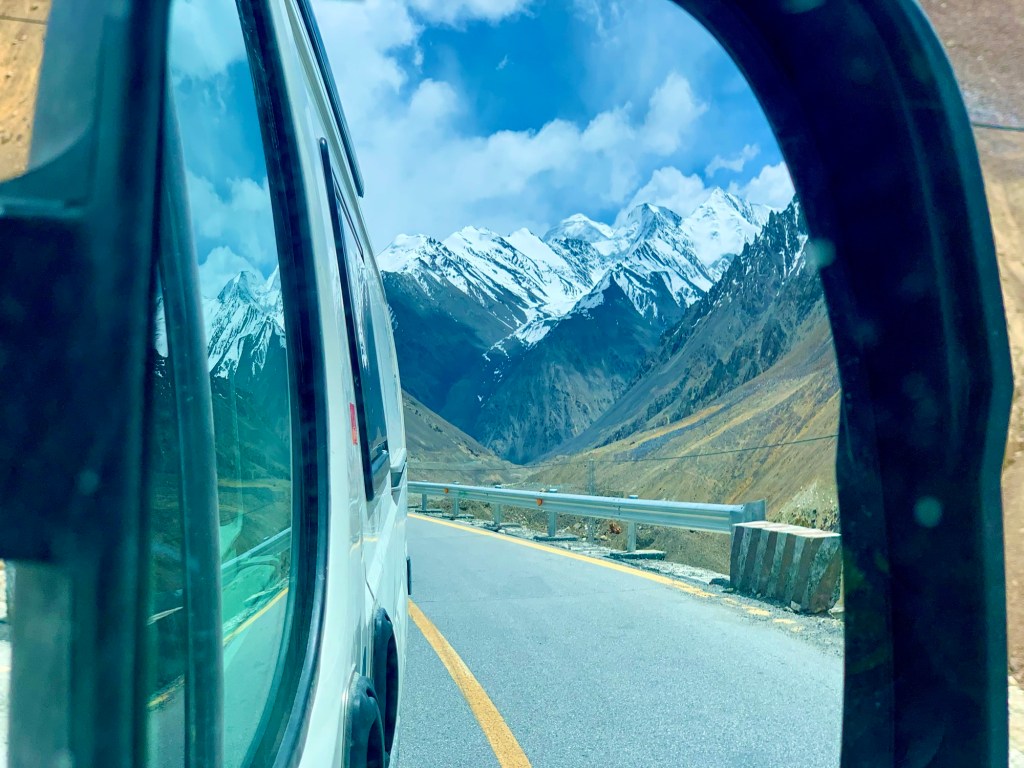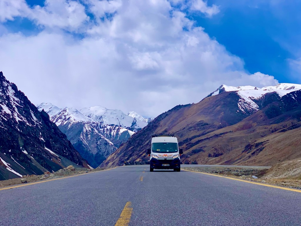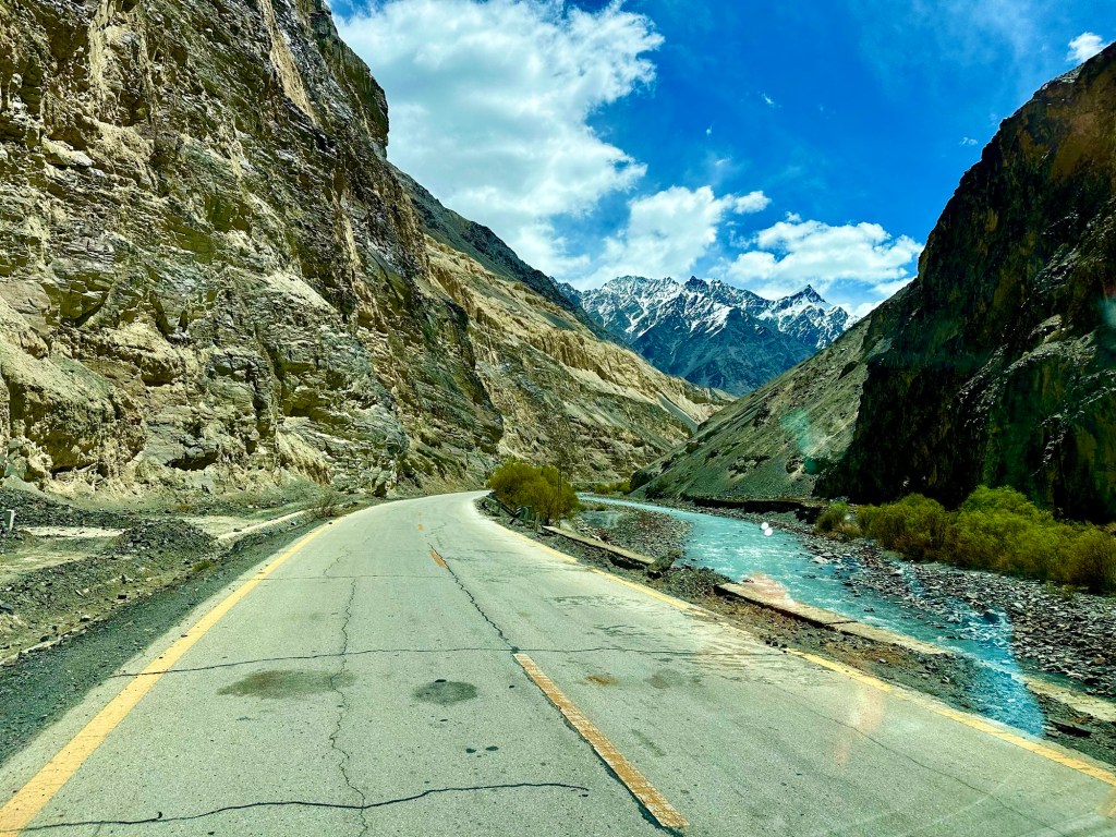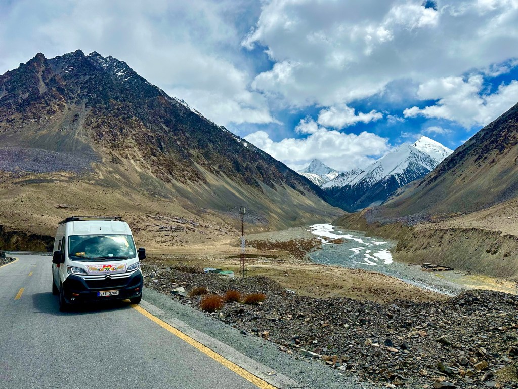 Cesta k pákistánsko-čínské hranici je nádherná. V příkrých a hlubokých údolích se podél tyrkysové horské bystřiny klikatí celkem dobrá silnice (opakovaně proto děkujeme velkému čínsko-pákistánskému přátelství, jak nás nabádají cedule na každém kroku) a člověk si připadá tak trochu jak na úplném konci světa. Občas na vás vykouknou vršky všudypřítomných velehor, přes cestu vám přeběhne sysel nebo kamzík a s přibývající nadmořskou výškou začíná docházet dechu nám i našemu naftovému motoru. Když s vypětím všech sil dorazíme na náhorní plošinu s hraničním přechodem v téměř pěti tisících metrech, působí zde stojící monumentální brána – vstup do Číny – spíše jako kulisa z nějakého sci-fi filmu.