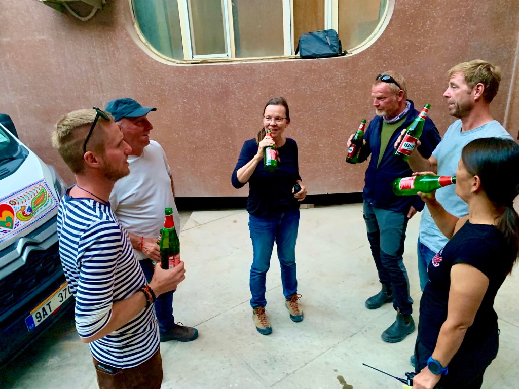 V Taxgorkanu nás čeká další nekonečná celní prohlídka (snímky z rentgenů z hranice, už zde dávno mají a pečlivě je zkoumají), další imigrační kontrola, další snímání otisků prstů, focení a razítkování. Když, už si zase myslíme, že je vše hotovo, je nám oznámeno, že vyřízení dokumentů pro umožnění vjezdu našich vozů do země, bude trvat do noci. Do hotelu se tak dostáváme až hodně po půlnoci. Oči děti se začínají podobat těm čínským…