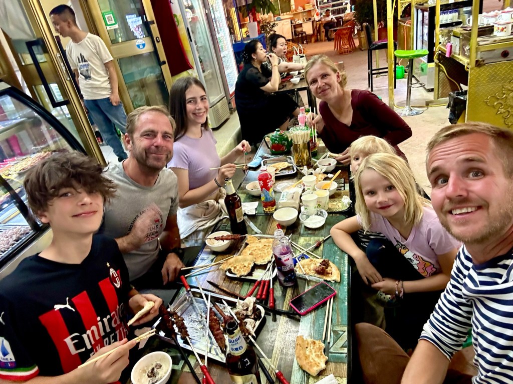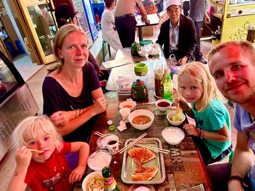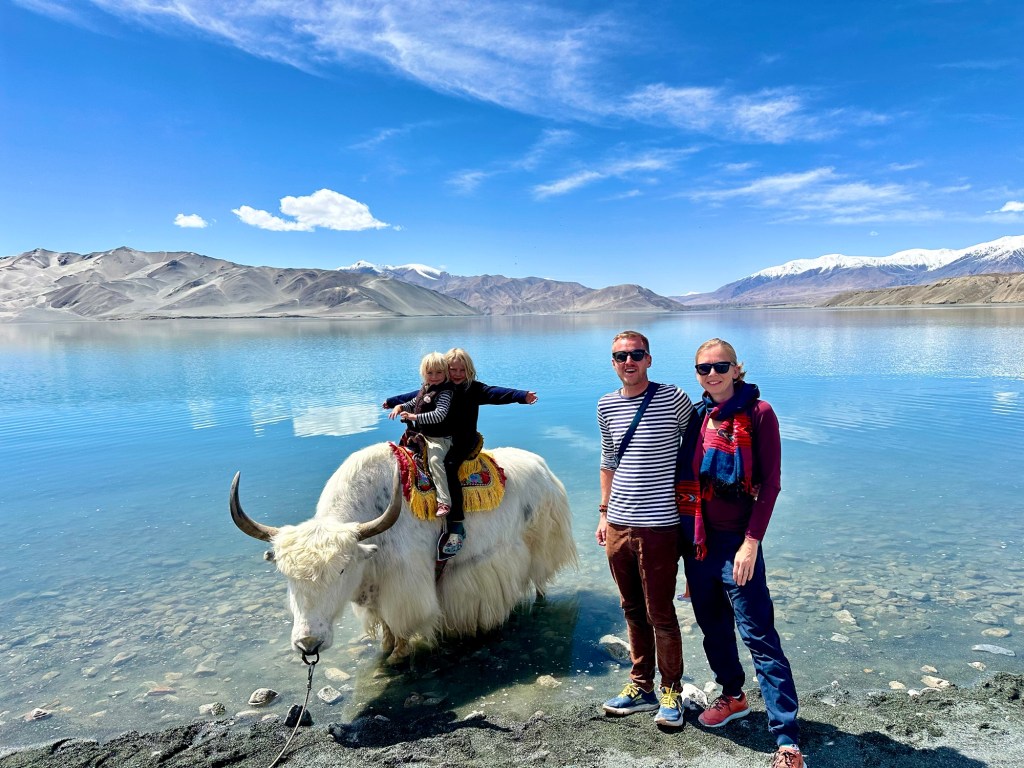 Přes to všechno nás Čína okamžitě uhrane. Nebo lépe řečeno uvědomění si, jak překročení víceméně uměle nakreslené čáry na mapě může znamenat, tak obrovskou změnu. Lidi vypadají úplně jinak, mluví úplně jinak, jídlo chutná úplně jinak, architektura je úplně jiná, celé je to úplně jiné. Je to jako byste se ocitli na úplně jiném kontinentě, na jiné planetě. Děti se radují, neb tu všude prodávají smažené nudle a na každém rohu je obchod s dětskými hračkami – k naší smůle. Vysvětlovat jim, že to kupovat nechceme neb se jedná o čínský šunt (což je náš obvyklý argument, který už znají) tady totiž úplně neplatí. Emma také hned s vážnou tváří připomíná, že přece jsme v Číně!Následující den se vydáváme do Kašgaru. Cesta je to dlouhá, ale krásná. Cestou míjíme jezero Karakol, kde jsme před těmi patnácti lety strávili s Kris několik dní v jurtě u místních pastevců jaků. Jurty už zde nejsou, za to tu je obří parkoviště, hotel a vyhlídková plošina. Jaci se zde, k jejich velké smůle, už také nepasou, ale místo toho vozí turisty. O pár kilometrů dál zastavujeme u nádherného jezera do kterého se „vlévají“ duny vysokohorské pouště a žasneme nad tou krásou. Spolu s dalšími stovkami čínských turistů. Ale to k Číně prostě patří. Číňané hodně rádi cestují (to ostatně známe i z Prahy), a tak je jich tu všude plno. Vše je komercializované, za vše se platí a všechno se fotí. Inu pokrok nezastavíš, obzvlášť v Číně. Po autentickém Pákistánu je to ale celkem šok.