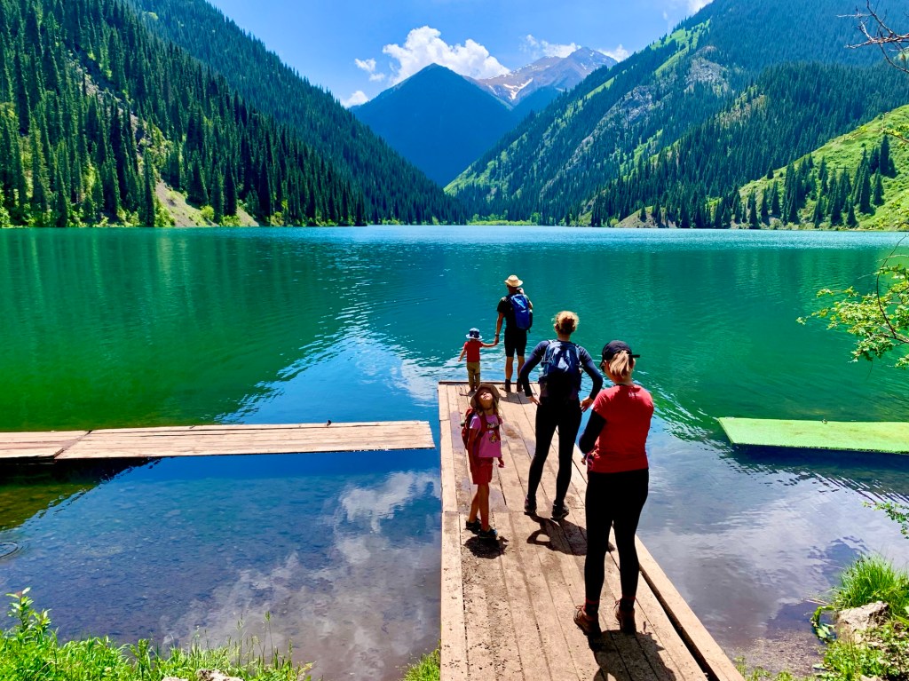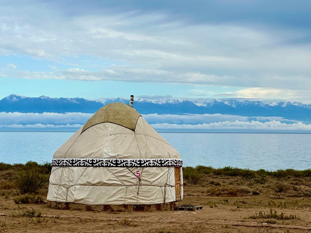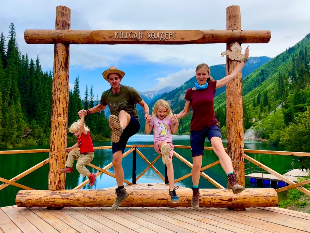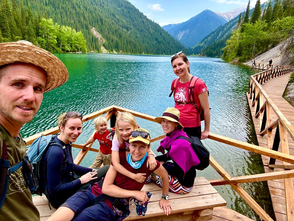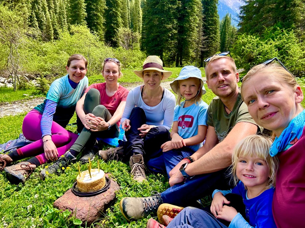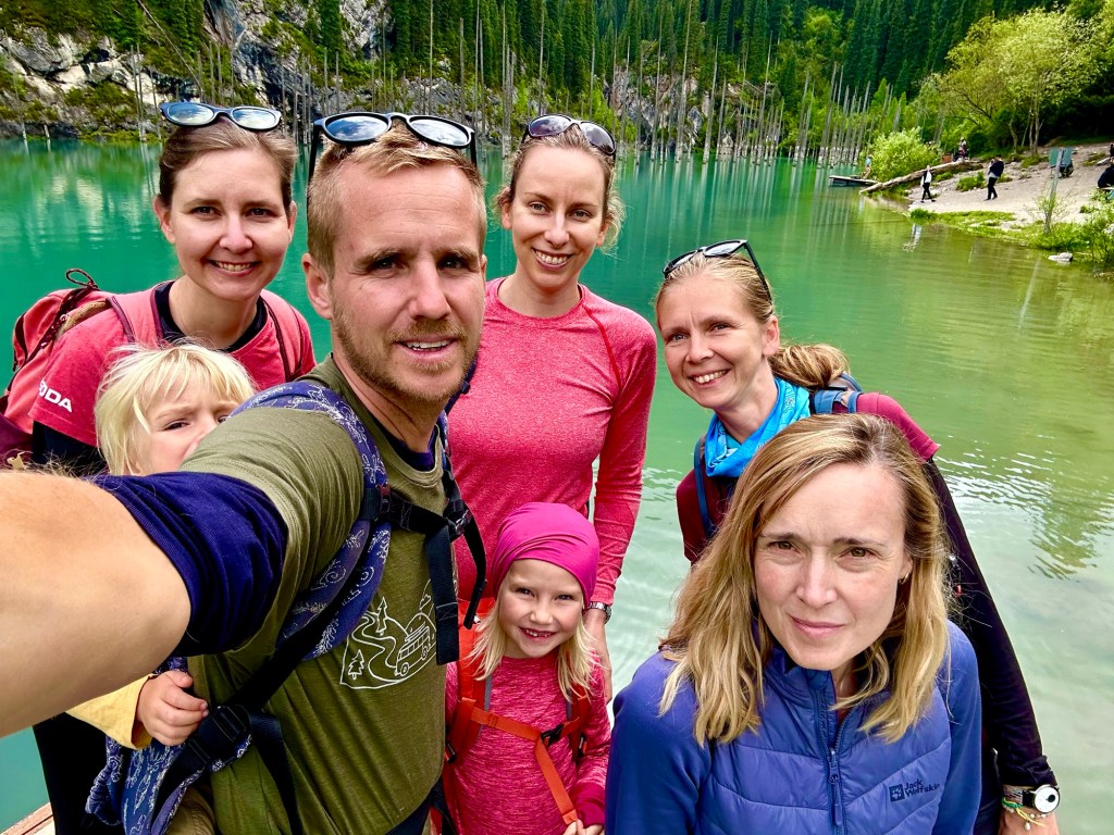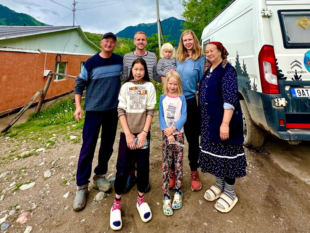 Ráno si přivstaneme. Emmu už totiž od večera „lochtá v bříšku“ neb se už nemůže dočkat dne (a my samozřejmě s ní). O pár set kilometrů dál na nás totiž čeká návštěva z Mělníka a Bruselu. Zase za námi dorazila Patra s Blankou, tentokrát doplněny i o mou sestřenici Silvu. Naši věrní čtenáři disponující funkční pamětí si jistě vybaví, že jednou už jsme se už na téhle cestě s Petrou a Blankou potkali – bylo to před neuvěřitelnými devíti měsíci v Kanadě. Je to už osvědčená receptura a my se zase těšíme na milou společnost. Děti se už tetiček také nemůžou dočkat, a proto spěcháme k jezeru Issyk-Kul, u kterého máme spicha. Holky na nás čekají v útulných jurtičkách na břehu jezera a naše shledání tak nemůže být stylovější. Jezero Issyk-kul leží v podhůří pohoří Tian Šan. Tian Šan, tedy Nebeské hory, je jedno z největších pohoří světa, doplňující onu svatou velehorskou trojici Himalájí, Karakoramu a Pamíru. Tvoří také přirozenou hranici mezi oběma zeměmi a Čínou, což se asi docela hodí.