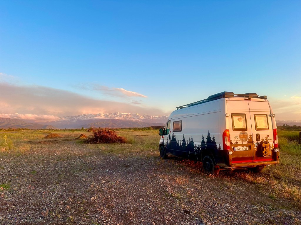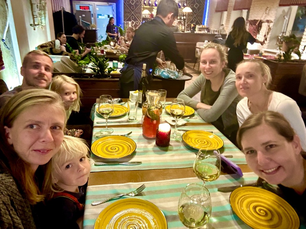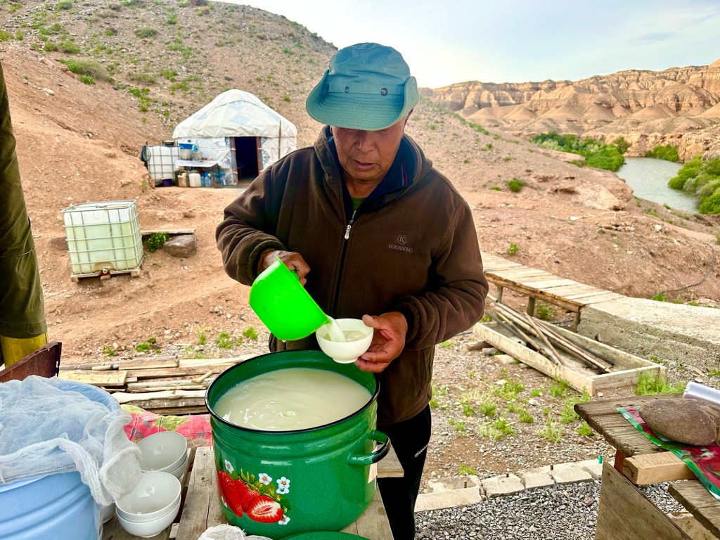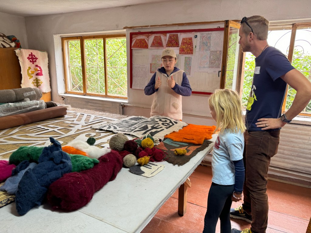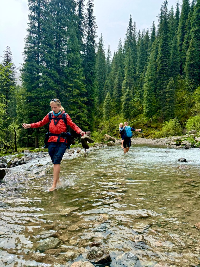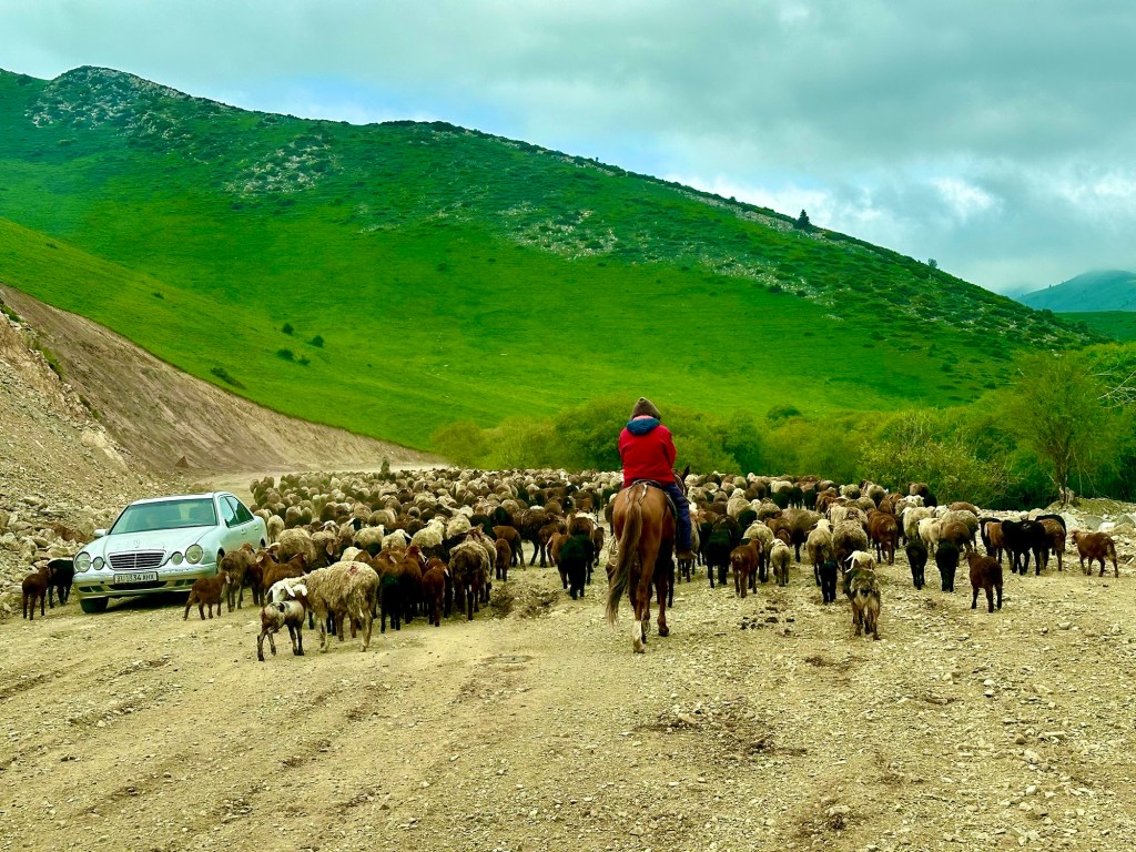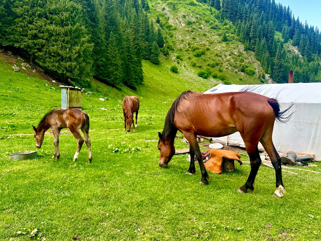 Ráno si přivstaneme. Emmu už totiž od večera „lochtá v bříšku“ neb se už nemůže dočkat dne (a my samozřejmě s ní). O pár set kilometrů dál na nás totiž čeká návštěva z Mělníka a Bruselu. Zase za námi dorazila Patra s Blankou, tentokrát doplněny i o mou sestřenici Silvu. Naši věrní čtenáři disponující funkční pamětí si jistě vybaví, že jednou už jsme se už na téhle cestě s Petrou a Blankou potkali – bylo to před neuvěřitelnými devíti měsíci v Kanadě. Je to už osvědčená receptura a my se zase těšíme na milou společnost. Děti se už tetiček také nemůžou dočkat, a proto spěcháme k jezeru Issyk-Kul, u kterého máme spicha. Holky na nás čekají v útulných jurtičkách na břehu jezera a naše shledání tak nemůže být stylovější. Jezero Issyk-kul leží v podhůří pohoří Tian Šan. Tian Šan, tedy Nebeské hory, je jedno z největších pohoří světa, doplňující onu svatou velehorskou trojici Himalájí, Karakoramu a Pamíru. Tvoří také přirozenou hranici mezi oběma zeměmi a Čínou, což se asi docela hodí.