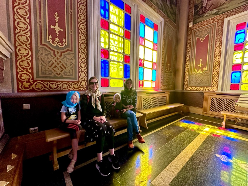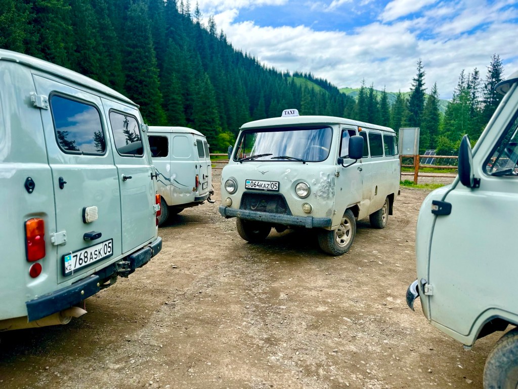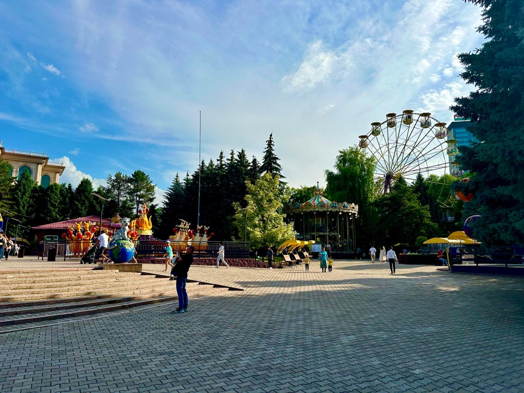 My nakonec strávíme v Almaty – taktéž celkem pohodlně – šest dní. V Almaty se toho prý děje celkem hodně, ale my si především užíváme pronajatého bytu v bytovce z padesátých let. Ta nám opět hořkosladce připomíná české sídliště. Děti se radují z vany a dětského hřiště hned před domem, já z velké postele a Kika z fénu. Stačí nám celkem málo…Druhý den se bohužel rozloučíme s holkami, což nás hodně mrzí (zase to uteklo nějak moc rychle), ale zvládneme vyprat dvě pračky, vyměnit olej u auta a sehnat AdBlue, což nás zase zvládne alespoň trochu rozveselit. Třetí den požádáme o ruská tranzitní víza a zajdeme do místního sovětského lunaparku. Čtvrtý den si jdeme vyzvednout udělená víza, přičemž celkem náhodou zjistíme (když míjíme naše zaparkované auto), že nám praskla trubka od vodní nádrže a auto je celé vytopené. Pátý den tedy strávím úspěšnou opravou, Kika využívá neplánované odstávky a vrhne se do praní ložního prádla a děti si ještě jednou napustí vrchovatou vanu.