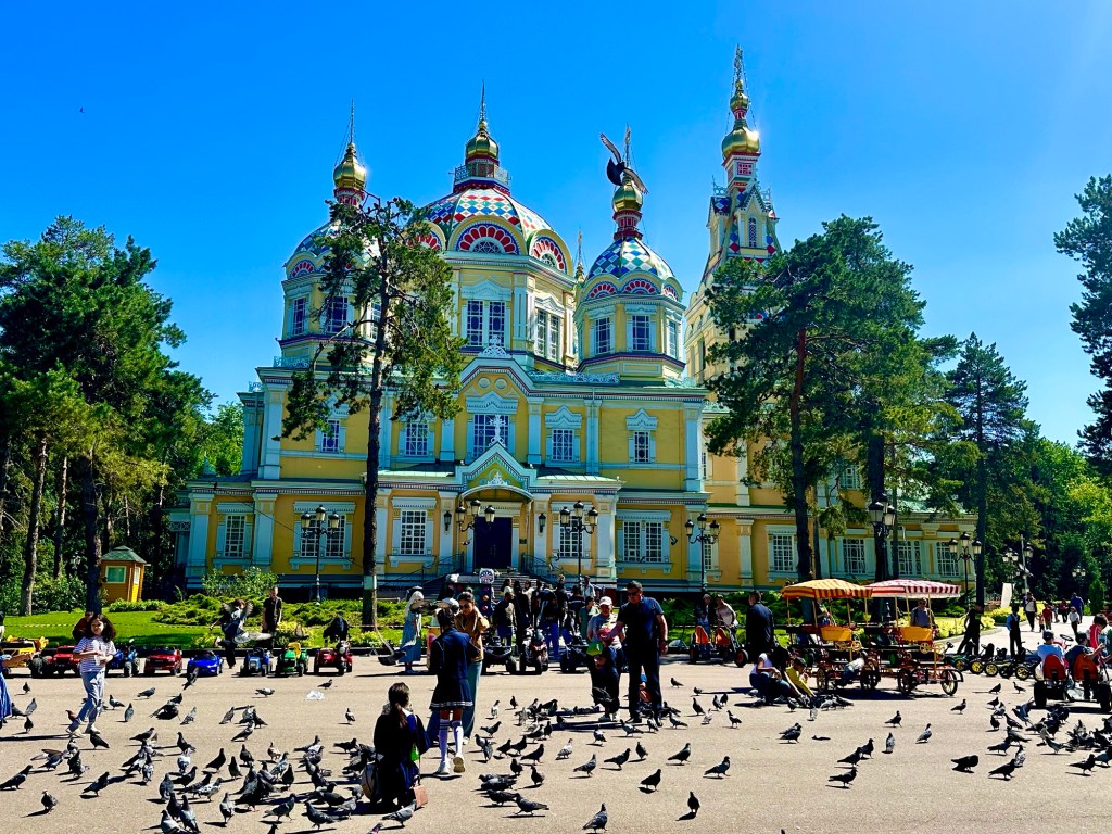 Pak už ale míříme do Almaty – největšího a de facto hlavního města Kazachstánu. Oficiálním hlavním městem je sice Astana, ale tam prý dávají lišky dobrou noc. Jedinou zajímavostí na Astaně je to, že město bylo v roce 2019 přejmenováno na Nur-Sultan. Tedy podle autoritářského prezidenta (Nursultana) Nazarbayeva, který – jak vidno – celkem bez omezení vládnul Kazachstánu od rozpadu Sovětského Svazu až právě do roku 2019. Trvalo to pak tři roky než lid a nový prezident dostal odvahu přejmenovat město zpět na Astanu a začít k demokracii směřující reformy. V Kazachstánu, Nur-Sultanu Astaně i Almaty se teď proto konečně žije celkem pohodlně (konec politologické vsuvky).