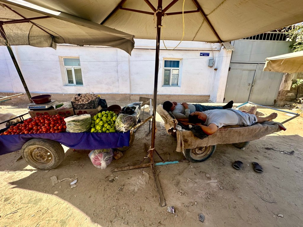 U cesty celkem často potkáváme odstavená auta a kamiony, tu s proraženou pneumatikou tu s přehřátým motorem. Je tu ale takový pěkný nepsaný zvyk, že pokud takové auto míjíte, vždy se ujistíte, že je s posádkou v nouzi vše v pořádku, případně nabídnete pomoc. A tak když zastavujeme my – neb se nám z těch otřesů začala za jízdy ze střechy rozmotávat markýza – ostatní řidiči ochotně a zcela přirozeně zastavují, aby se ujistili, že jsme v pořádku. Ten pocit sounáležitosti s ostatními v téhle mizérii je neskutečně milý. I tak se nám podaří k odpoledni bez úhony dorazit na kazašskou hranici a na normální asfaltku. Jsme skoro o den rychlejší než jsme mysleli. Shledáváme tak, že cesta to byla sice hrozná, ale tak nějak jsme se báli – po oněch svědectví jiných cestovatelů – že to bude mnohem horší. Asi to bude tím, že většina z těch, kteří nás před touto cestou pouští varovala, jela ze západu a byla to tak pro ně patrně první opravdu špatná silnice. A nám se po tom více než roku na cestě – a občas na opravdu špatných silnících ať už ve střední Americe nebo třeba v Pákistánu – přece jen posunula měřítka. To však nikterak nesnižuje radost, se kterou si užíváme téměř dokonalý asfalt na kazašské straně hranice. Jsme rádi, že to máme za sebou a především, že to naše auto, zdá se, zvládlo celkem bez úhony. Co mě nicméně úplně nepotěší, jsou tři pokuty, které mě také na výjezdu z Uzbekistánu čekají. Je fascinující, že země, kde je většina silnic ve stavu naprostého zmaru zvládá nad těmito rozvalinami ve velkém instalovat radary, které nad to evidentně fungují. Zarmoucen jdu tedy všechny tři pokuty zaplatit (bez toho mě totiž z Uzbekistánu nepustí), z mě neznámého důvodu jsou mi však naúčtovány jen dvě. Asi byly v akci: 2+1 zdarma. Nestěžuji si.