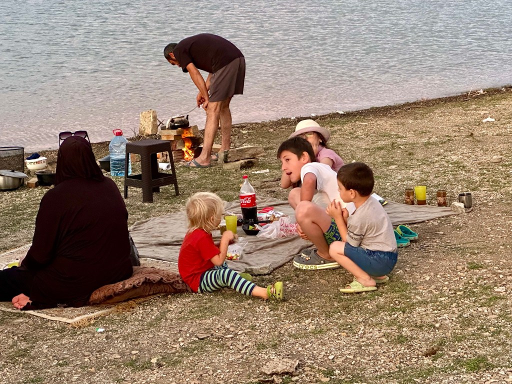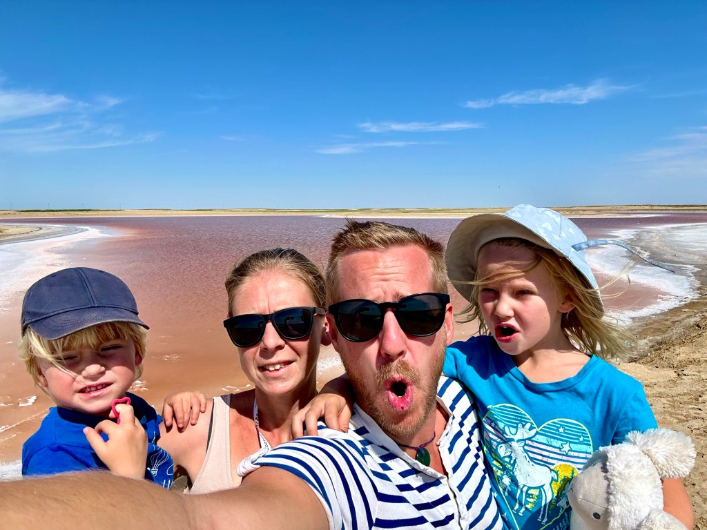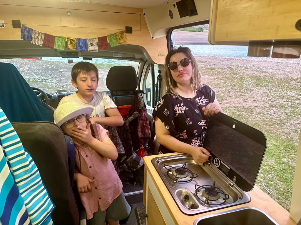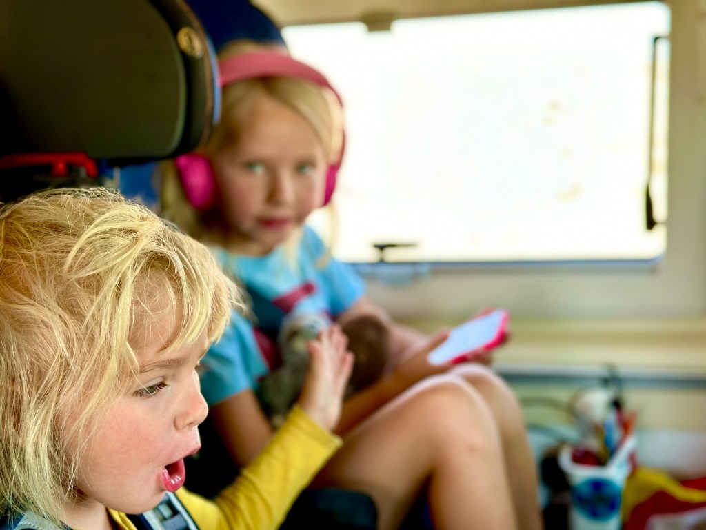 Kdo má obytnou dodávku také ví, že takové plně naložené auto se skříňkami plnými proviantu, nádobím a příbory může být zatraceně hlučné. My proto pro jistotu většinu hlučných věcí ze zásuvek vyndáváme a balíme do peřin a ručníků, mezi skleničky a příbory cpeme, přes protesty dětí, jejich obří sbírku plyšáků. Hluk v autě se nám tak podaří snížit na přijatelnou úroveň punkového koncertu s občasným přechodem do heavy metalu (to když nevyberu výmol). Krom toho je samozřejmě ukrutné vedro a zmrzlinky dojdou hned první odpoledne. A tak musíme jet až do západu slunce (a mohli se chladit klimatizací, která funguje jen za jízdy) než se rozhodneme sjet celkem náhodně ze silnice pár set metrů směrem do nekonečné do pouště a rozbít na noc tábor. K našemu překvapení jsme zvládli urazit přesně polovinu. Se západem slunce se pěkně ochladí, je už jen 33 stupňů, a my si užíváme parádní výhledy do nekonečna a naprosté ticho. Pouště jsou totiž překvapivě tiché místa.