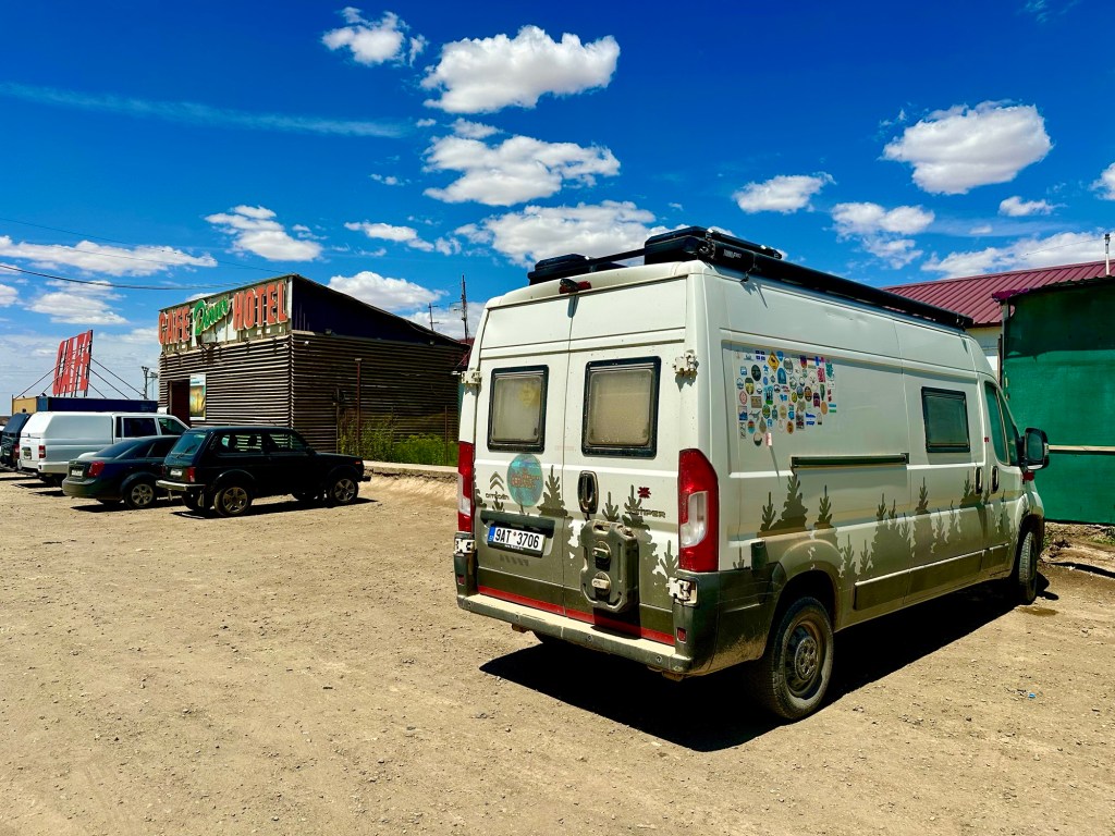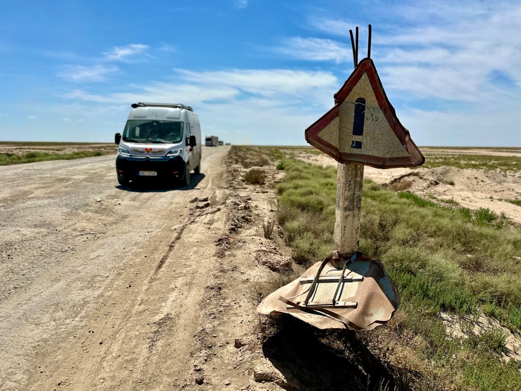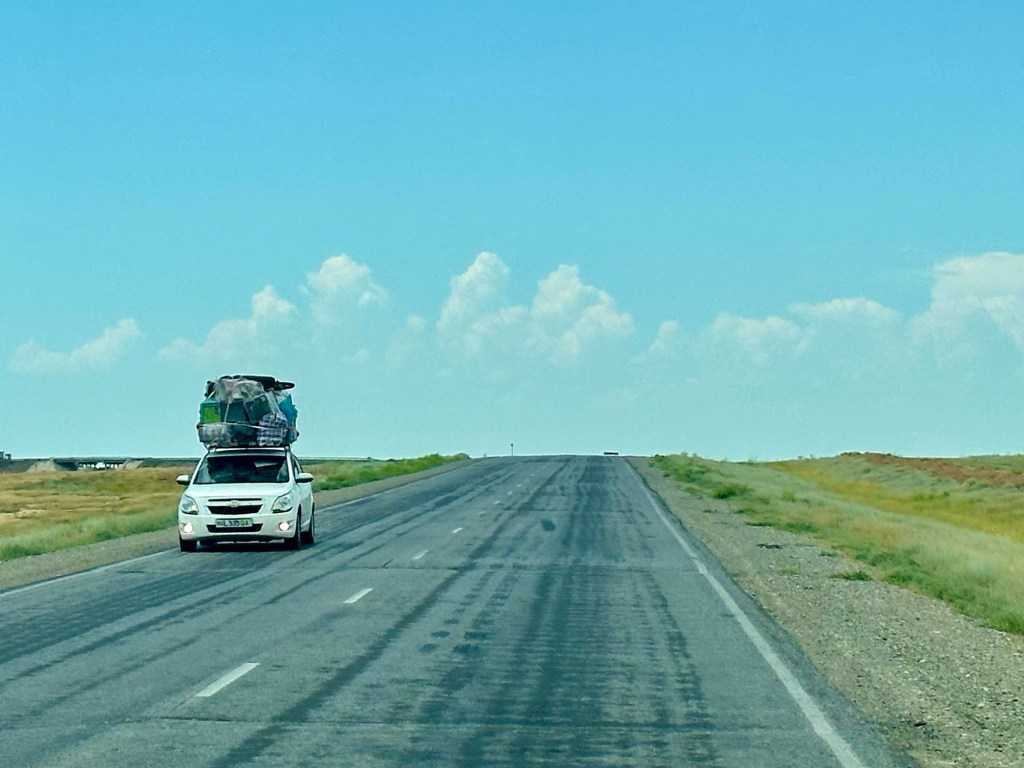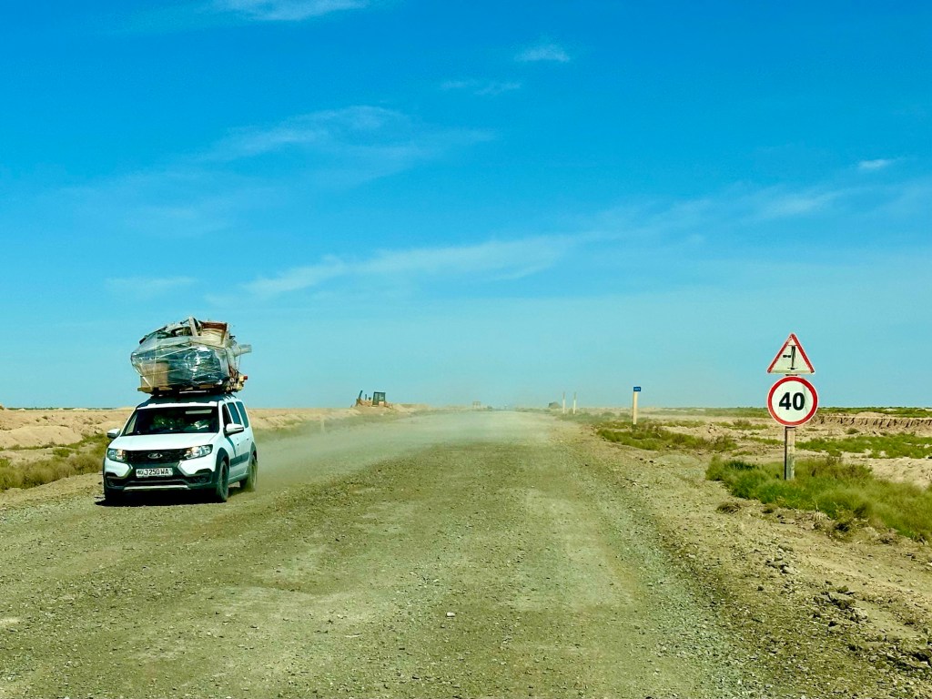 O cestě dlouhé zhruba 300 kilometrů přes Ustjurskou poušť jsme toho slyšeli opravdu hodně – mezi cestovateli se jí přezdívá třeba „pekelná silnice“, „silnice mrtvých duší“ nebo „nekonečná noční můra“. Vypadá to tedy, že nás skutečně čeká klasické dobrodružství z dob Hedvábné stezky. Než se na cestu vydáme, necháme si ale ještě, dle plánu, vyřadit z provozu náš náhon na zadní kola (což se může zdát jako nerozum, ale zpětně hodnoceno, kdybychom tak neučinili, jisto jistě bychom jej zcela odrovnali) a pro jistotu doplňujeme zásoby vody, jídla a nafty. Zkontrolujeme stav chladící kapaliny i oleje, kupujeme nanuky do zásoby a vyrážíme!