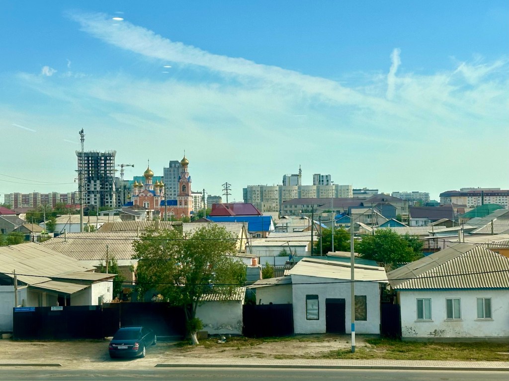 Vyklepaní a unavení přespíme v kazašské stepi (o něco zelenější než poušť na straně uzbecké) kousek za hranicí a pak již vyrazíme směrem k ruským hranicím. Cestou ale ještě na dva dny zastavíme ve městě Atyrau, kteréžto je největším západokazašským městem se svůdnou přezdívkou „kazašské hlavní město ropy“. Ne že bychom toliko holdovali ropě nebo městům s atmosférou bohem zapomenutého sovětského maloměsta, ale prostě proto, že ruská transitní víza se udílejí na konkrétní dny a ty naše nám začínají platit až za dva dny. Když jsme o ně před měsícem žádali, nebyli jsme si jistí, jak rychle se nám pojede.