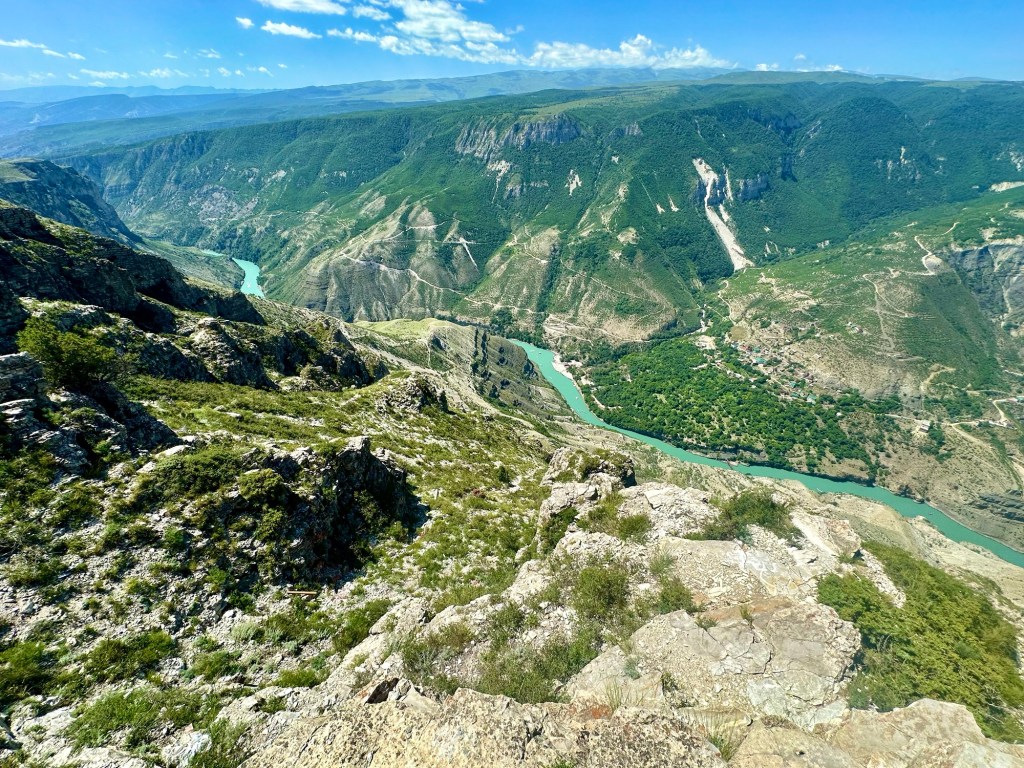 Pak nás ale už vítá po zuby ozbrojená pohraniční stráž, značící, že tam za ostnatým drátem je Dagestán. Dagestán je poměrně svébytnou republikou, s dominantní muslimskou populací (stejně jako Čečensko a Severní Osetie), ležící u Kaspického moře. My míříme do kaňonu Sulak, který je prý nejhlubším evropským kaňonem (což nám opět připomene, že jsme přeci v Evropě) a zároveň jedním z nejhlubších kaňonů na světě. V některých místech je prý dokonce hlubší než americký Grand Canyon. To se nám zas tak úplně nezdá, ale v Rusku je na druhou stranu možné asi všechno… Okolo kaňonu strávíme jeden pěkný den výlety a koupačkou v nedaleké přehradě a pak se přesuneme přes další zubatou hranici do Čečenska, do Grozného. Jsme zvědaví, jak bude město, které bylo ani ne před dvaceti lety vyhlášené OSN za nejzničenější město na světě, vypadat. Opravdu nehezké prvenství, které nad to bylo od té doby již mnohokrát překonáno. A často “díky” stejné armádě…
